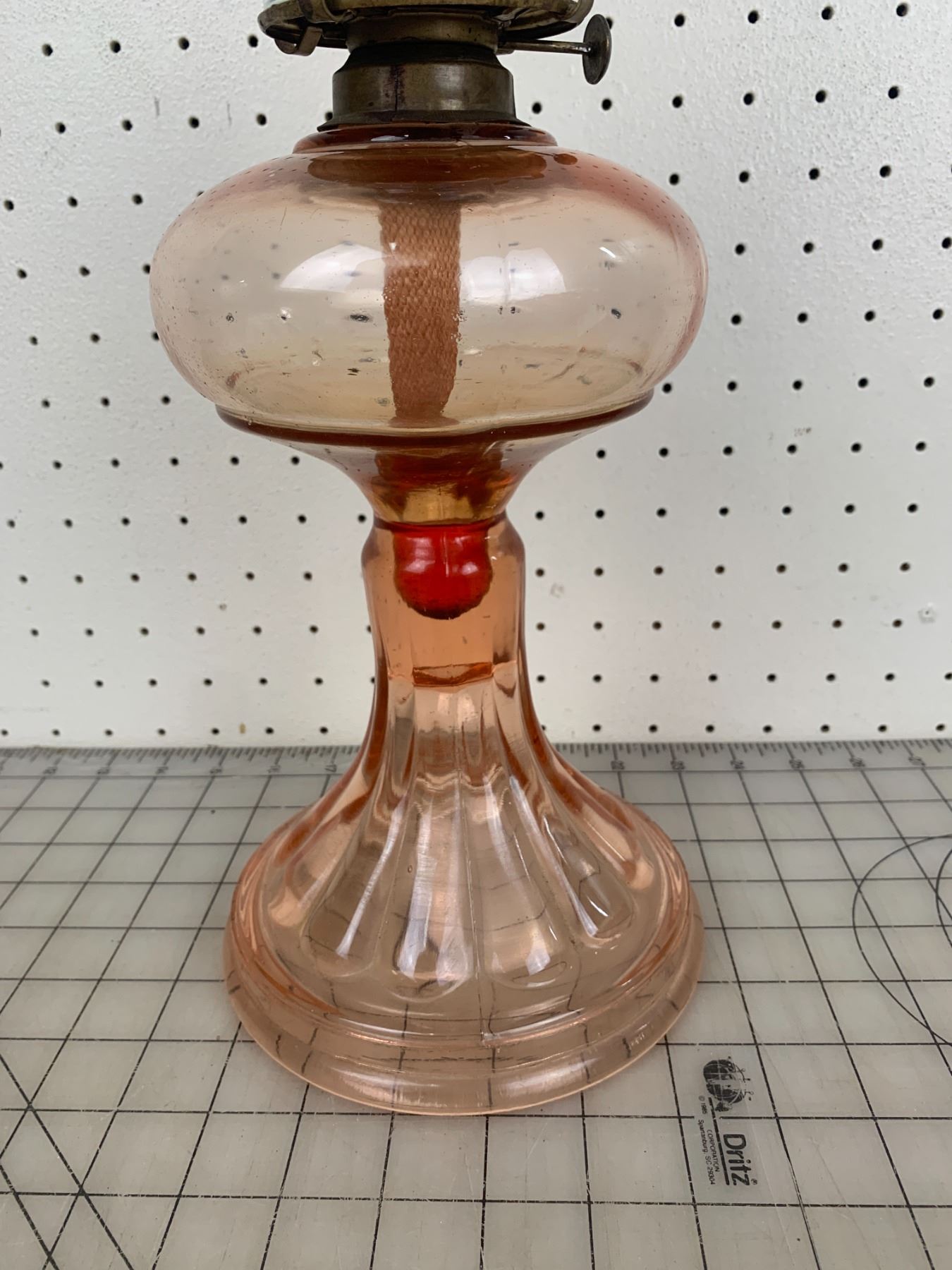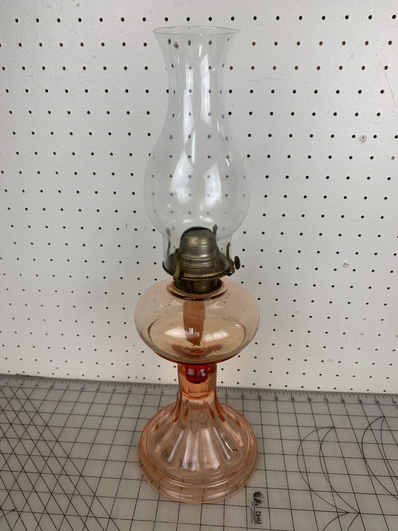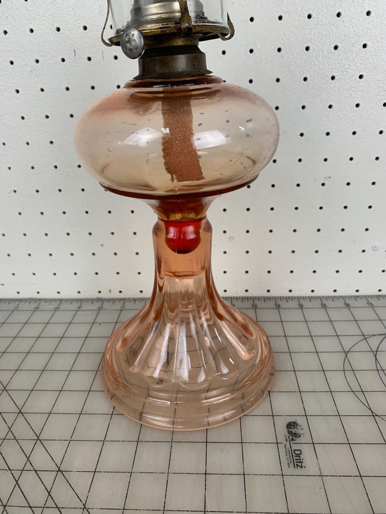ANTIQUE PINK DEPRESSION GLASS OIL LAMP