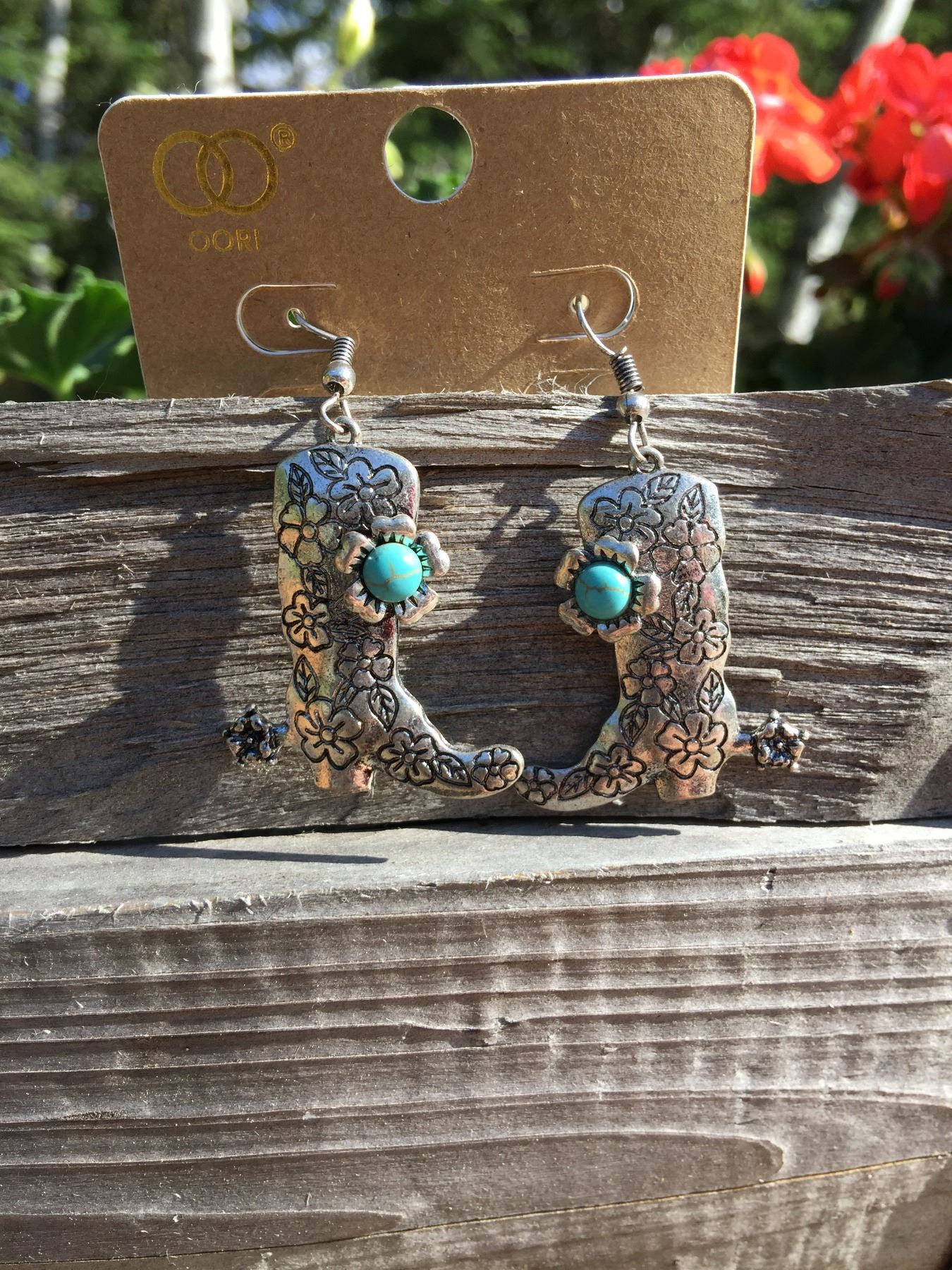 ANTIQUE SILVER BOOT EARRINGS/TURQOISE STONE ACCENT
