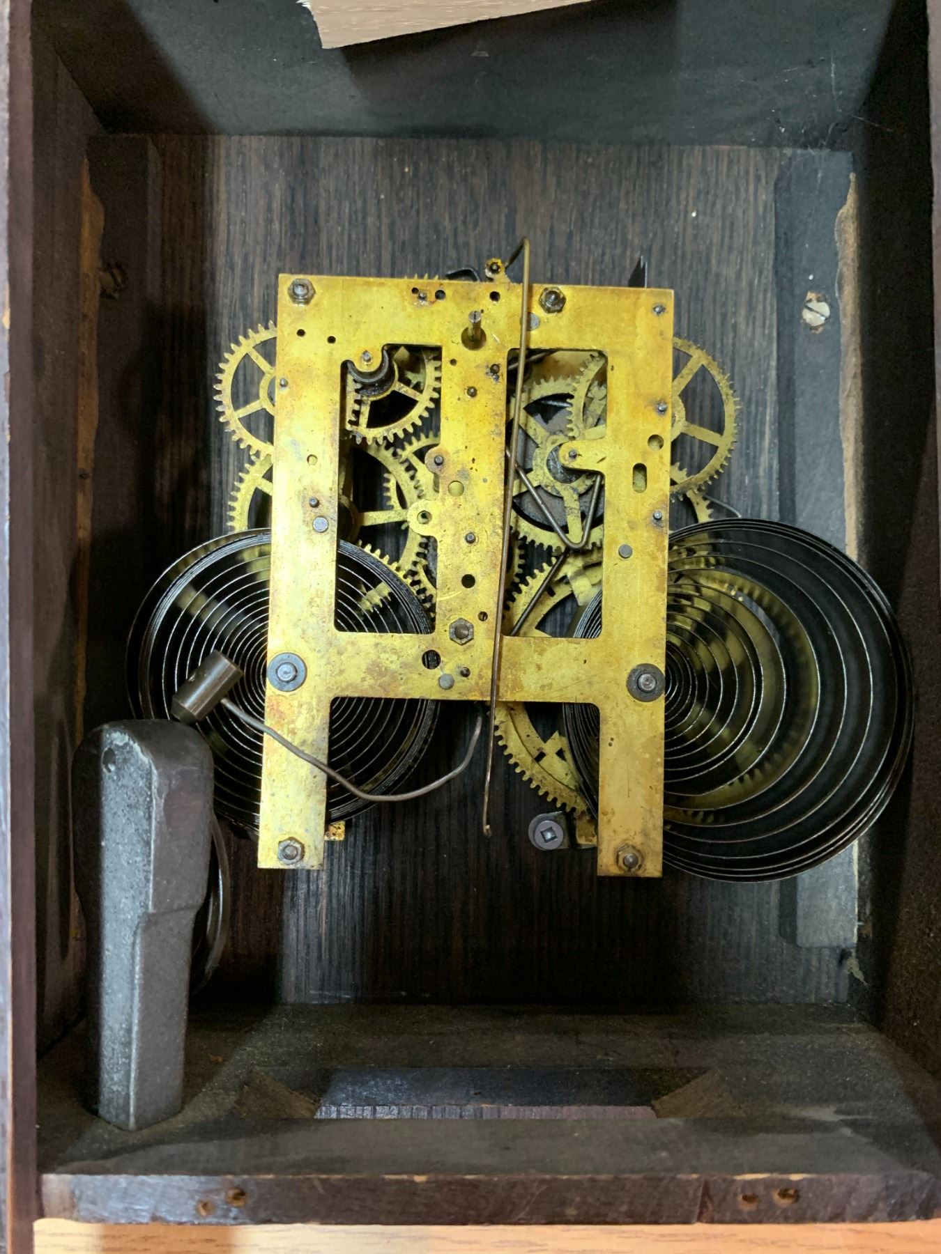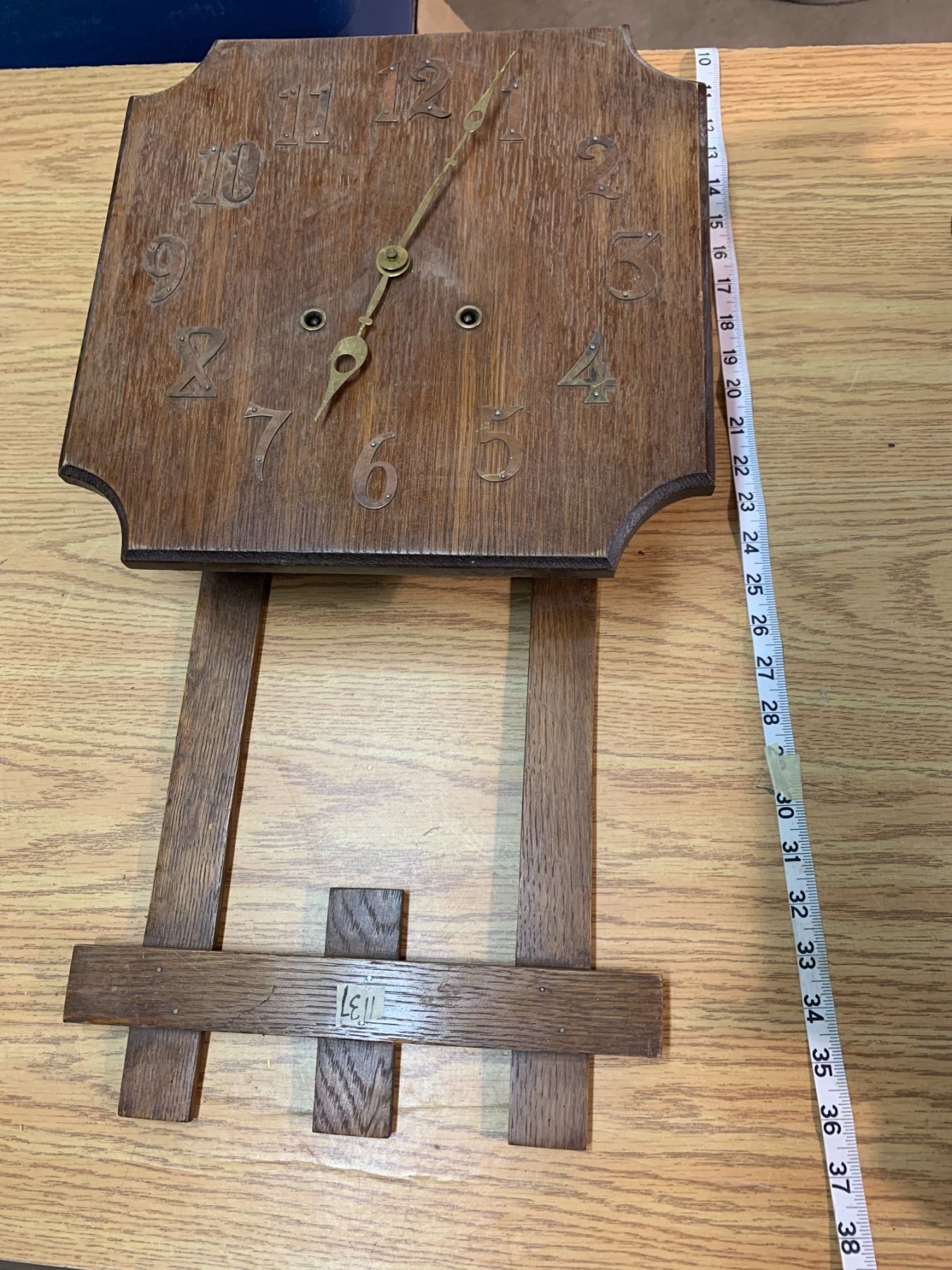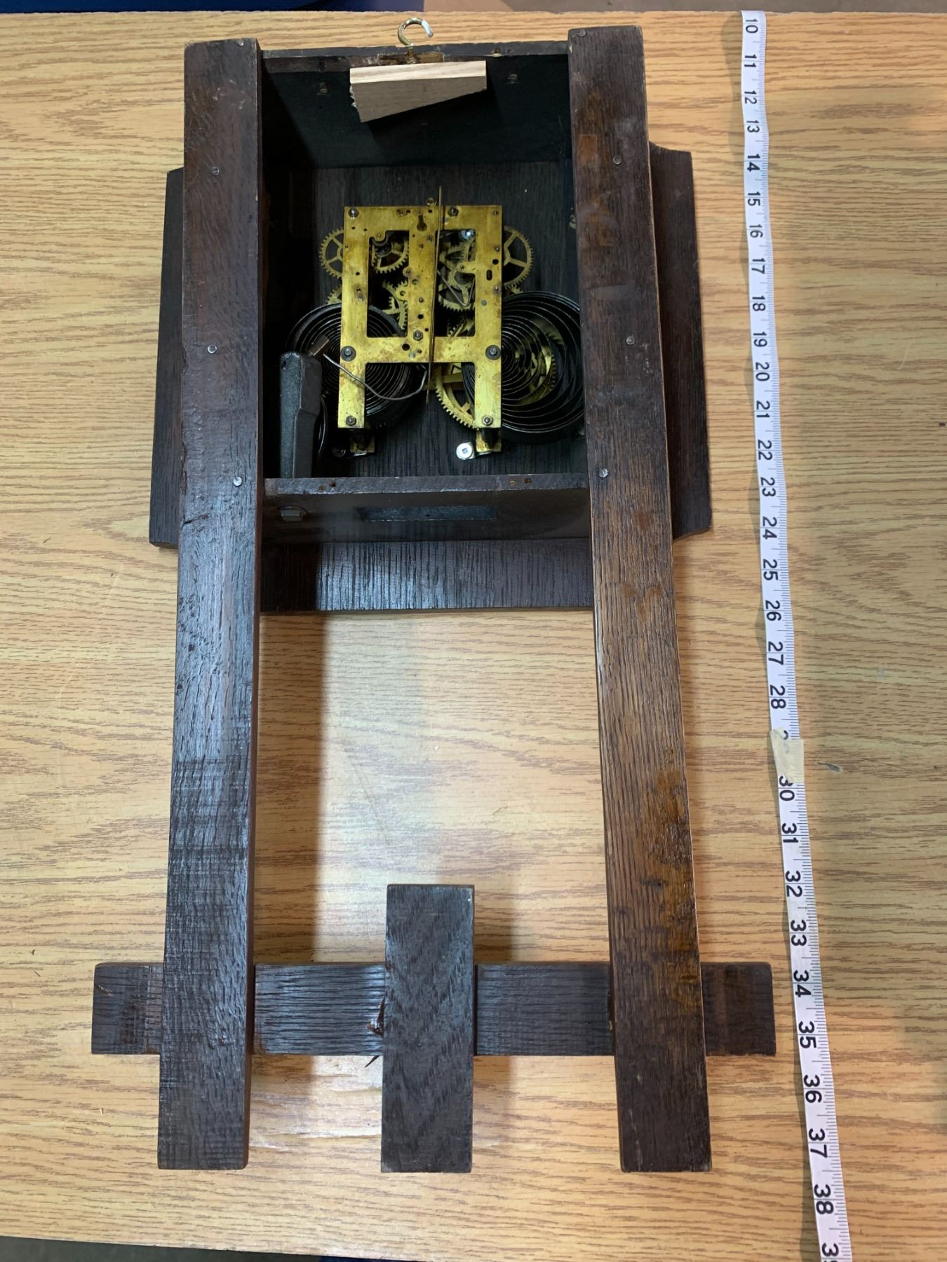 ANTIQUE WOODEN CLOCK W/ WORKING GEARS