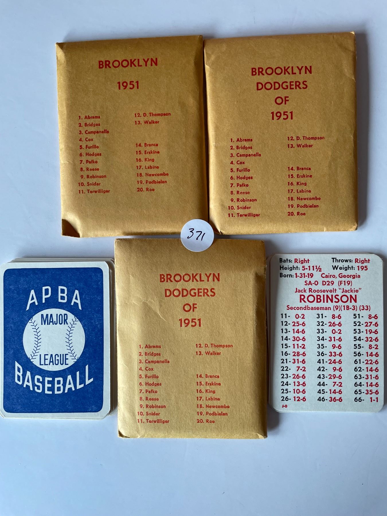 APBA 3 sets of 1951 Brooklynn Dodgers cards includes 3 Jackie Robinson cards