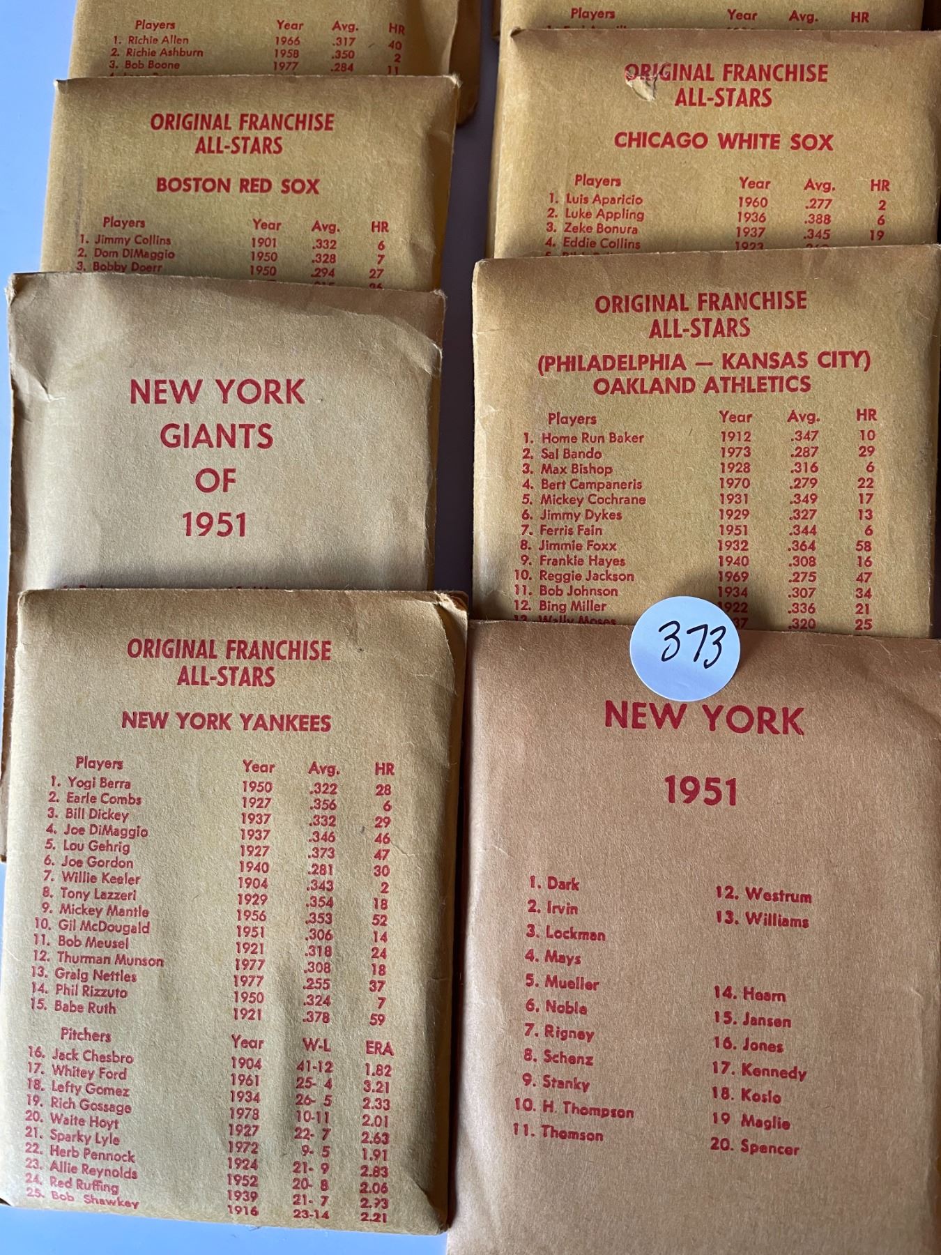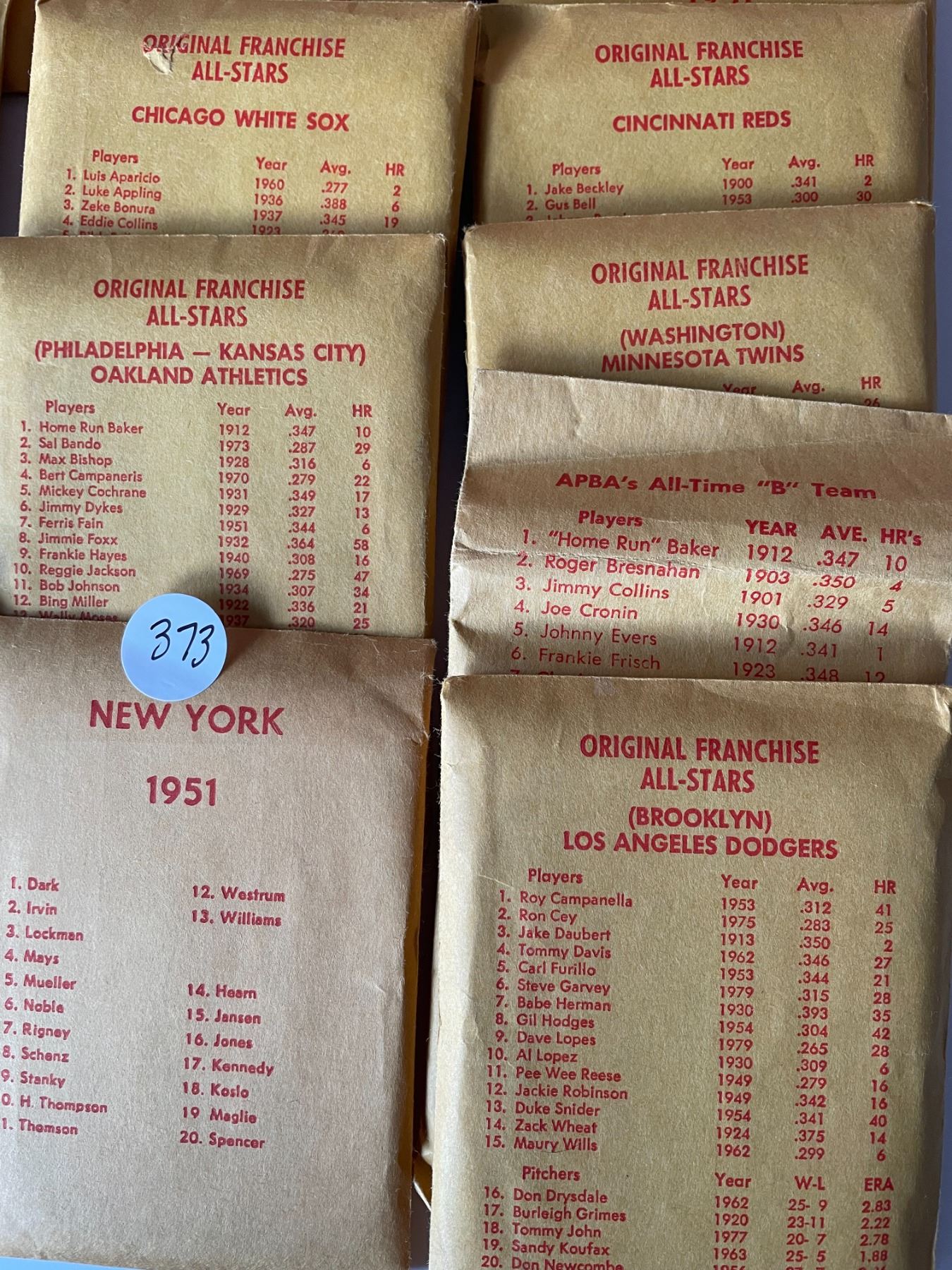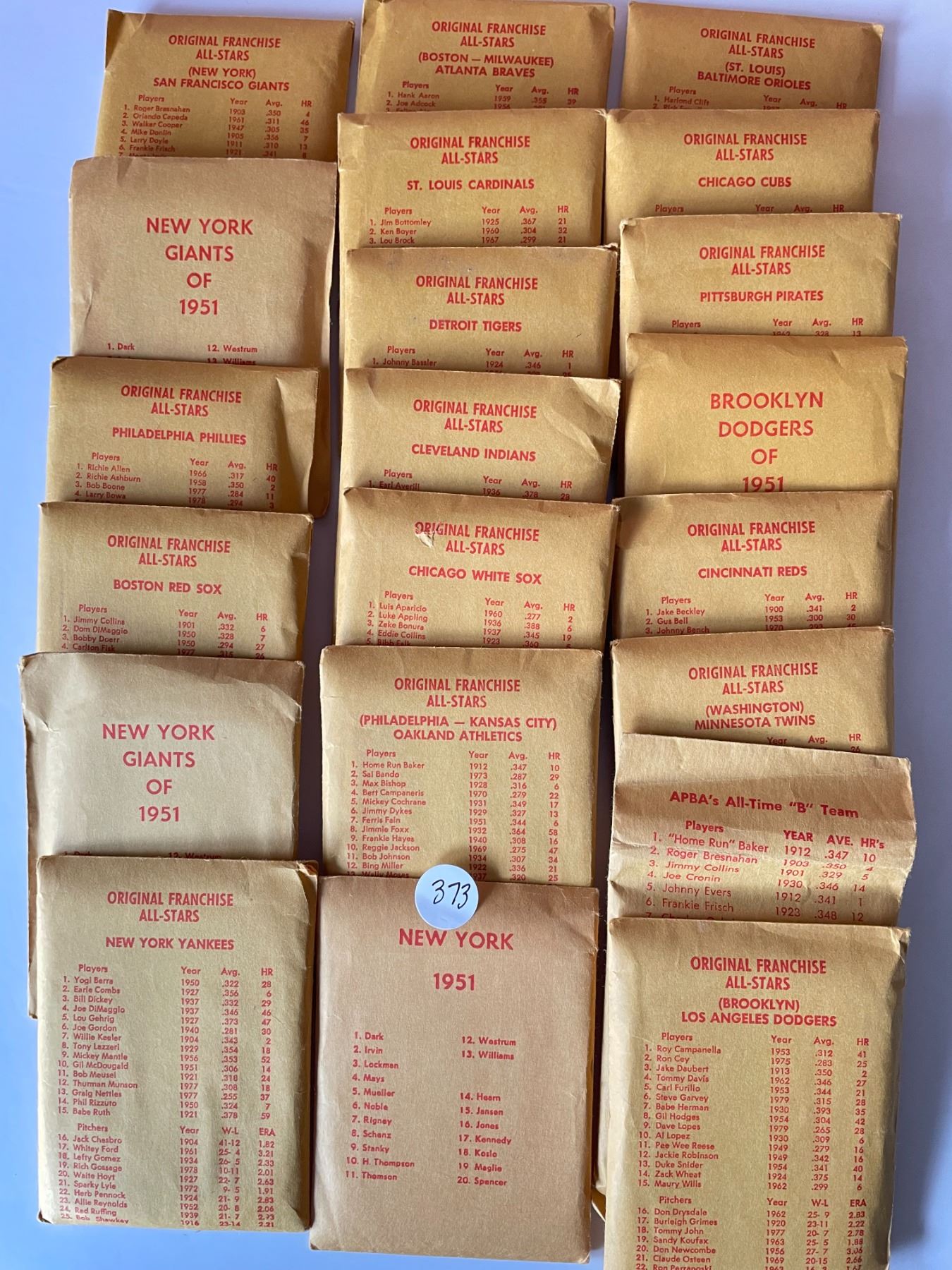 APBA All Stars Cards complete set of teams includes Babe Ruth card