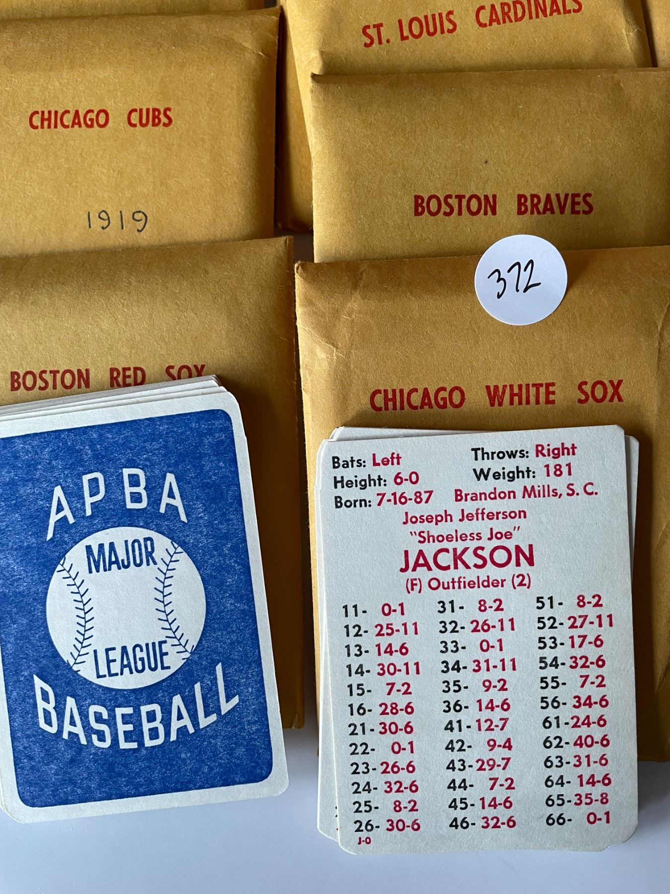 APBA Complete 1919 Teams set baseball cards includes Shoeless Joe Jackson card