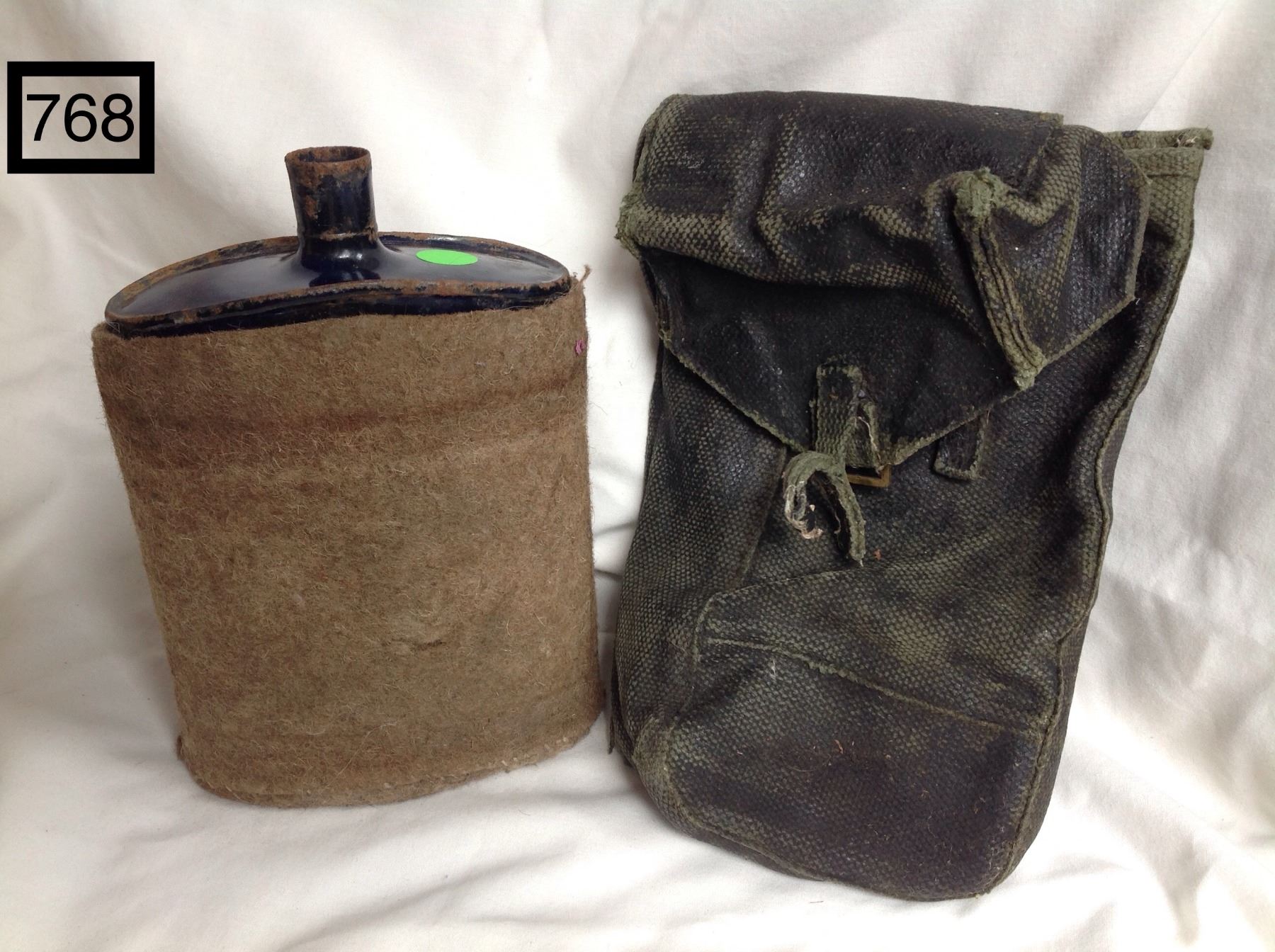 ARMY CANTEEN, (BLUE CAN ) FELT COVERED(FELT TORN) & RADIO POUCH