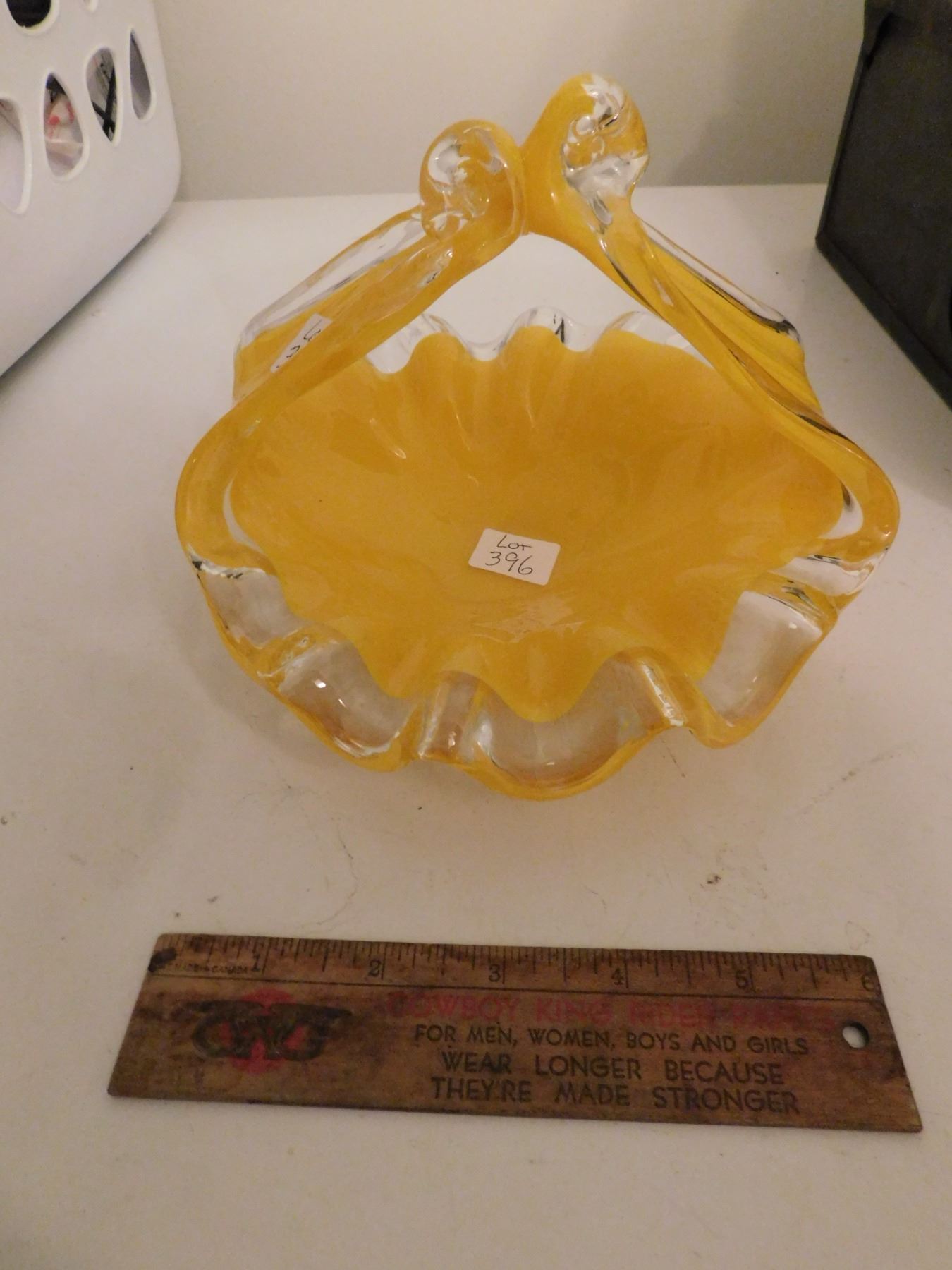 ART GLASS BASKET FRUIT/ CANDY DISH