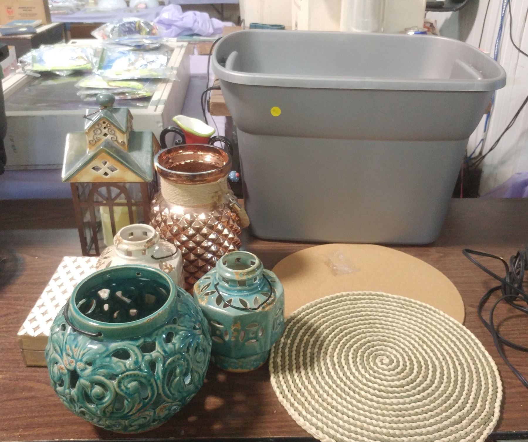 ASSORTED DÉCOR WITH PLASTIC BIN