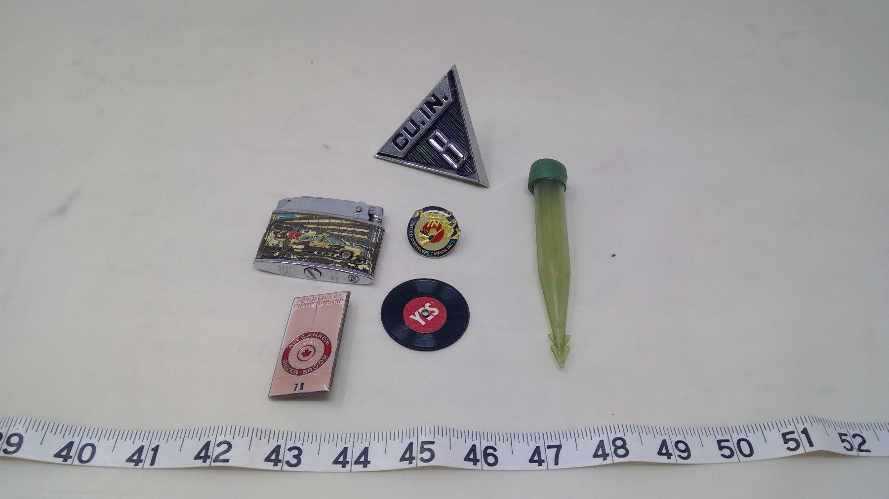 ASSORTED ITEMS- LIGHTER, PINS, ETC