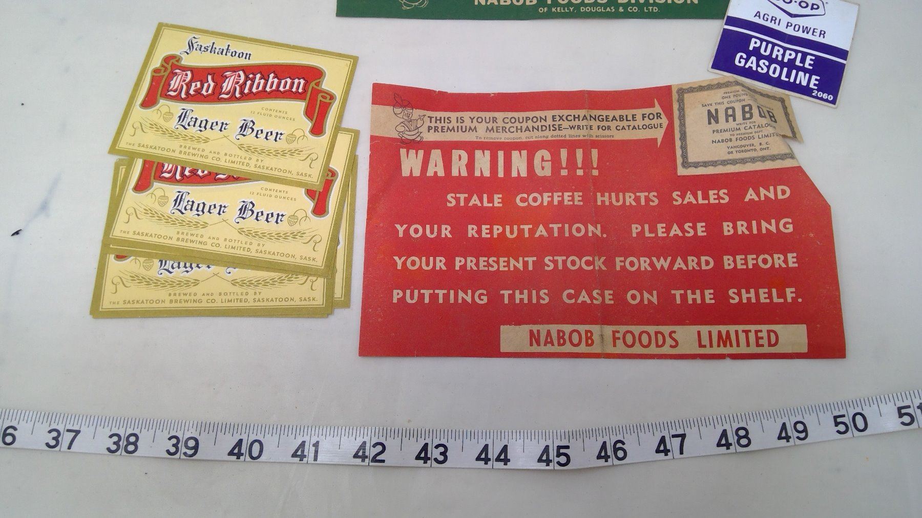 ASSORTED PAPERS - NABOB, RED RIBBON, LAGER BEER, ETC