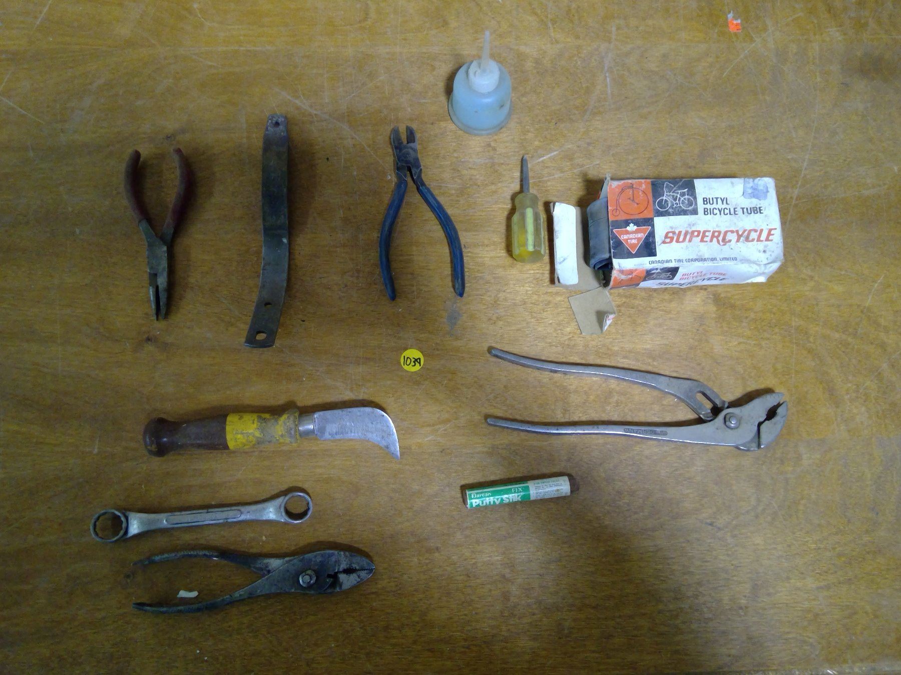 ASSORTED TOOLS & BIKE TIRE TUBE
