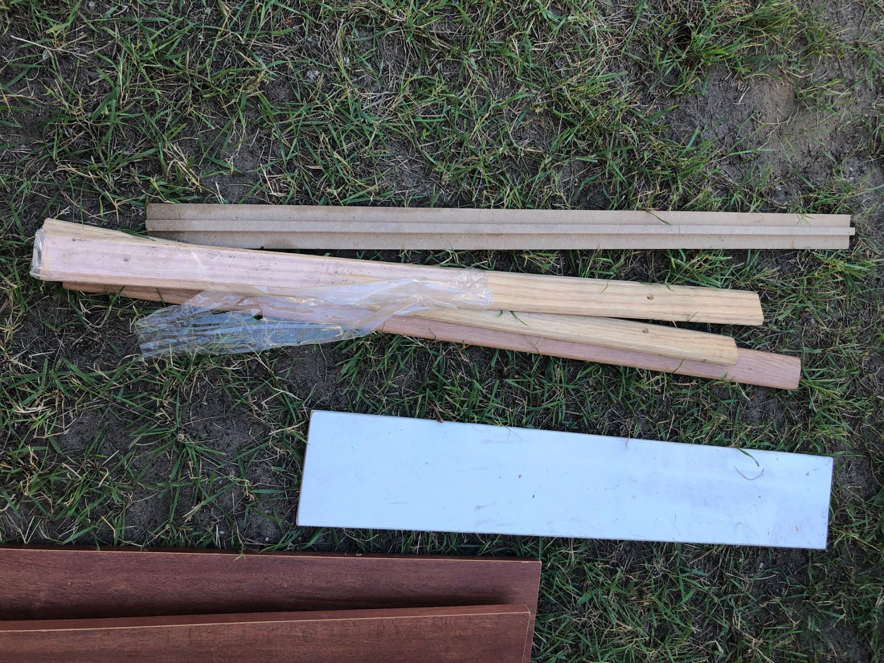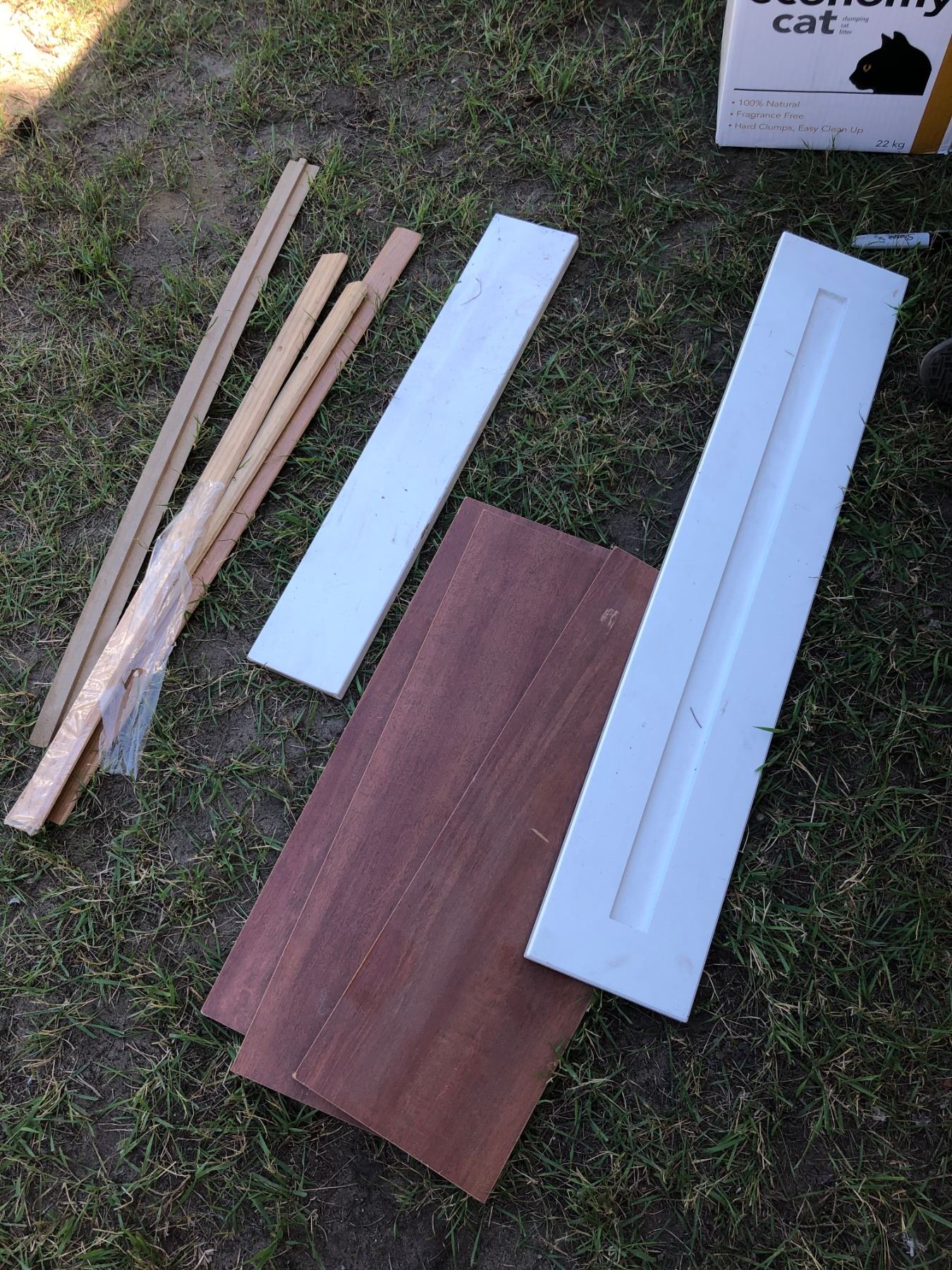 ASSORTED TRIM FOR FLOORING/WHITE VANITY FRONT/3 SHELF PIECES