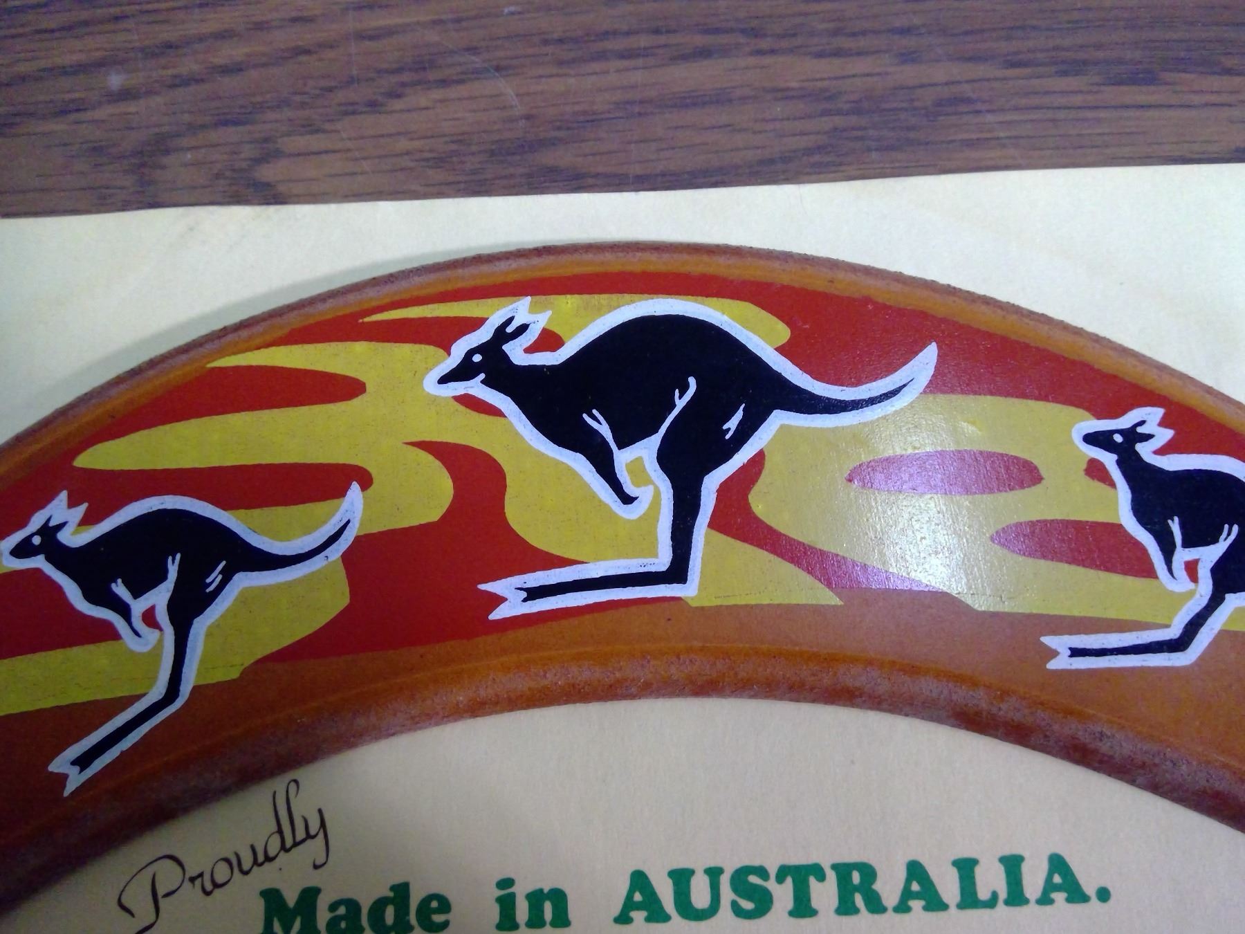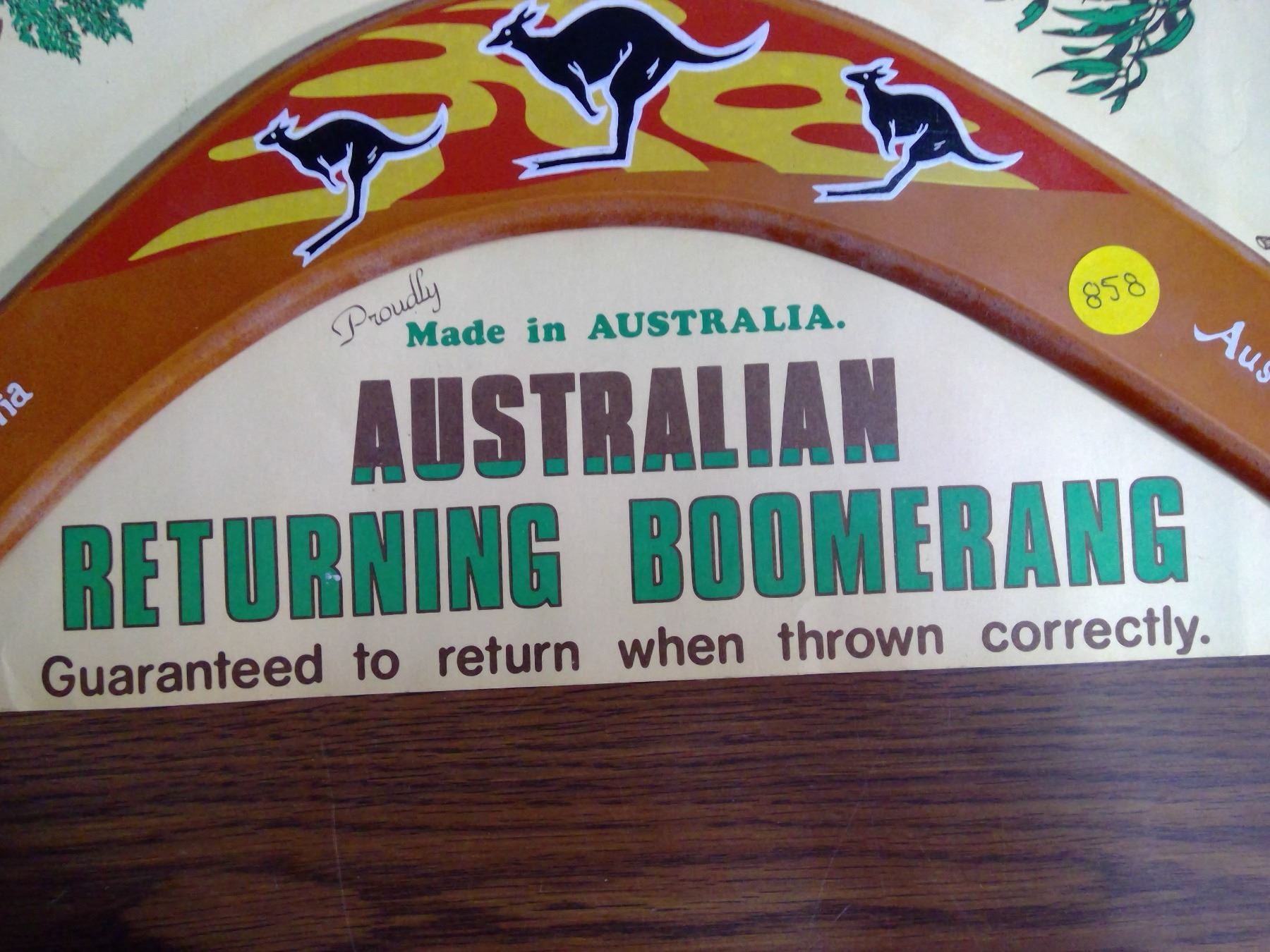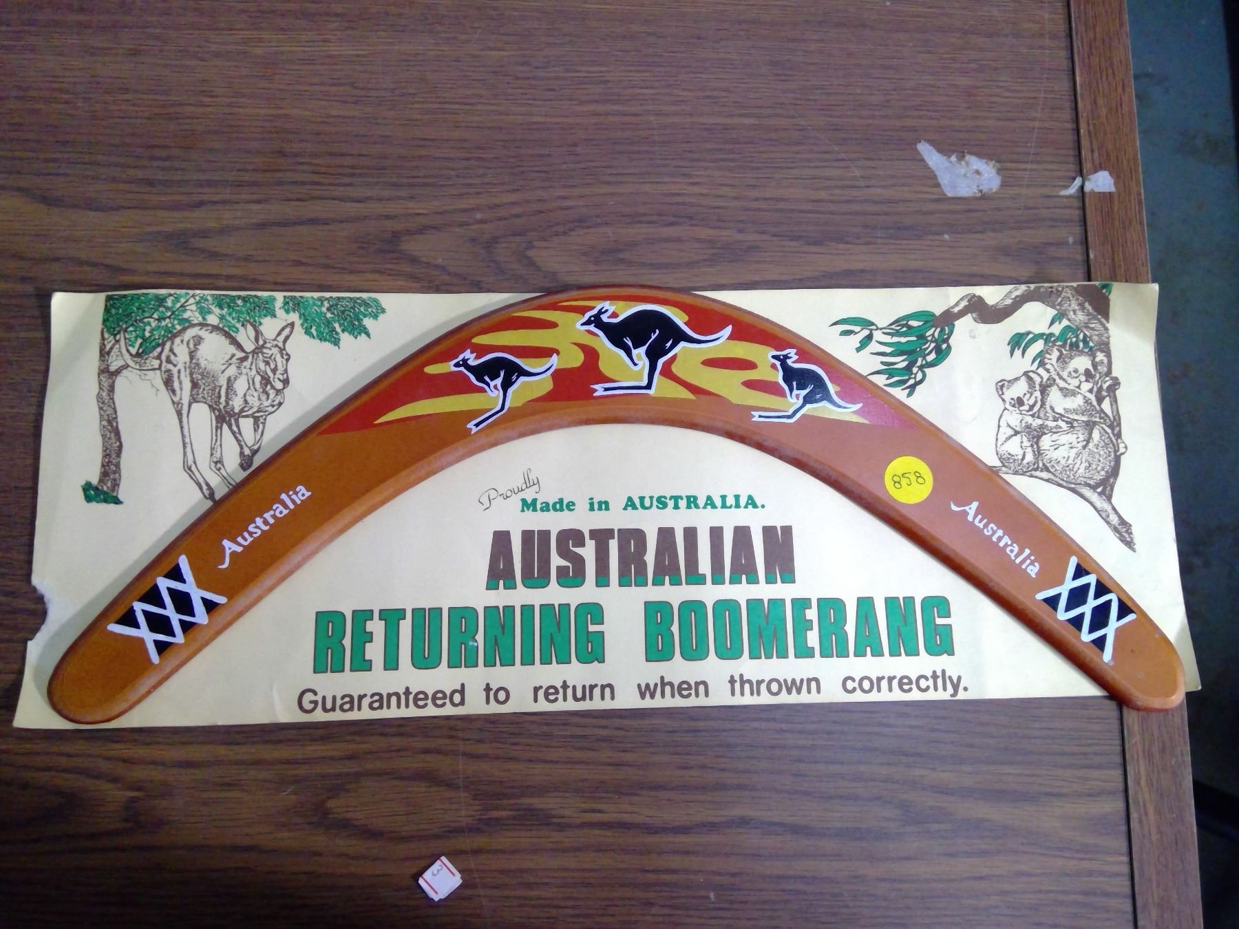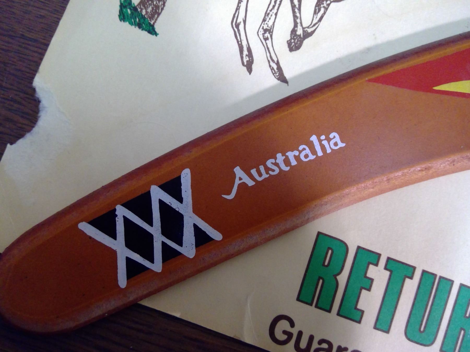 AUSTRALIAN RETURNING BOOMERAG, MADE IN AUSTRALIA (BOOMERANG AND ADVERTISEMENT)