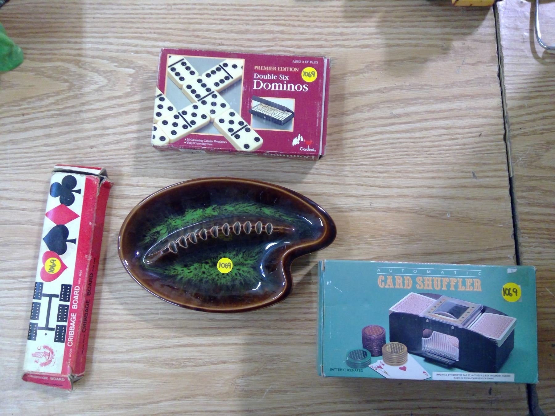 AUTOMATIC CARD SHUFFLER + DOMINOES + CRIBBAGE + DECO ASHTRAY