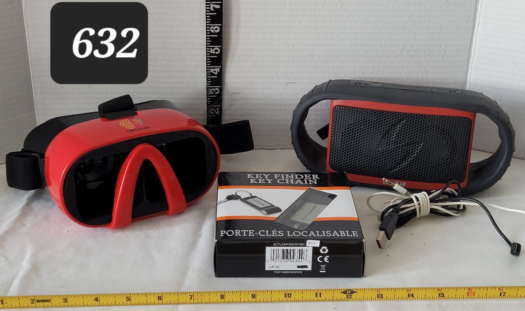 Abacus smart phone virtual reality headset. Ecoxgear waterproof blue tooth speaker & New in box key finder.
