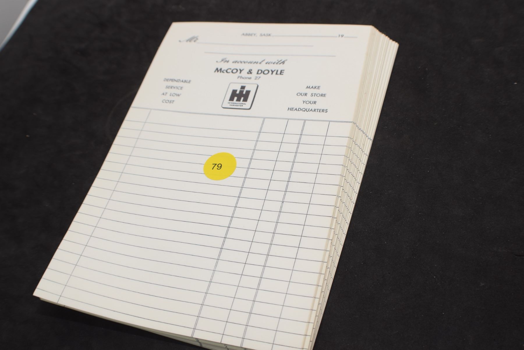 Abbey, Sask. I-H Invoice Lot