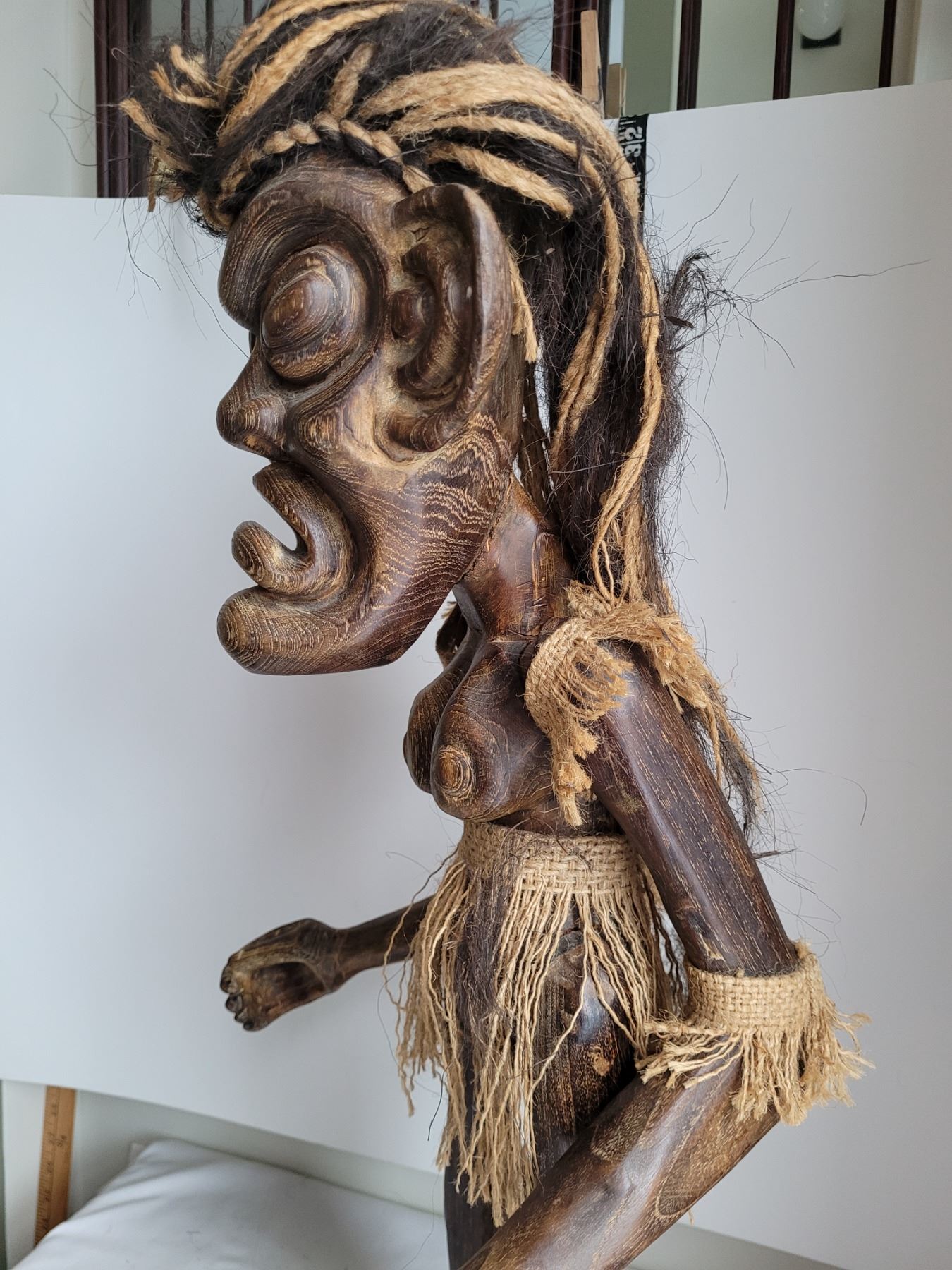 African tribal Tiki warrior statue, approx. 30' tall, arms move.