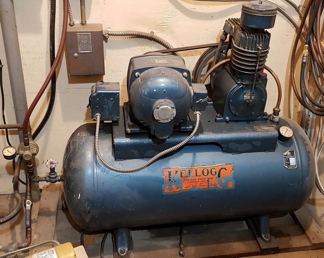 Air Compressor with Starter Switch and Pressure Regulator (pin hole in tank underneath on bottome left side under regulators)