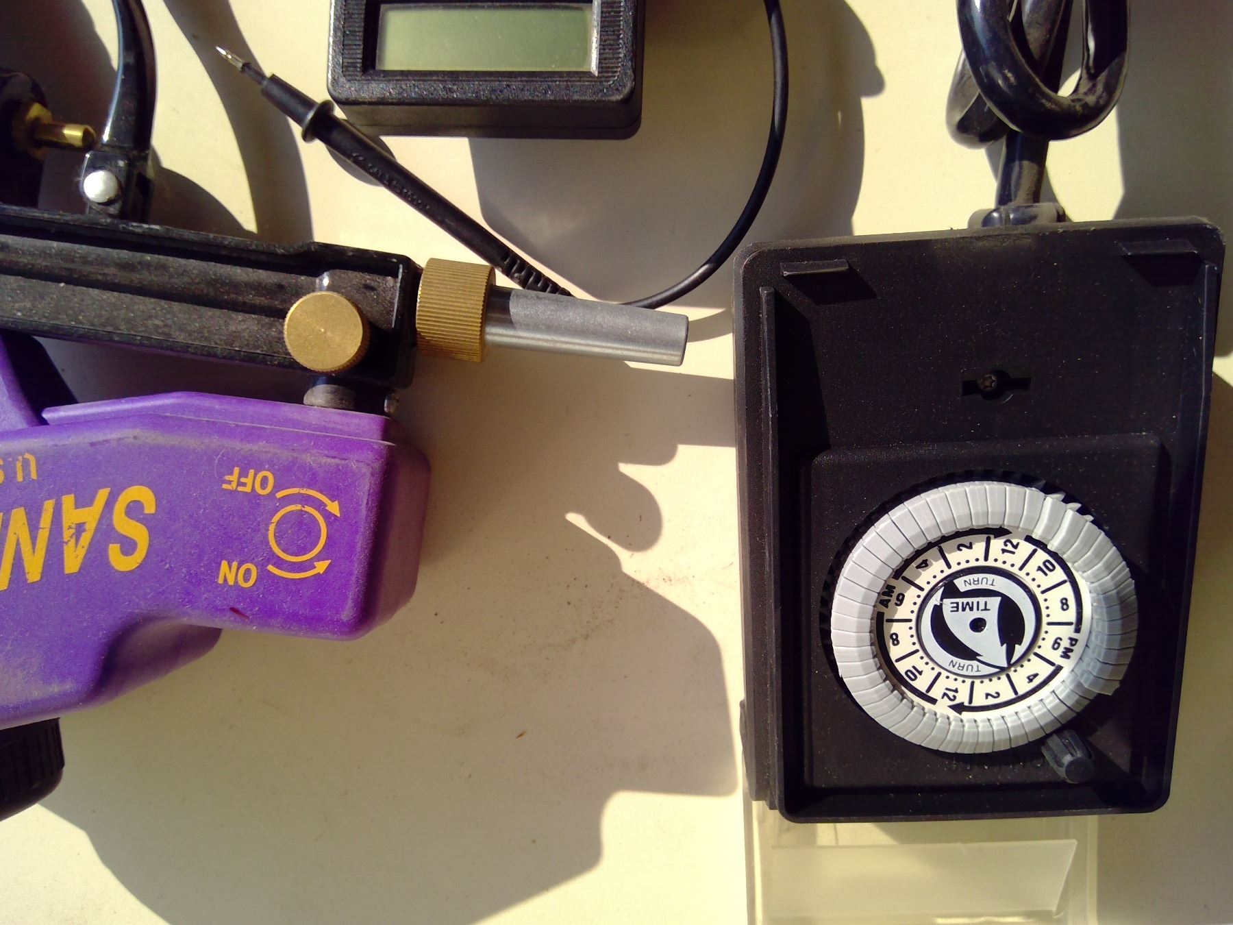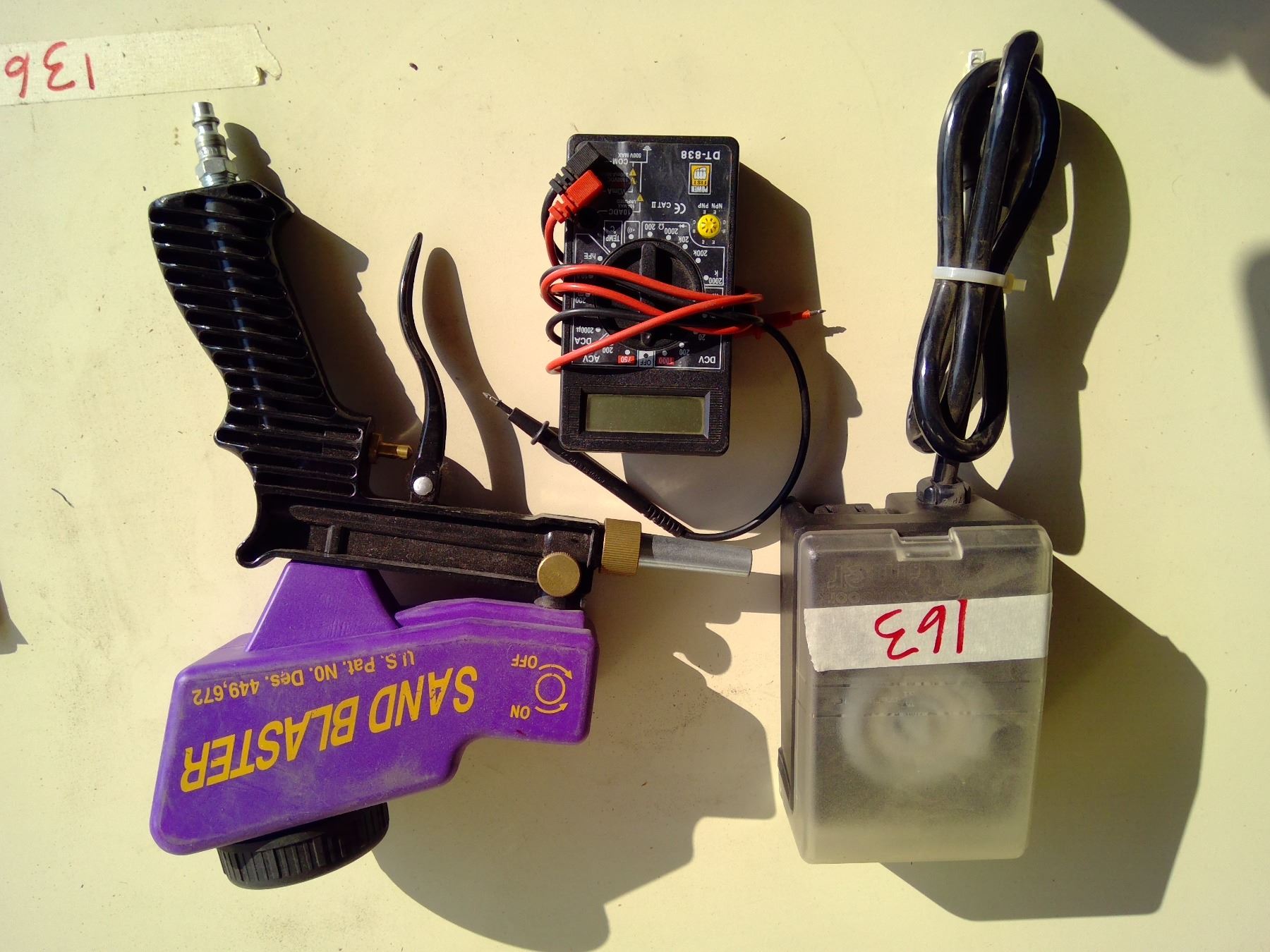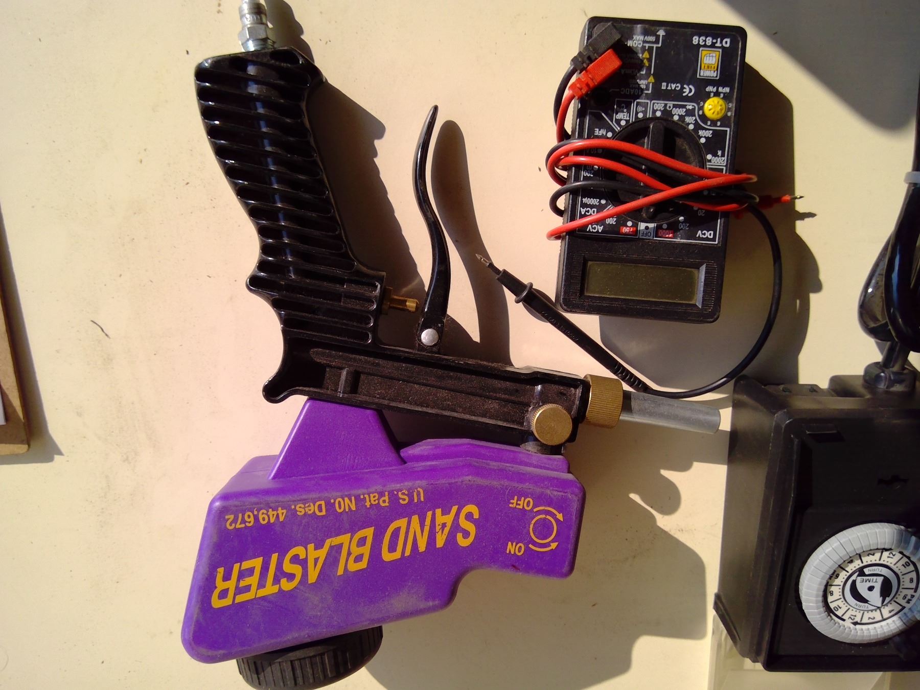 Air sandblaster, multimeter and timer