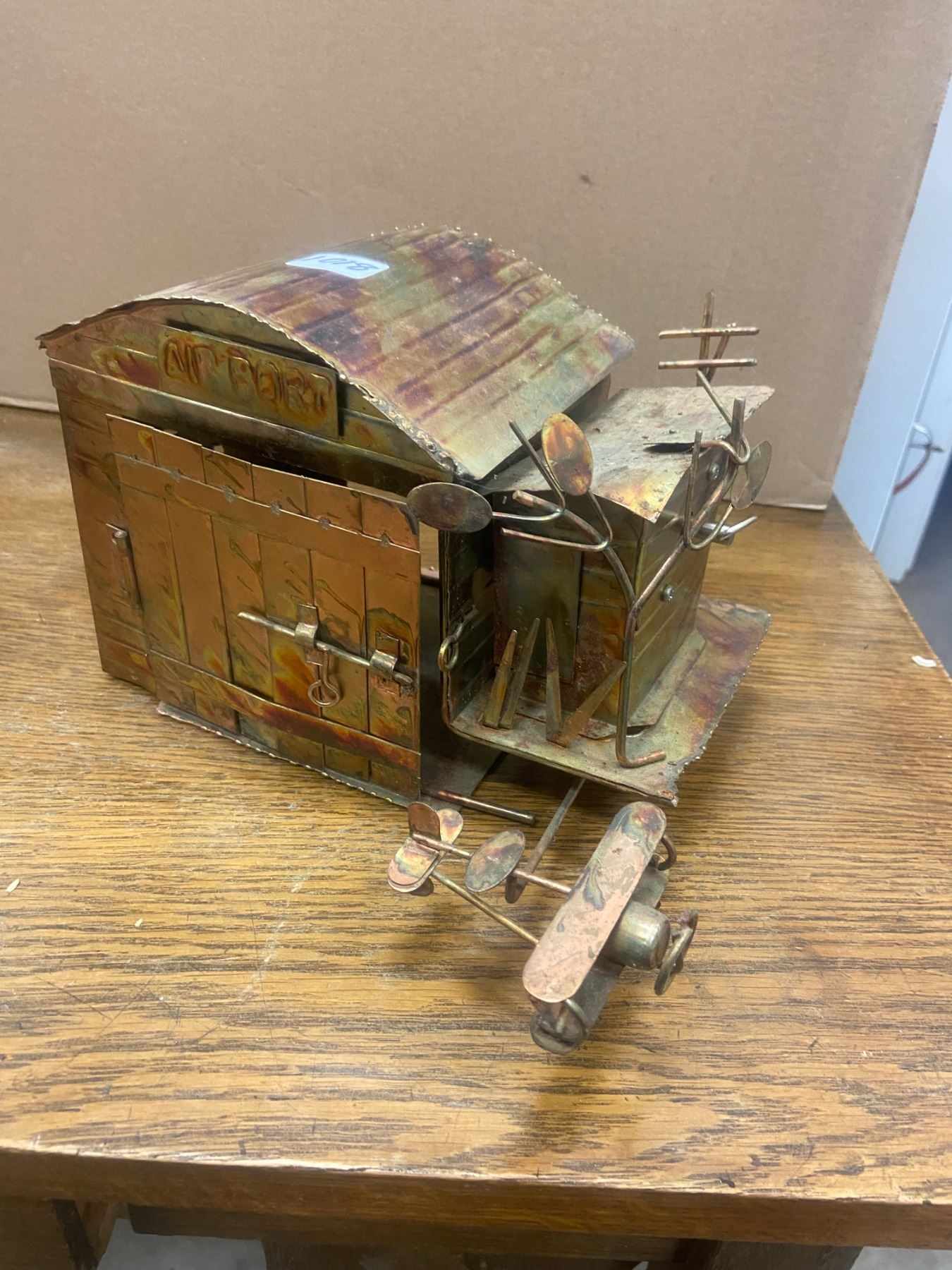 Airport Hanger & Copper Airplane - Mechanical movement and music box