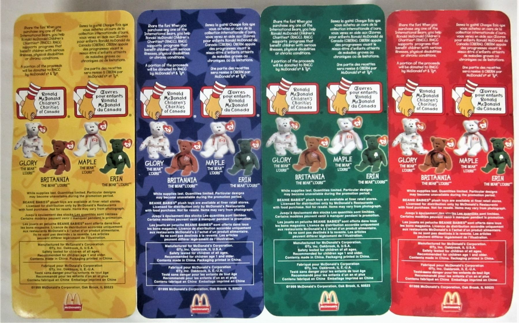 All 4 LTD ED 1999 McDonalds new sealed TY teenie beanie babies Glory -Maple- Erin- Britannia