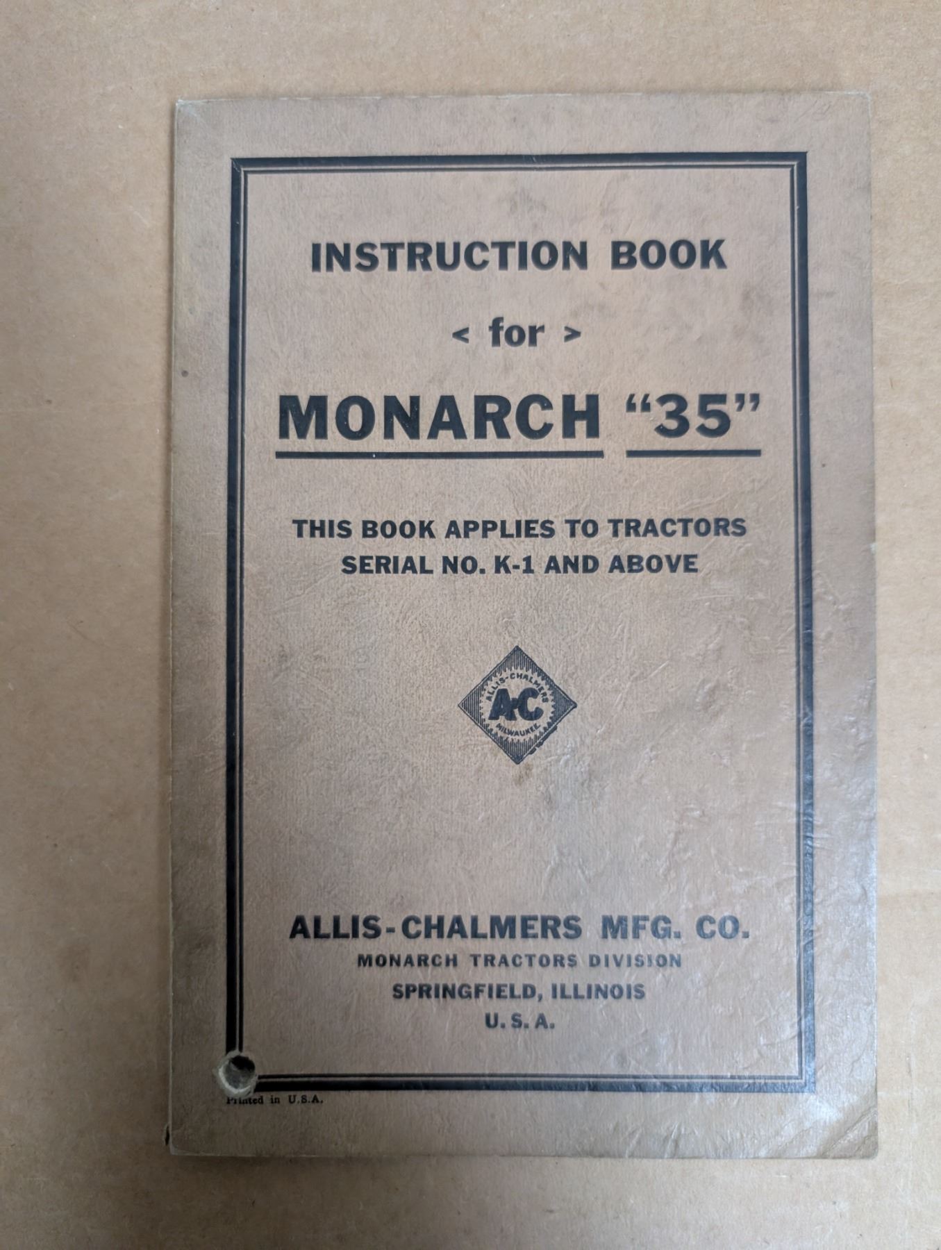 Allis Chalmers Monarch "35" Instruction Book Crawler Manual
