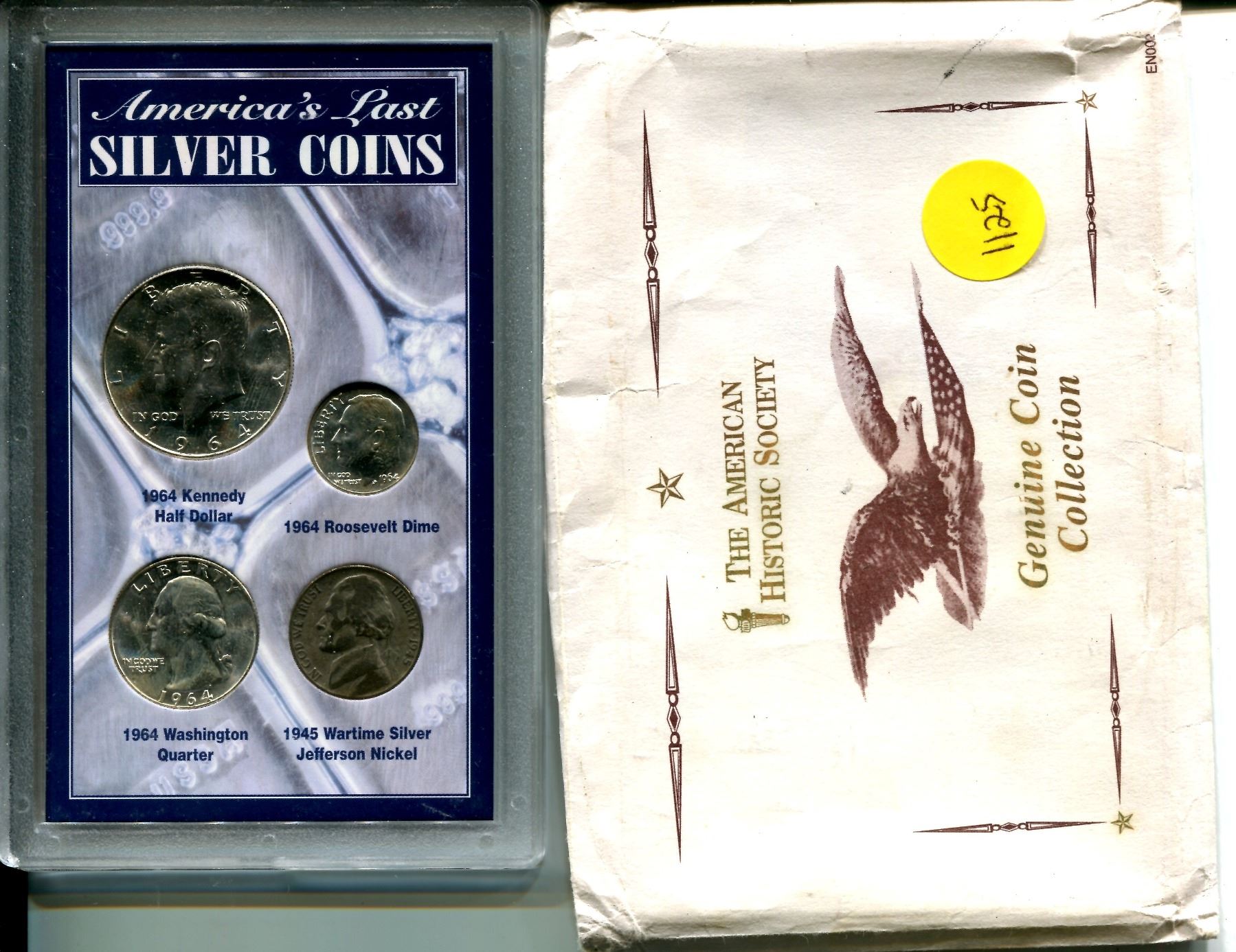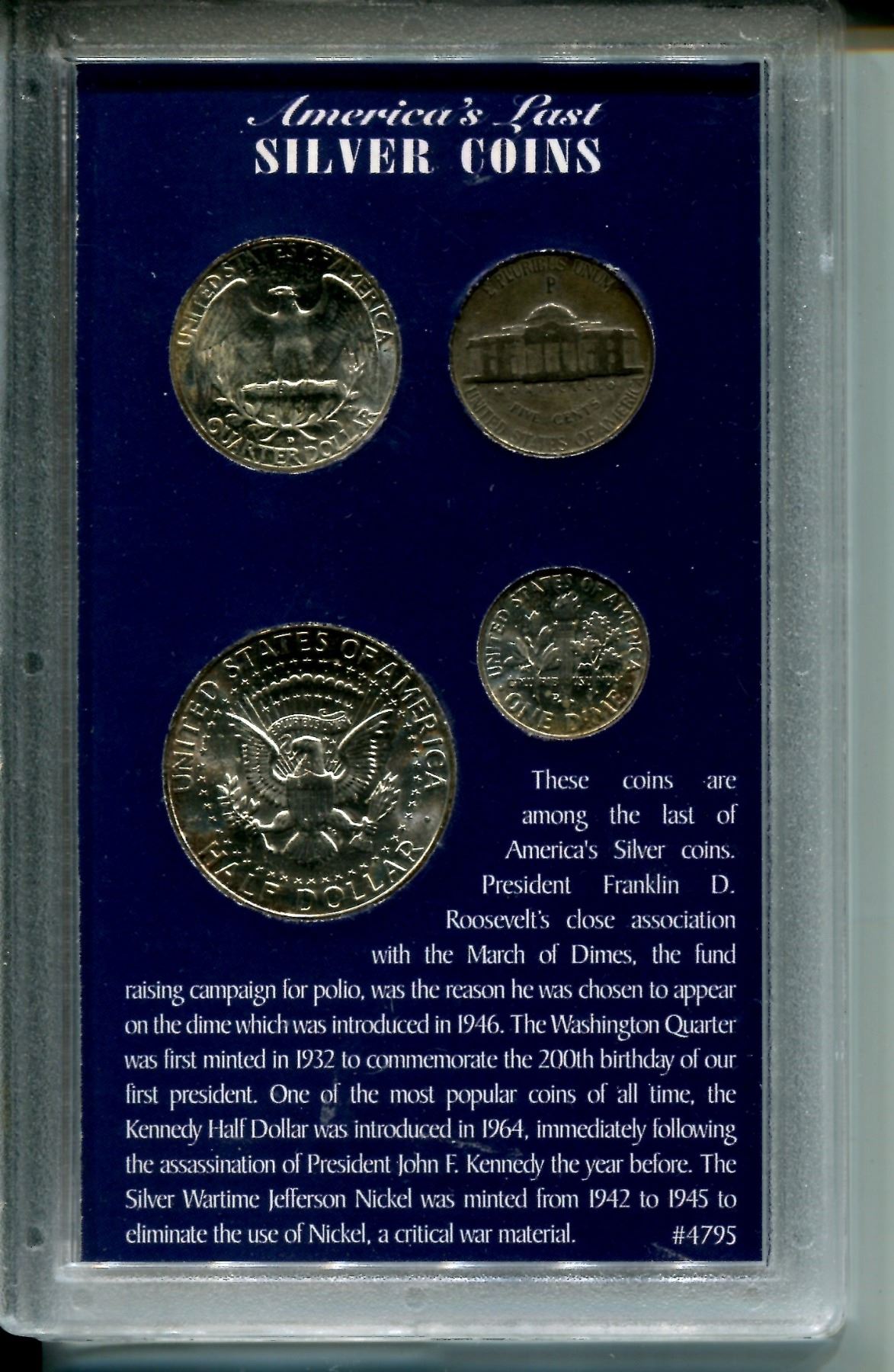 America - Last Silver Coins Plastic Case w/ 1964 50 Cent - 10 Cent-25 Cent and 1945 5 Cent