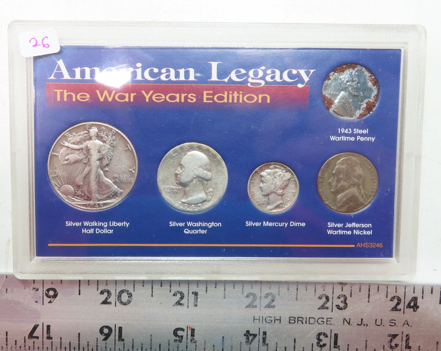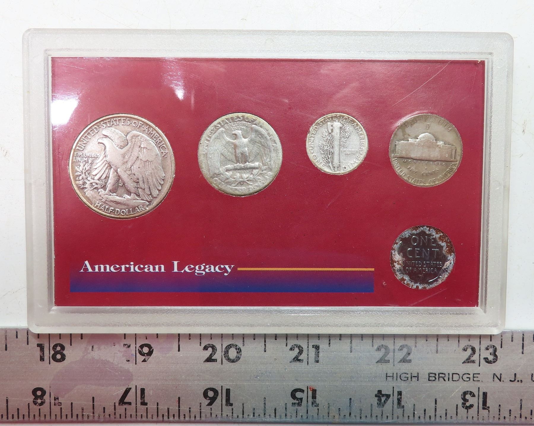 American Legacy: The War Years Edition. Includes 1943 Steel Cent, Silver Jefferson Wartime Nickel, Silver Mercury Dime, Silver Washington Quarter & Silver Walking Liberty Half Dollar.