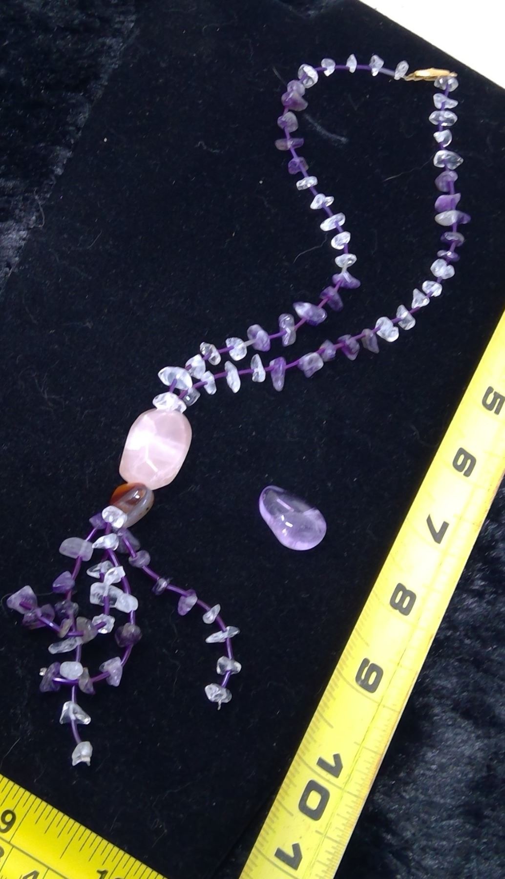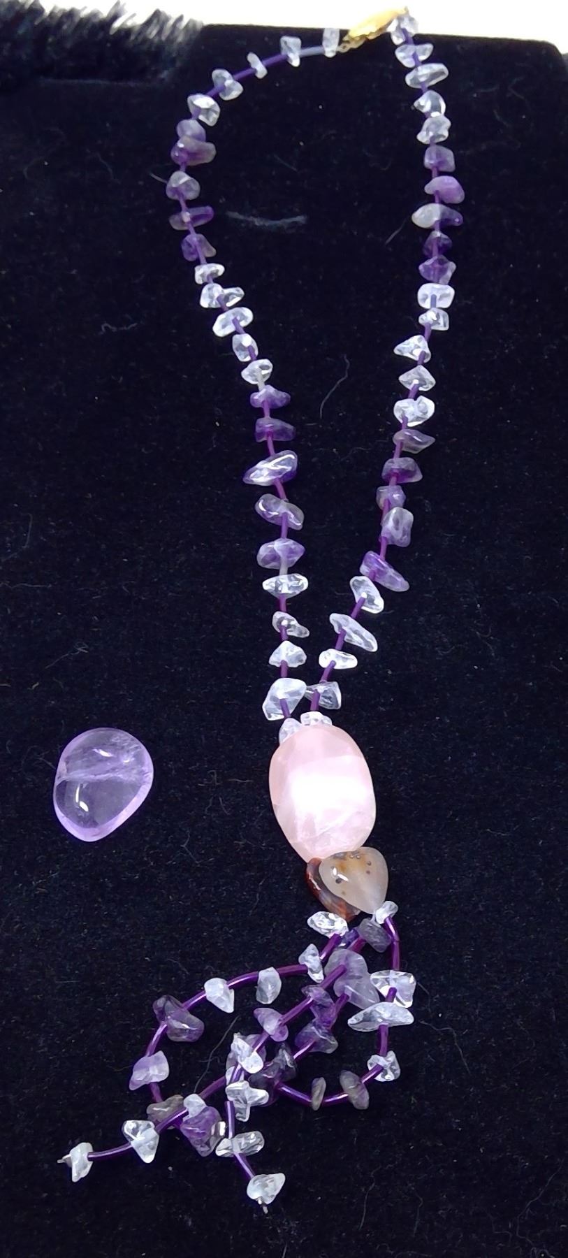 Amethyst Crystal, and Rose Quartz Necklace and Stone