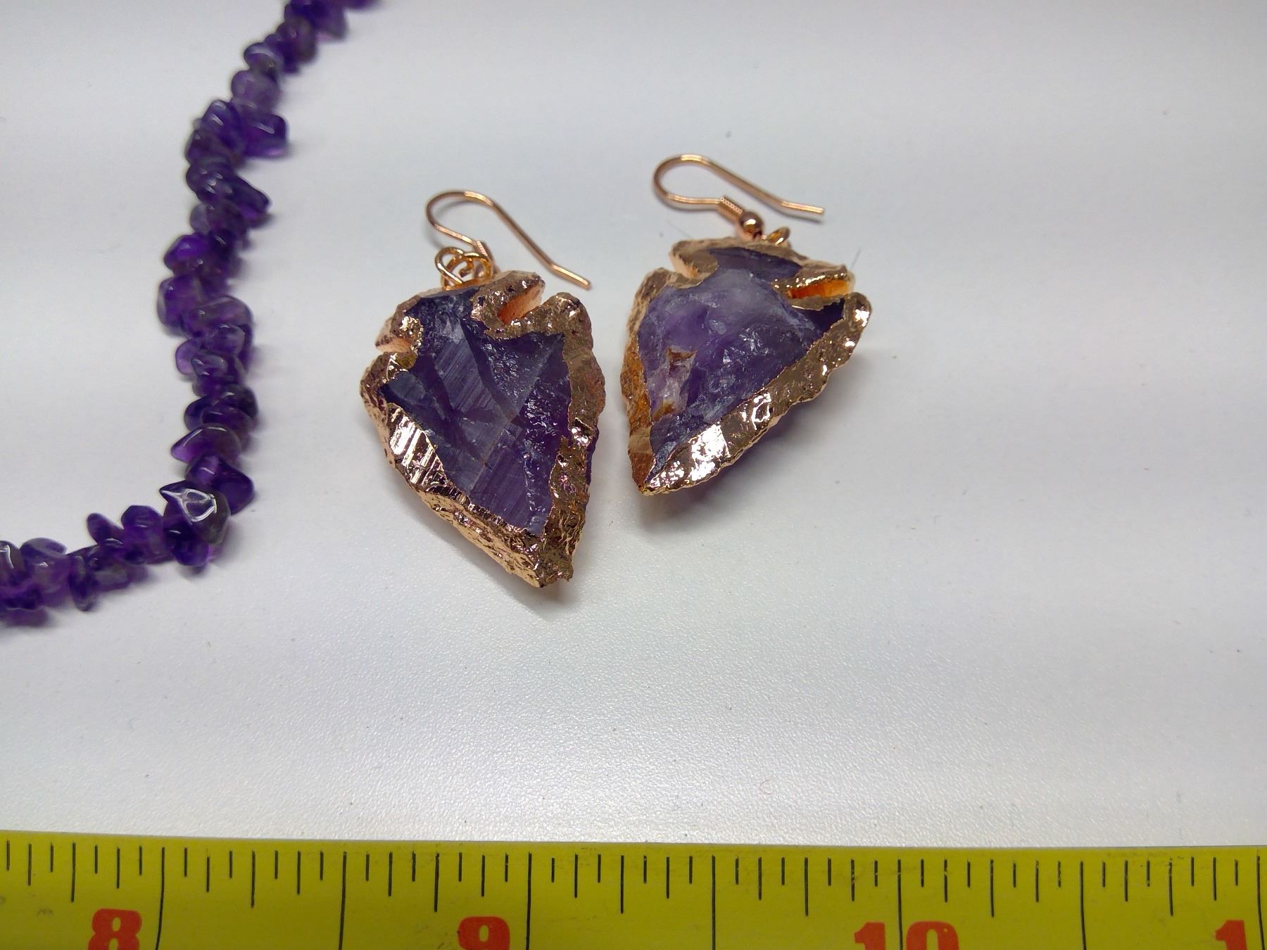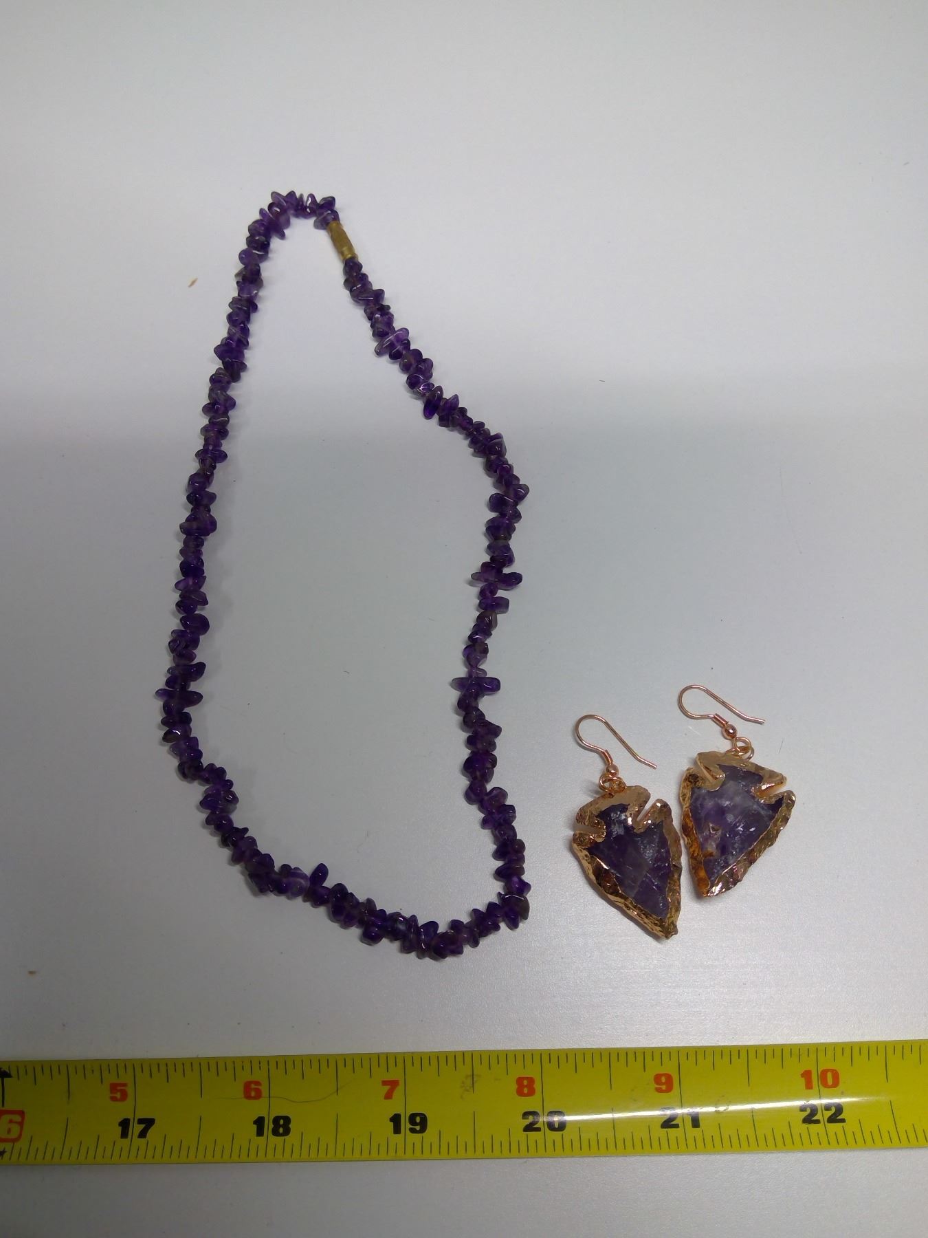 Amethyst Necklace + Copper Arrowhead Earrings