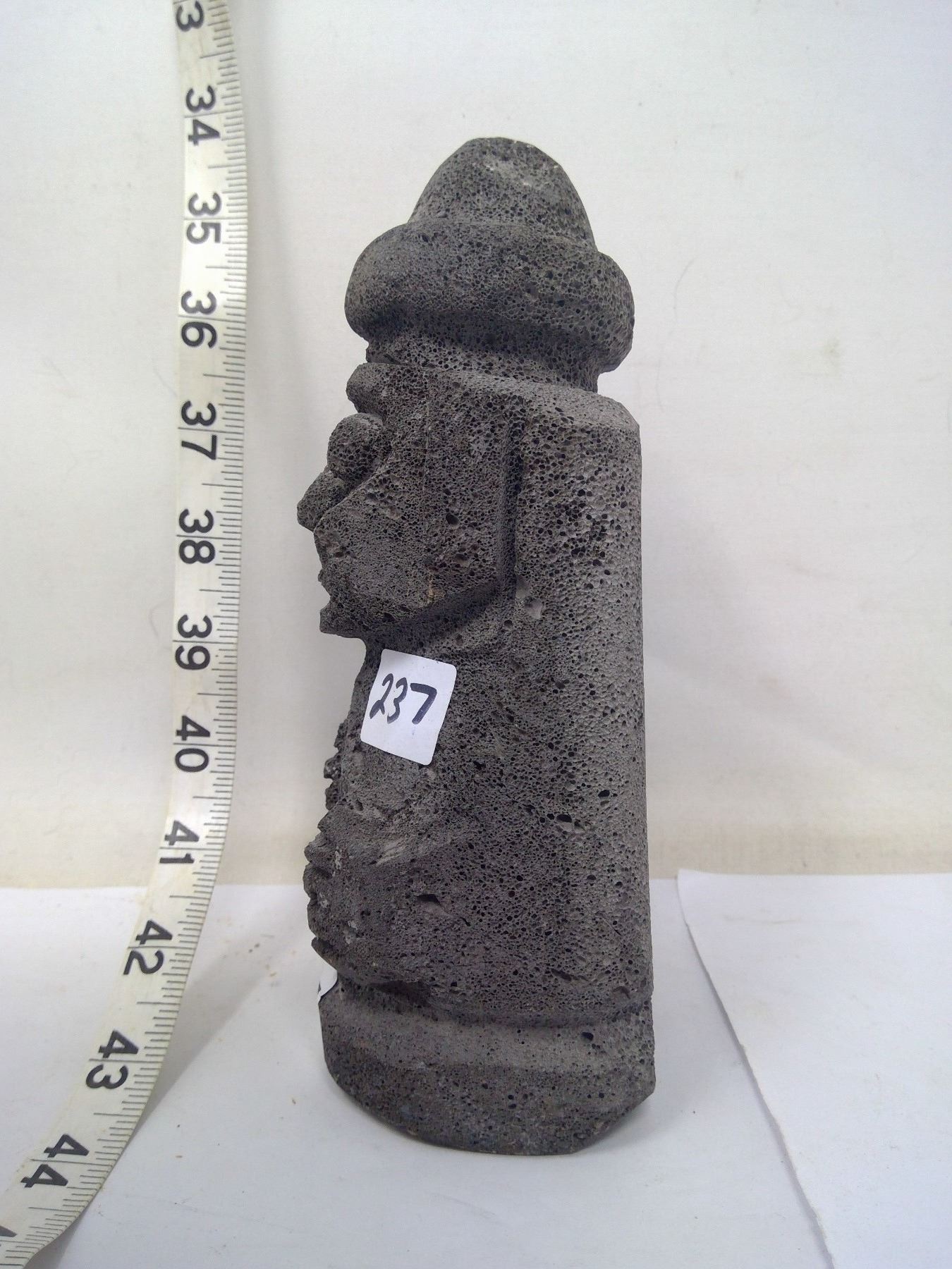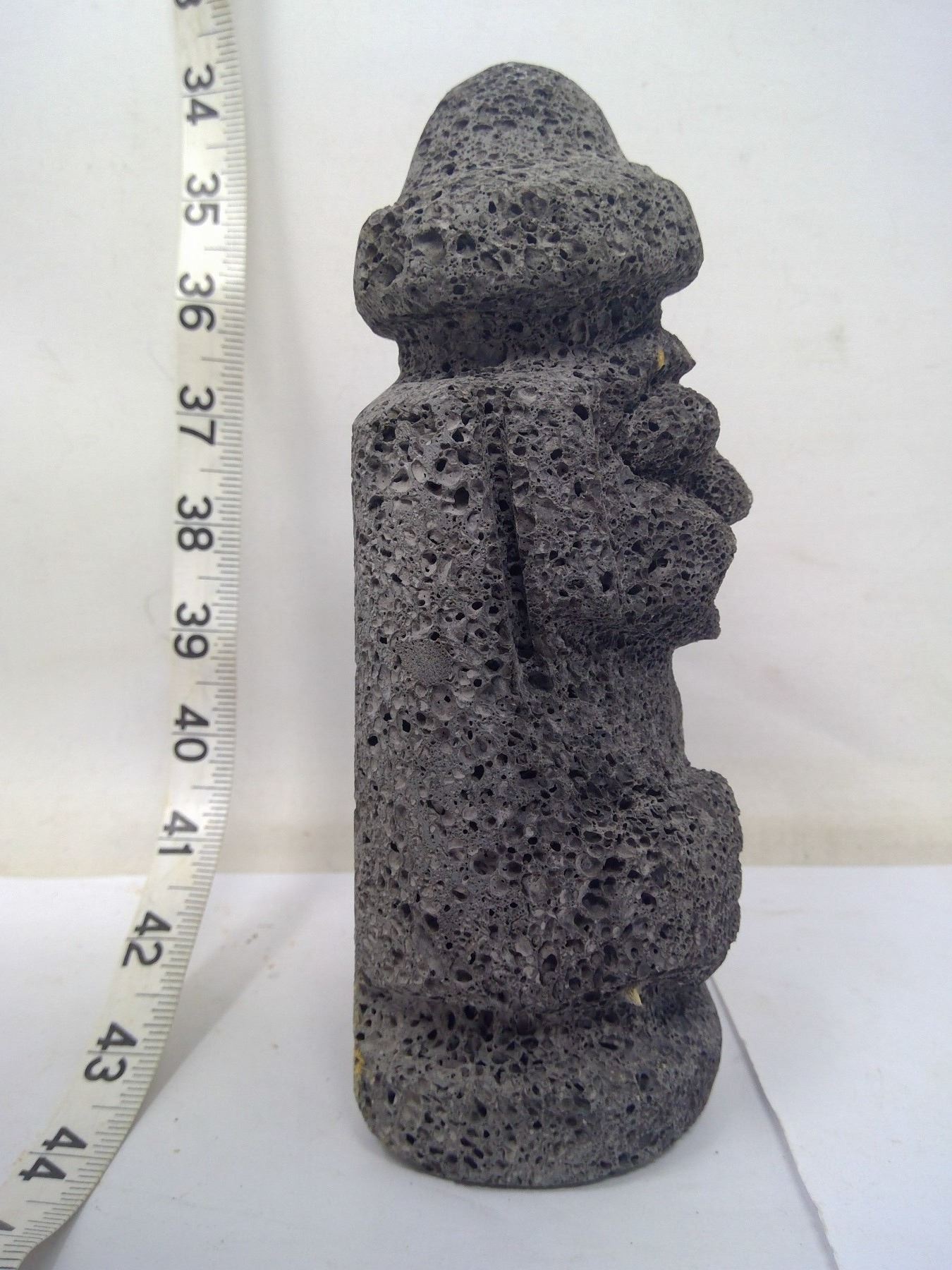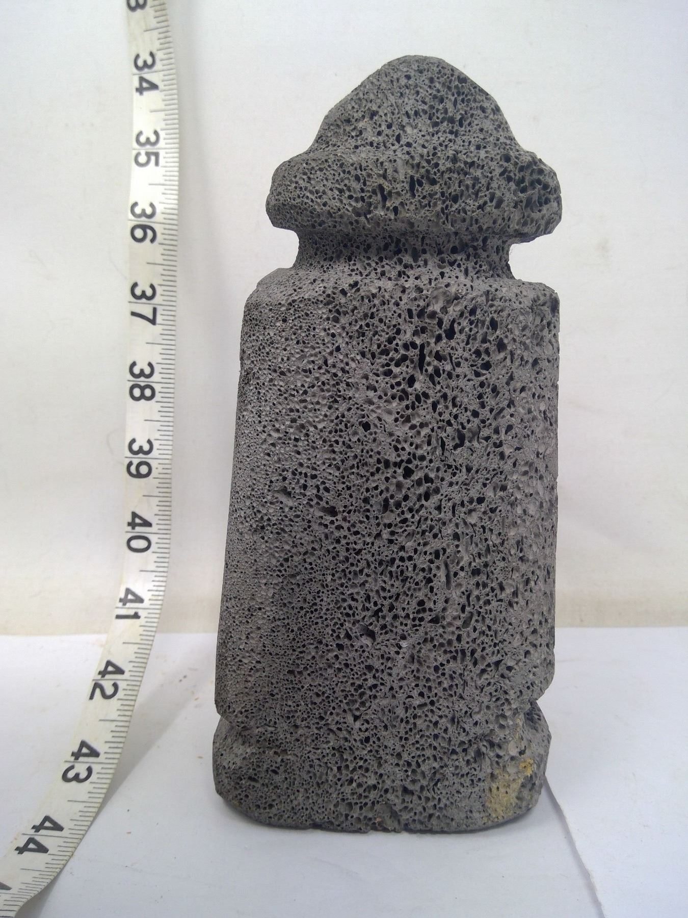 Ancient gnome-like god carved of lava stone from Cheju Island South Korea. Height 8”.