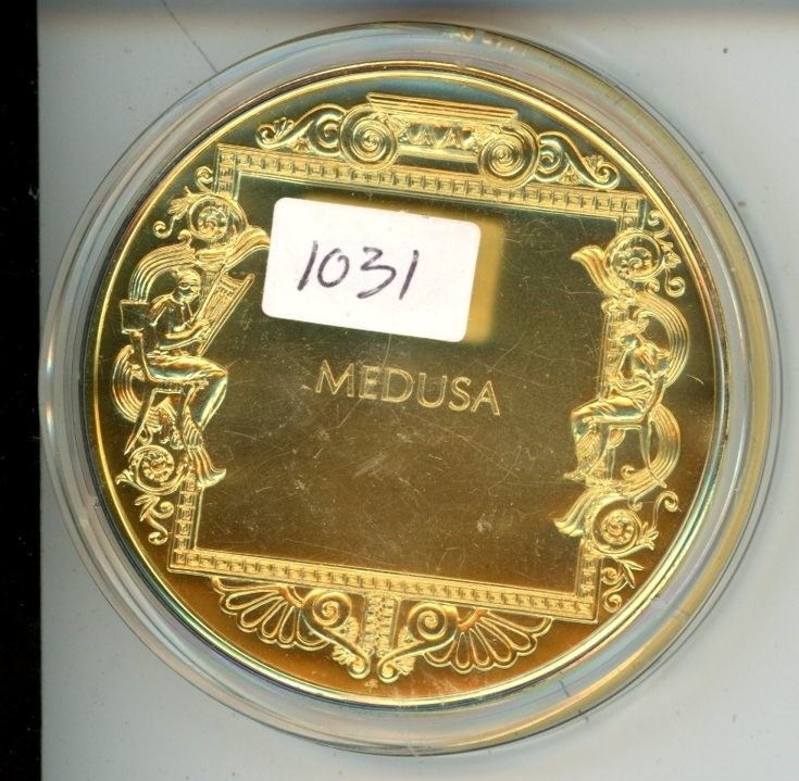 Ancient Greece Medals Series. Medusa. Beautiful Gold-plated bronze medal measuring 50mm and weighing approximately 80 grams. In hard plastic holder.