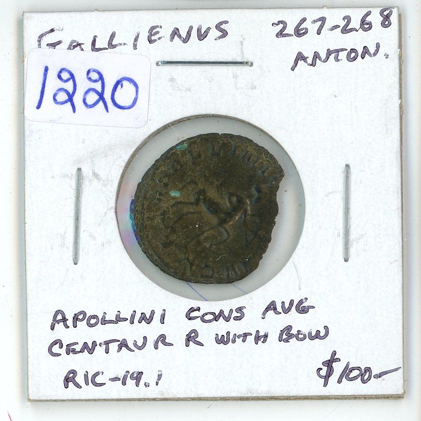 Ancient Rome. Emperor Gallienus. 267-268 AD. Bronze Antoninianus. Emperor facing right. Rev: APOLLINI CONS AVG. Centaur right with bow. RIC-19.1.