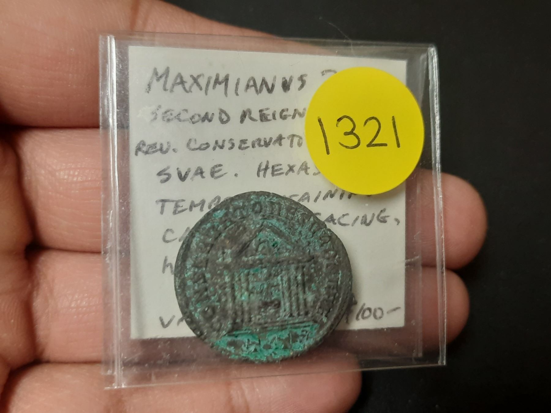 Ancient Rome. Emperor Maximianus 306 – 308 AD copper coin. Depicts the victory over Carthage. S-13441 variety. VF+ with corrosion.