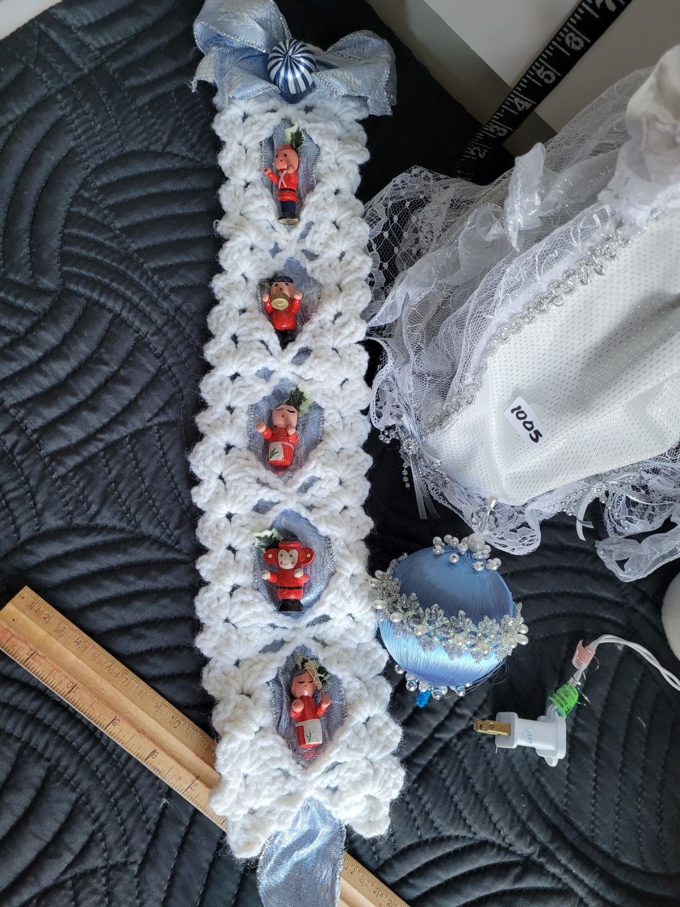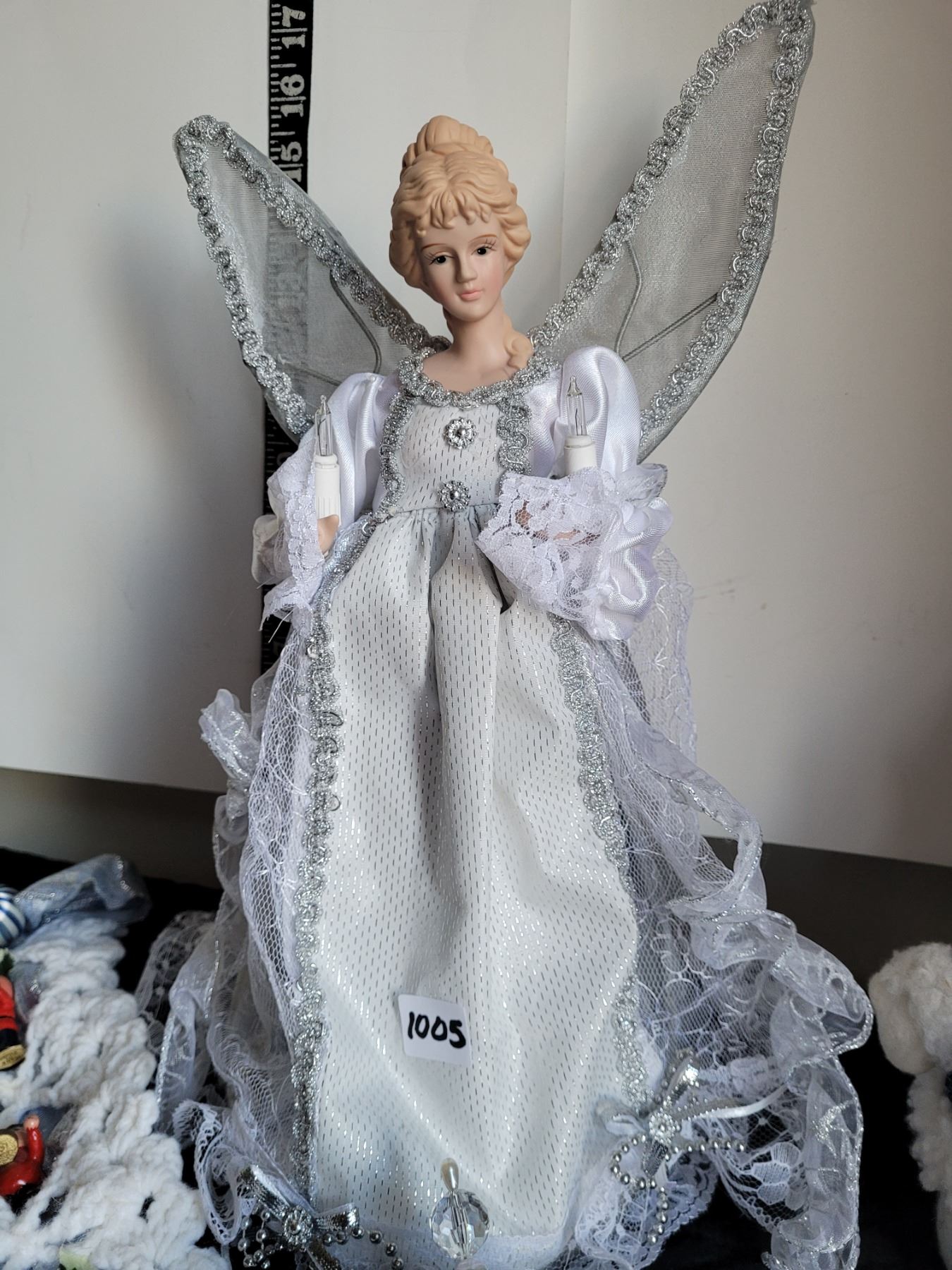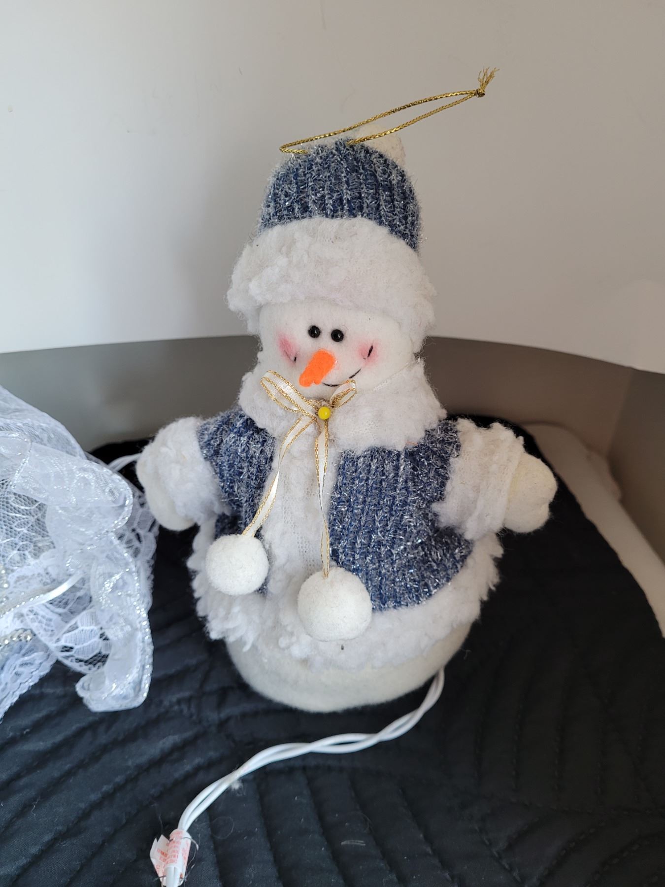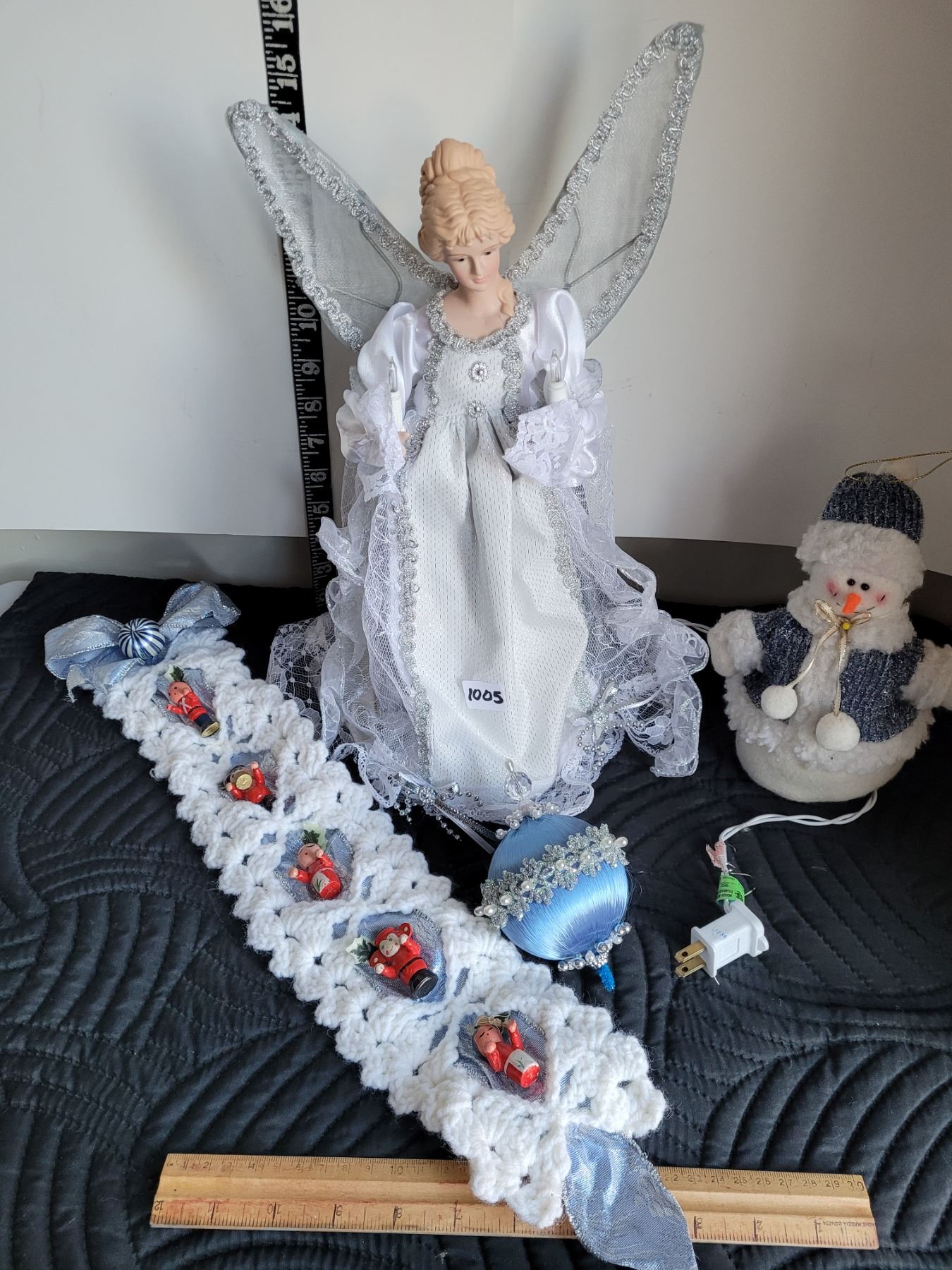 Angel tree topper, snowman and ornaments.