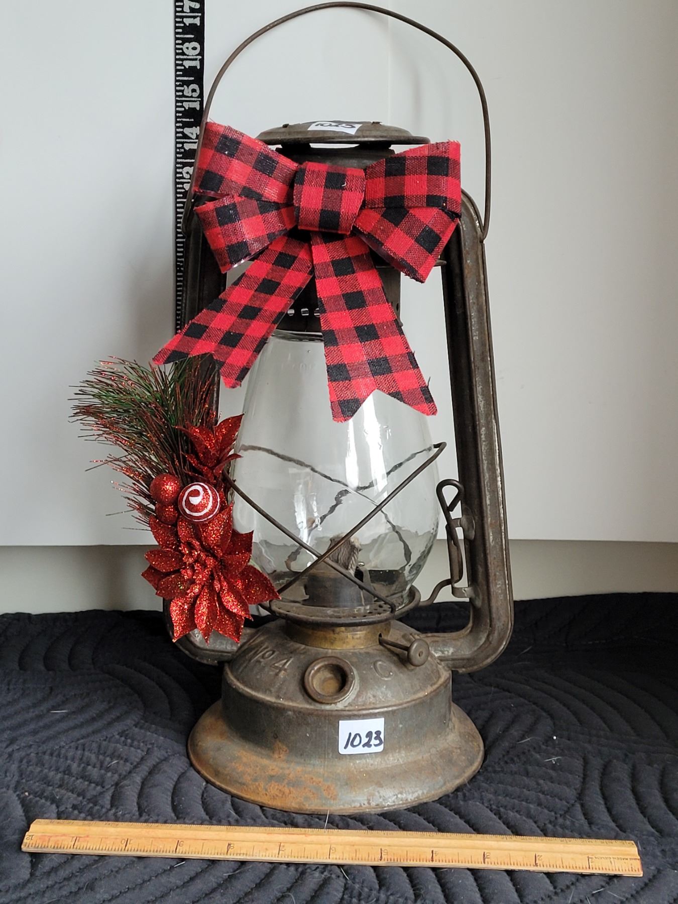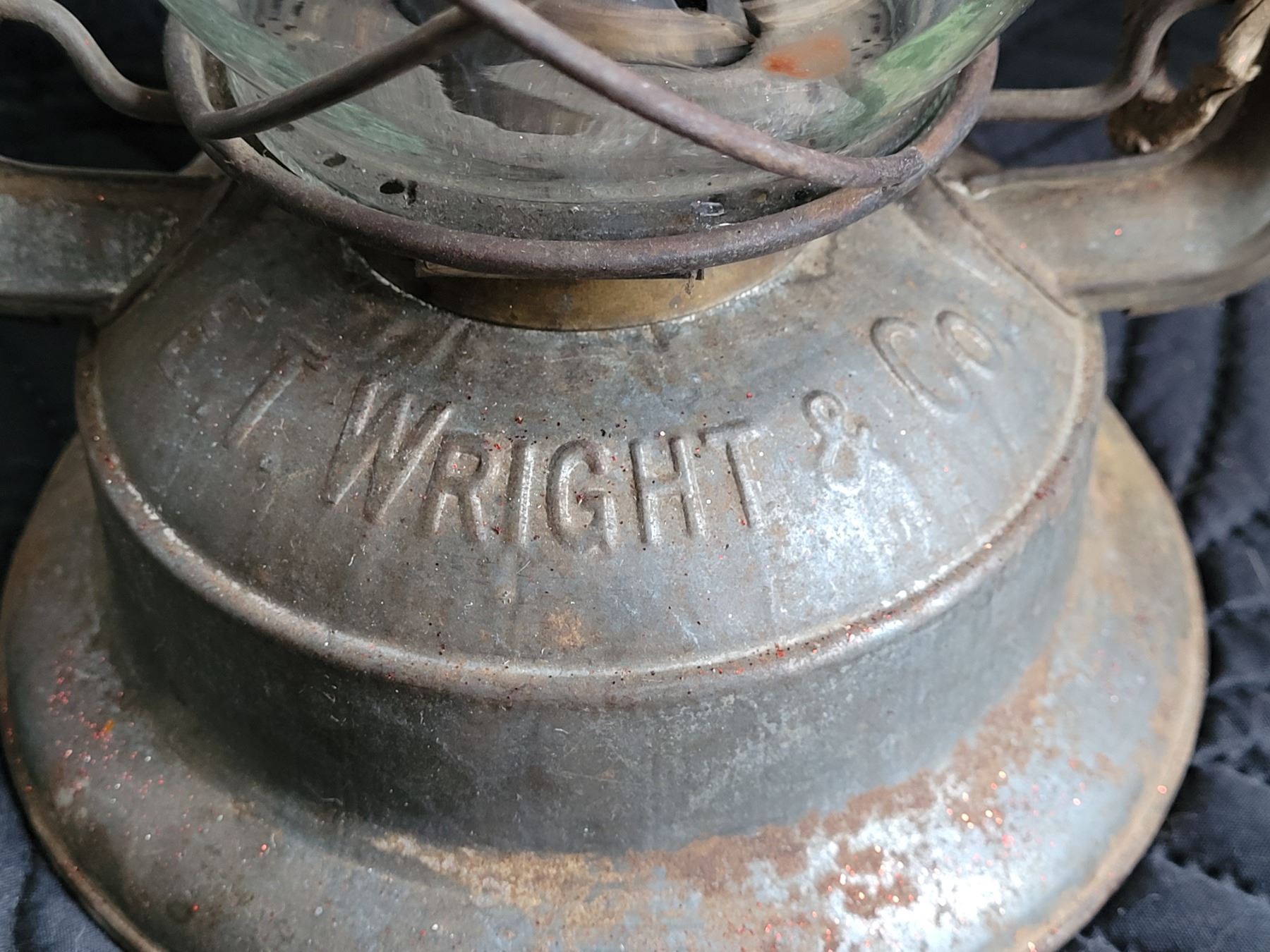 Antique 1912 E.T. Wright & Co. #4 decorated hurricane lamp. Usable.