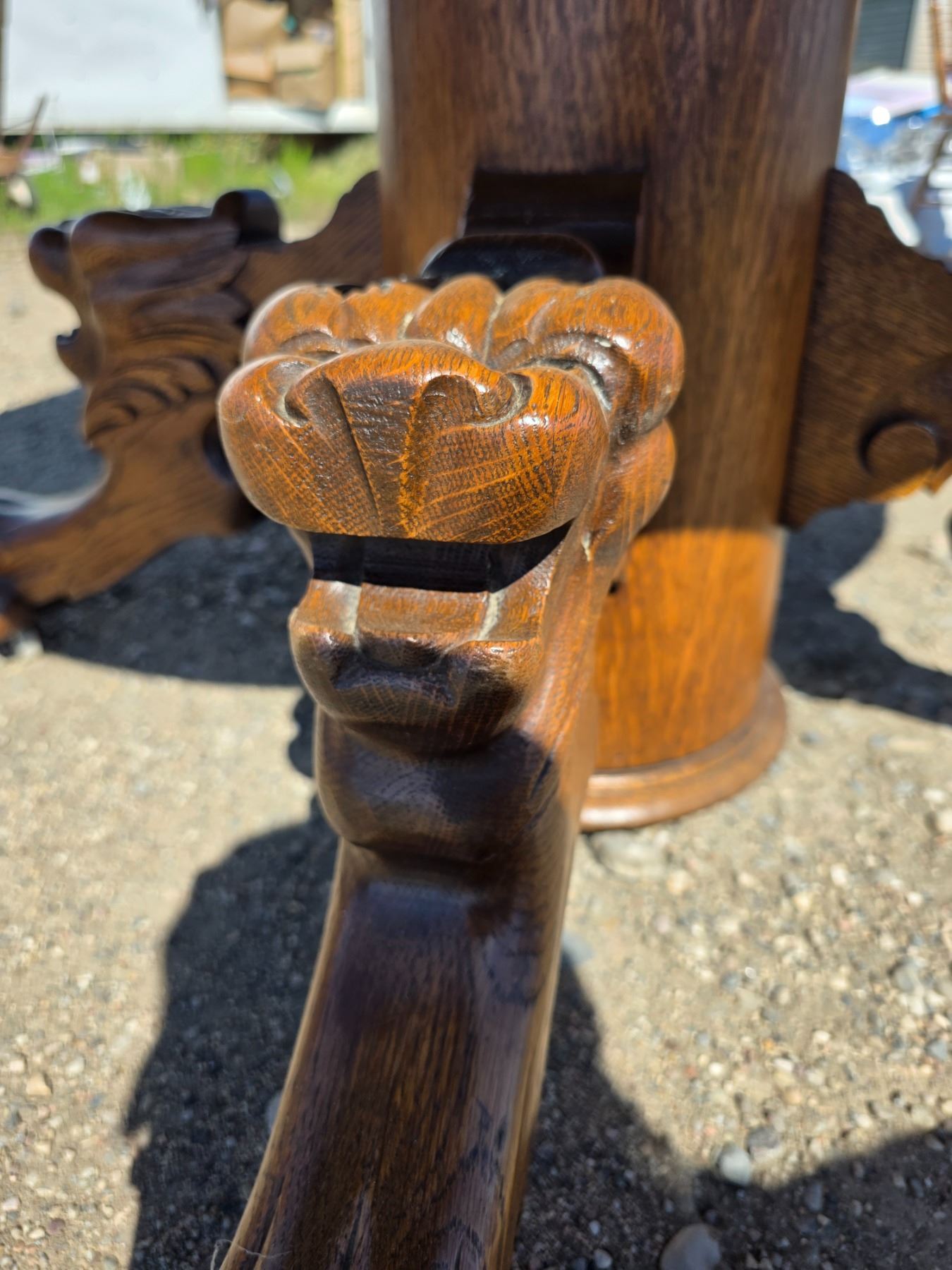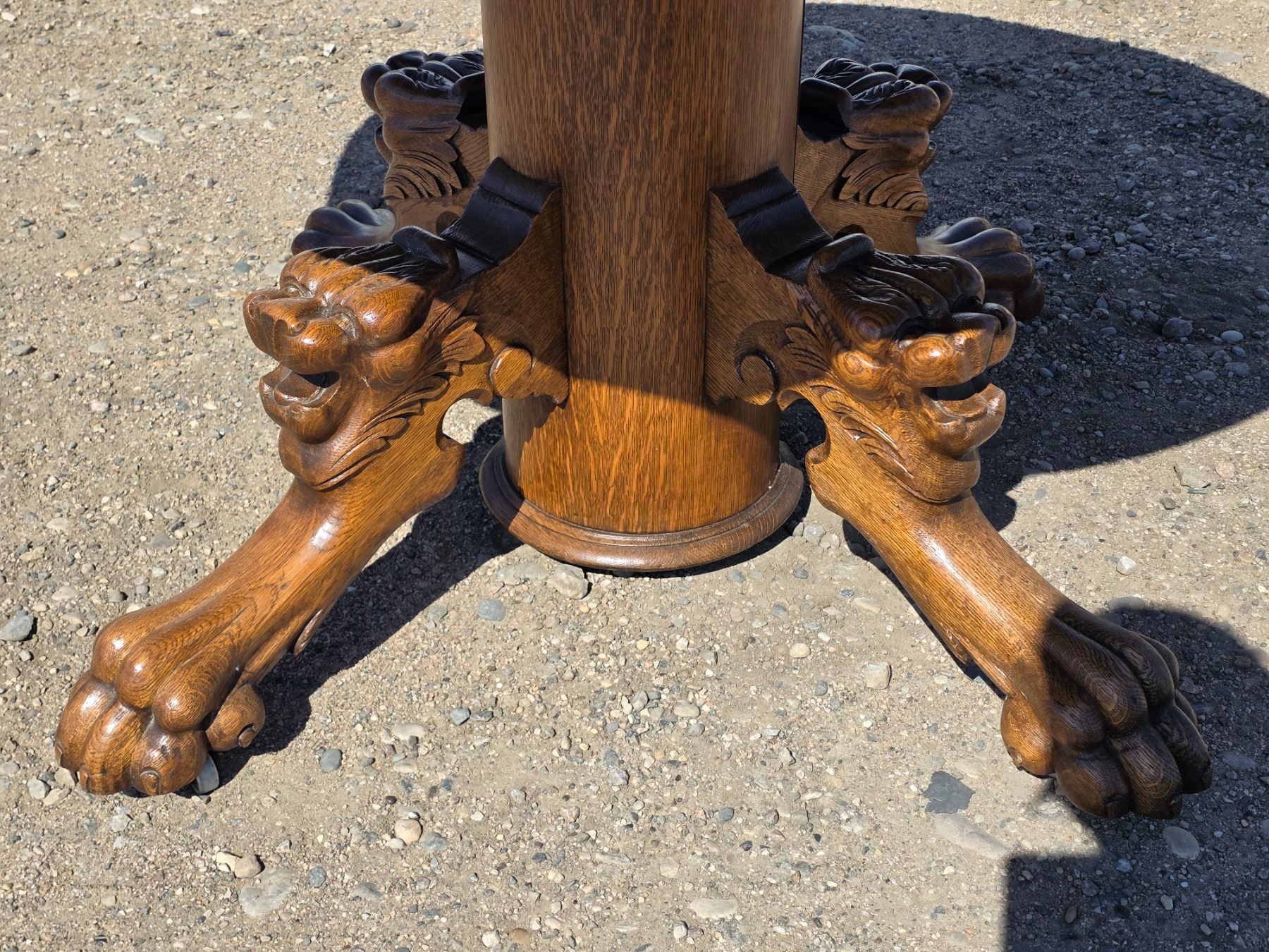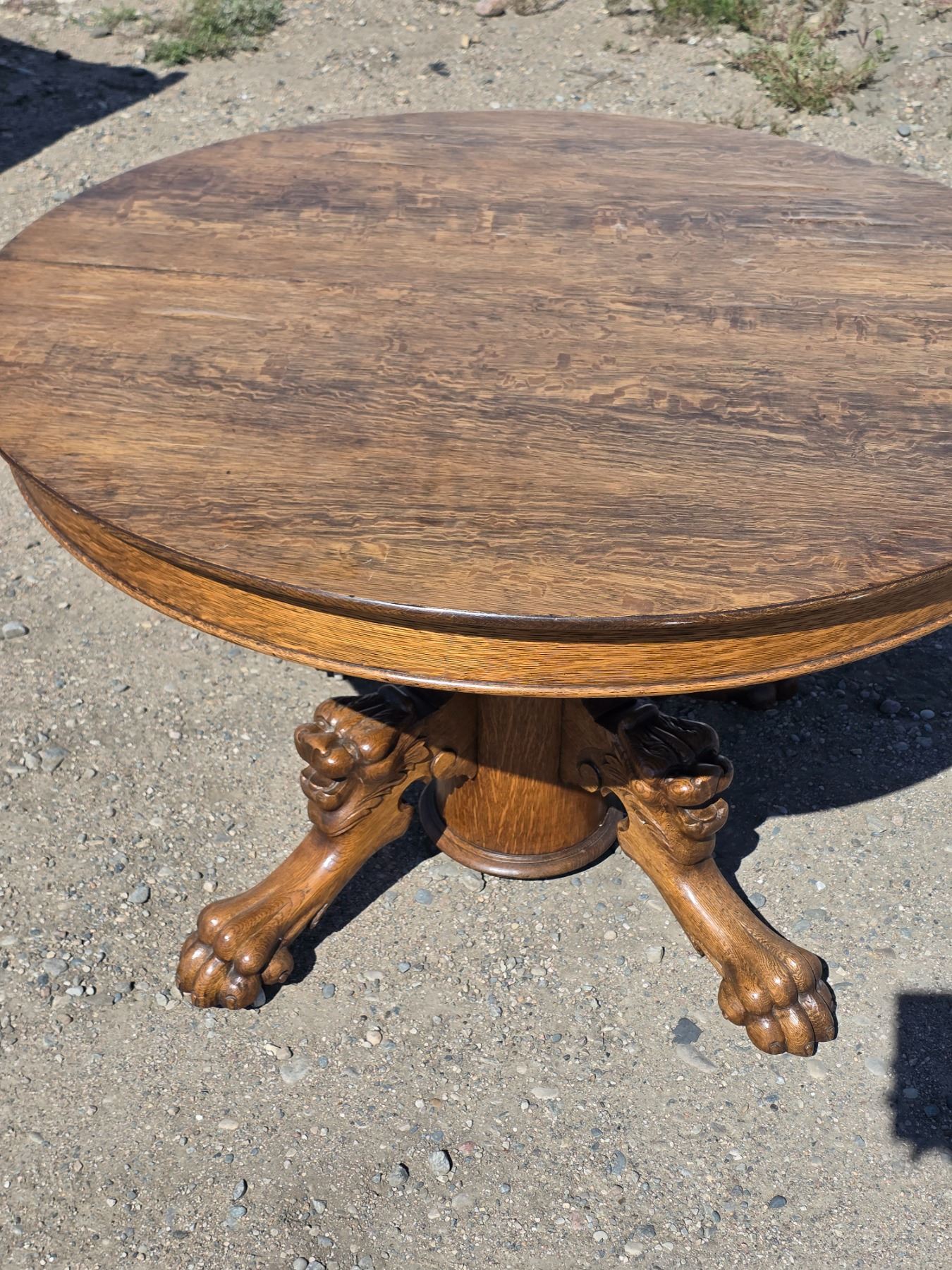 Antique 48"W dinning table lions paw/lions face split pedestal