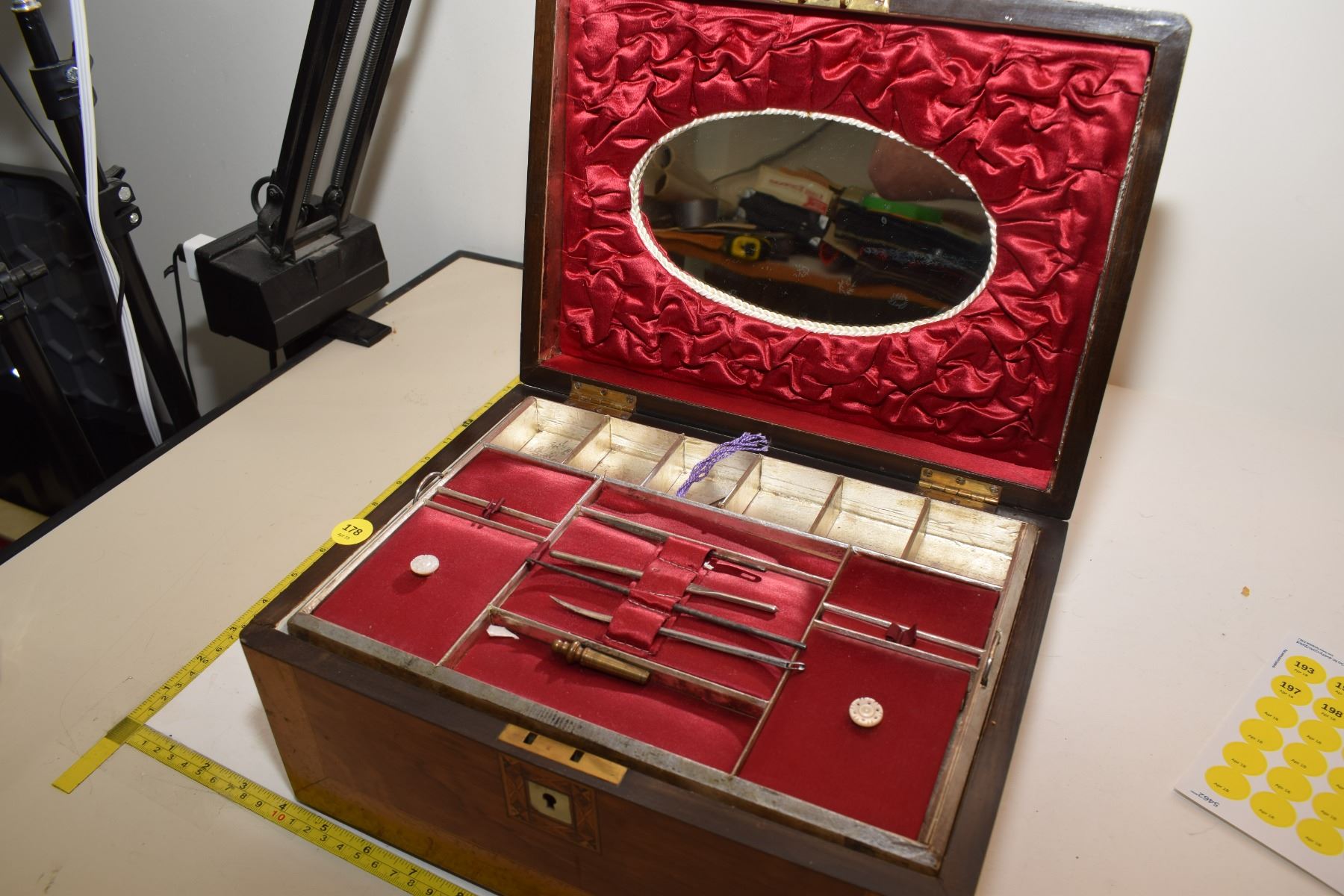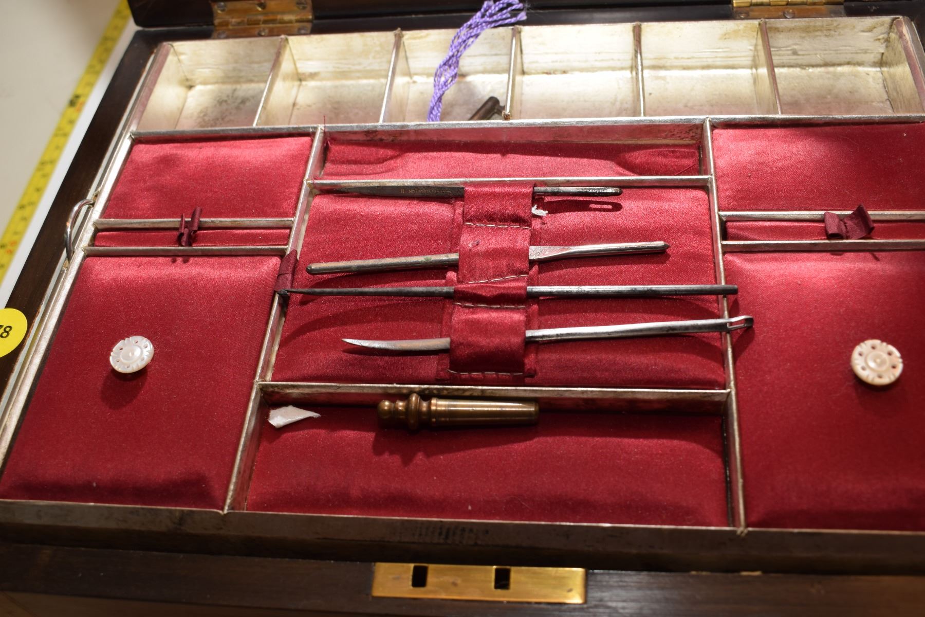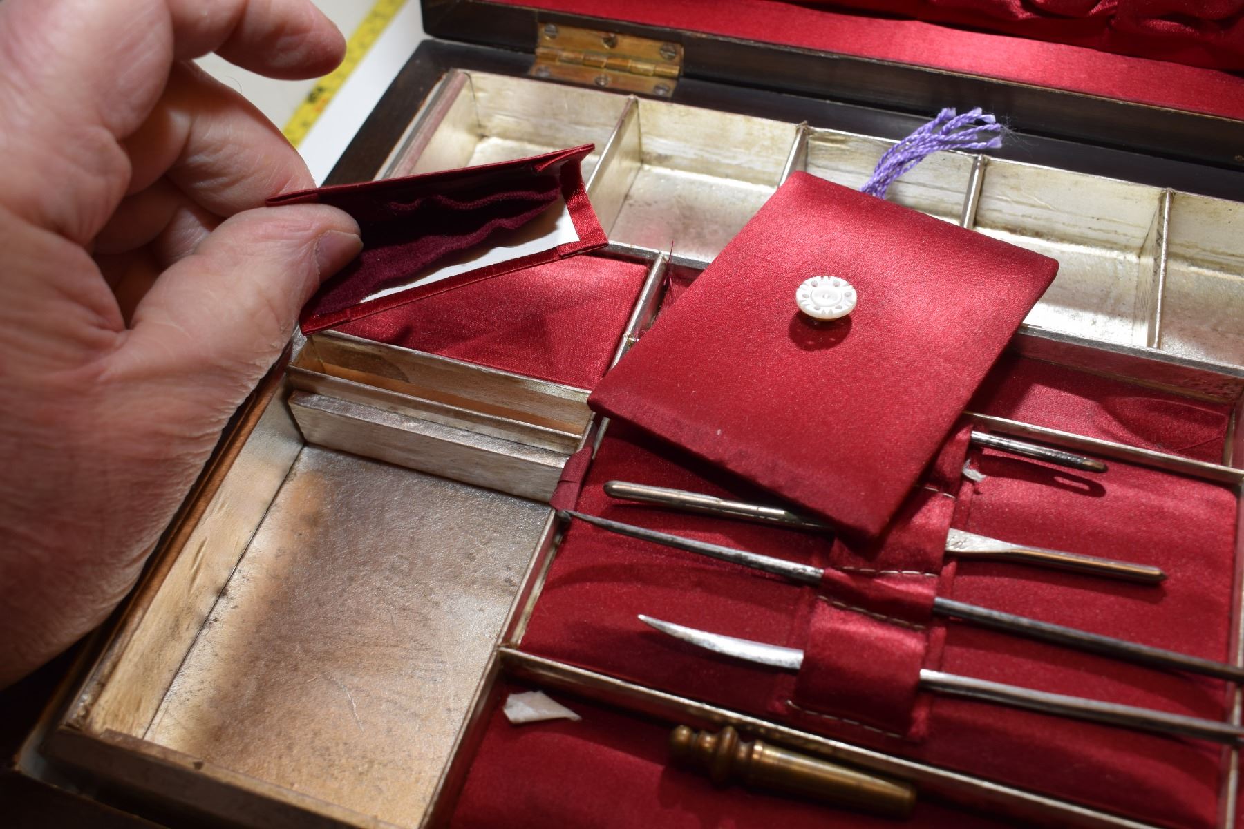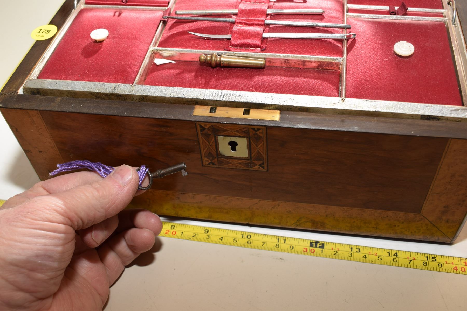Antique Burled Chest – Possibly Surgical Set (Item Stamped “Allcock Redditch II”)
