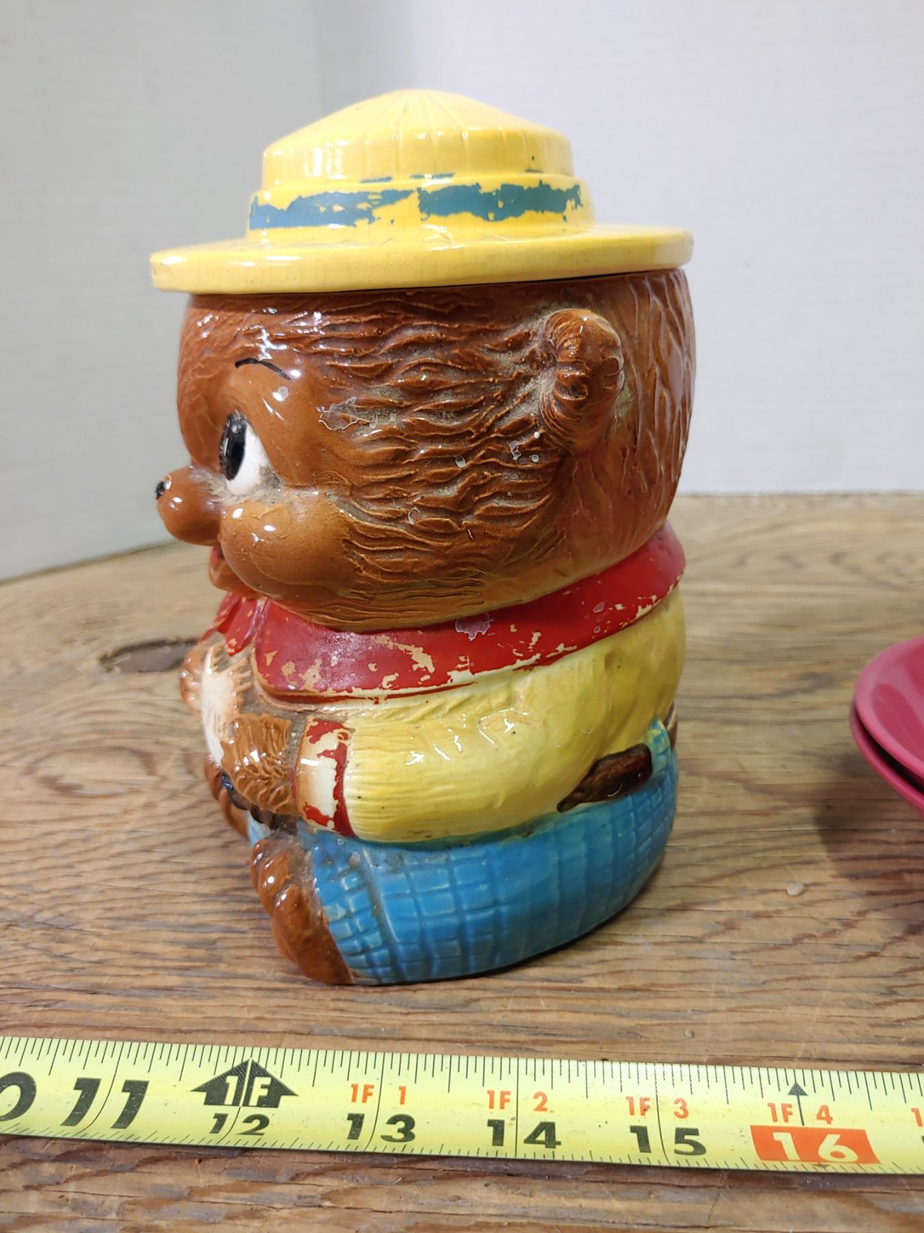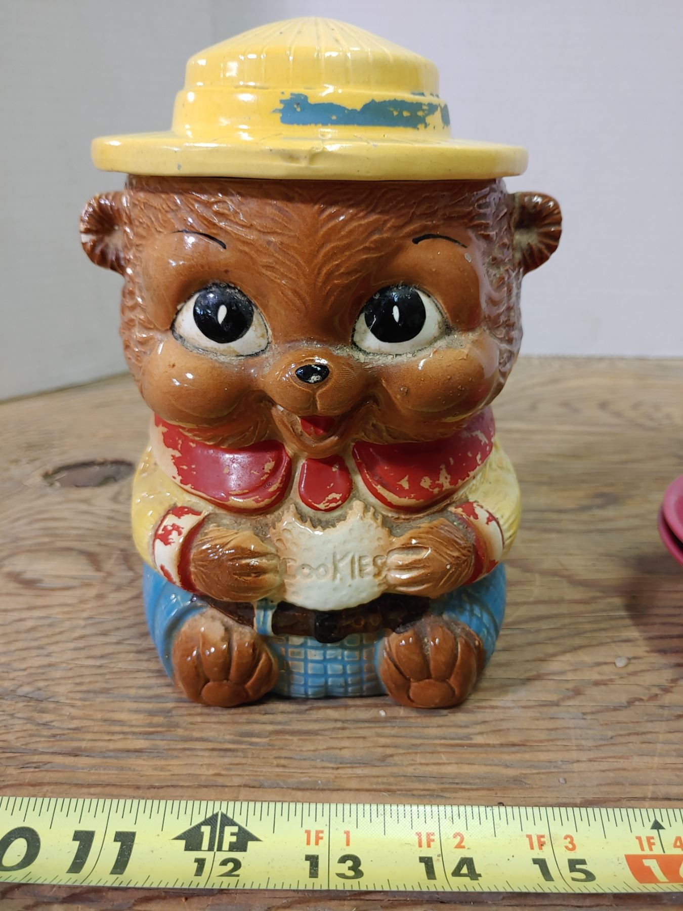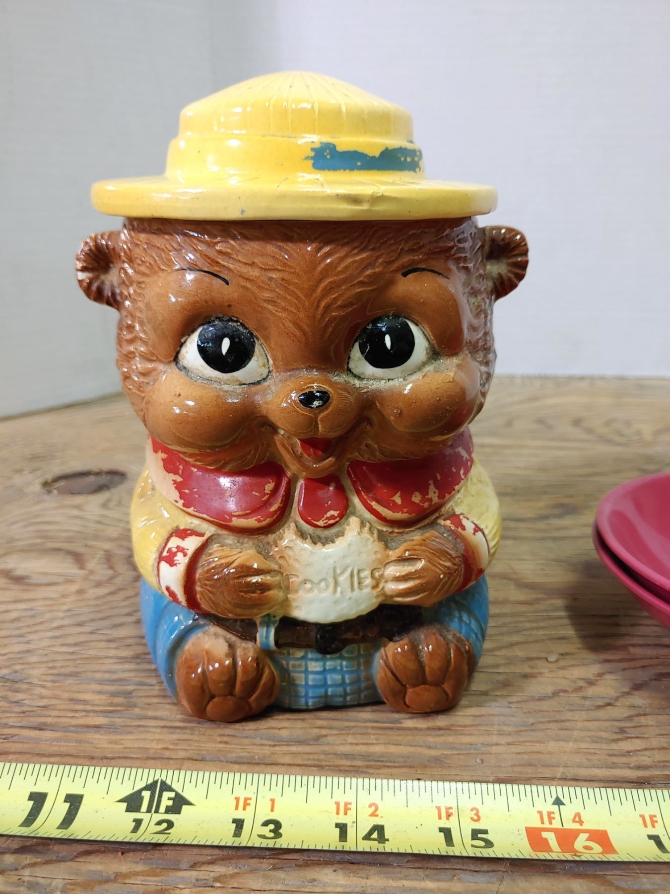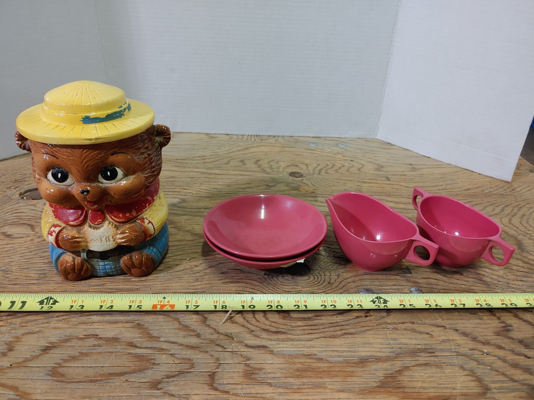 Antique Ceramic Cookie Jar and Measuring Cups / Bowls