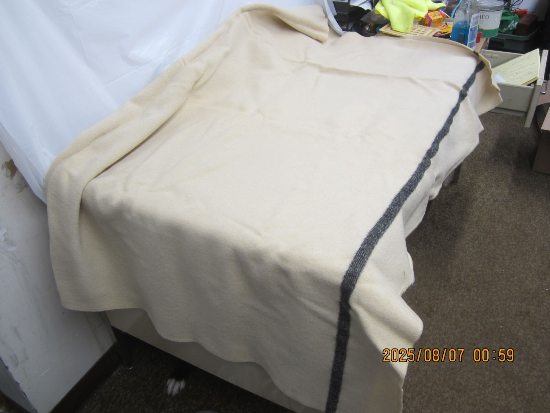 Antique Double Bed White Wool Blanket