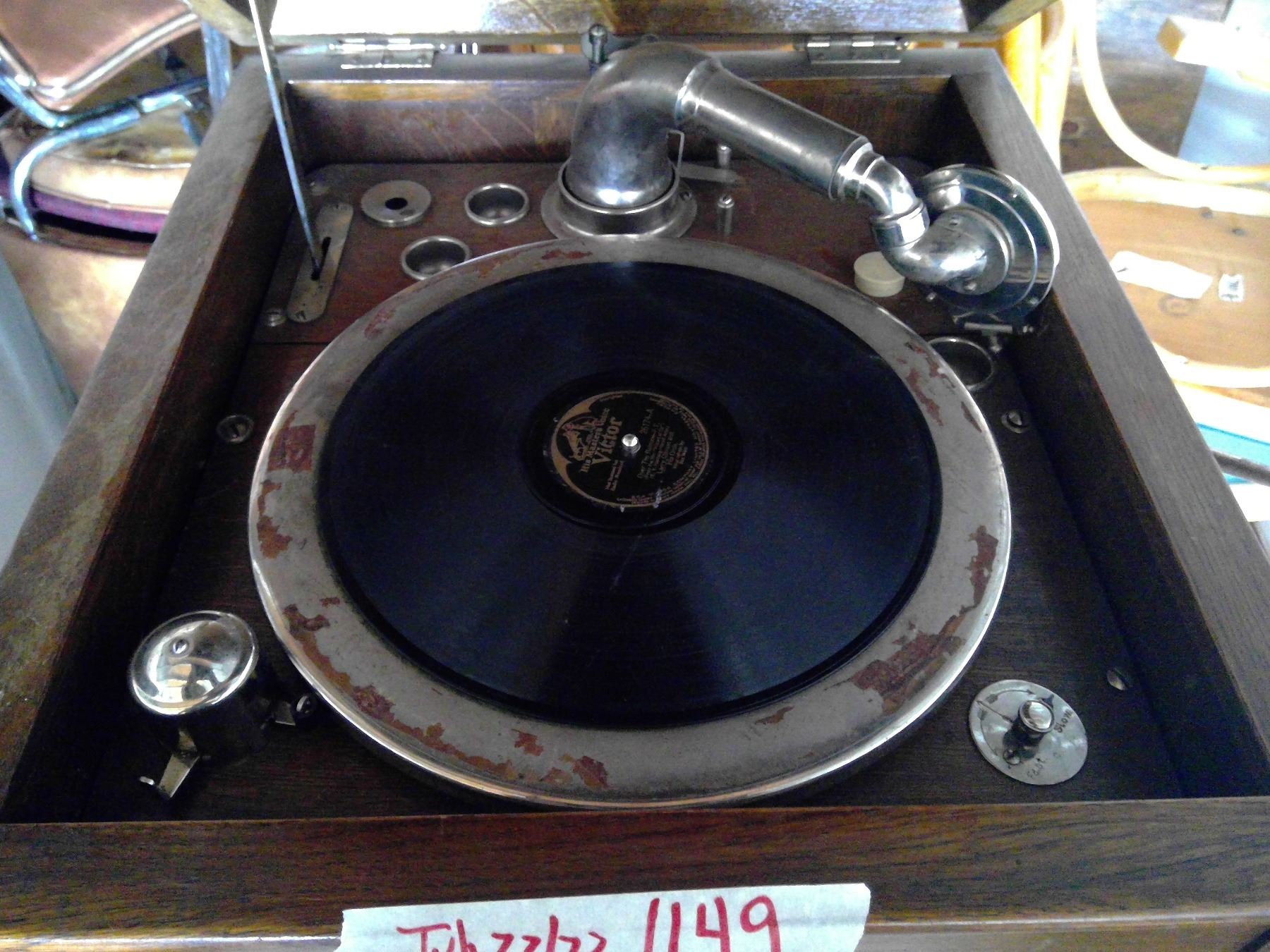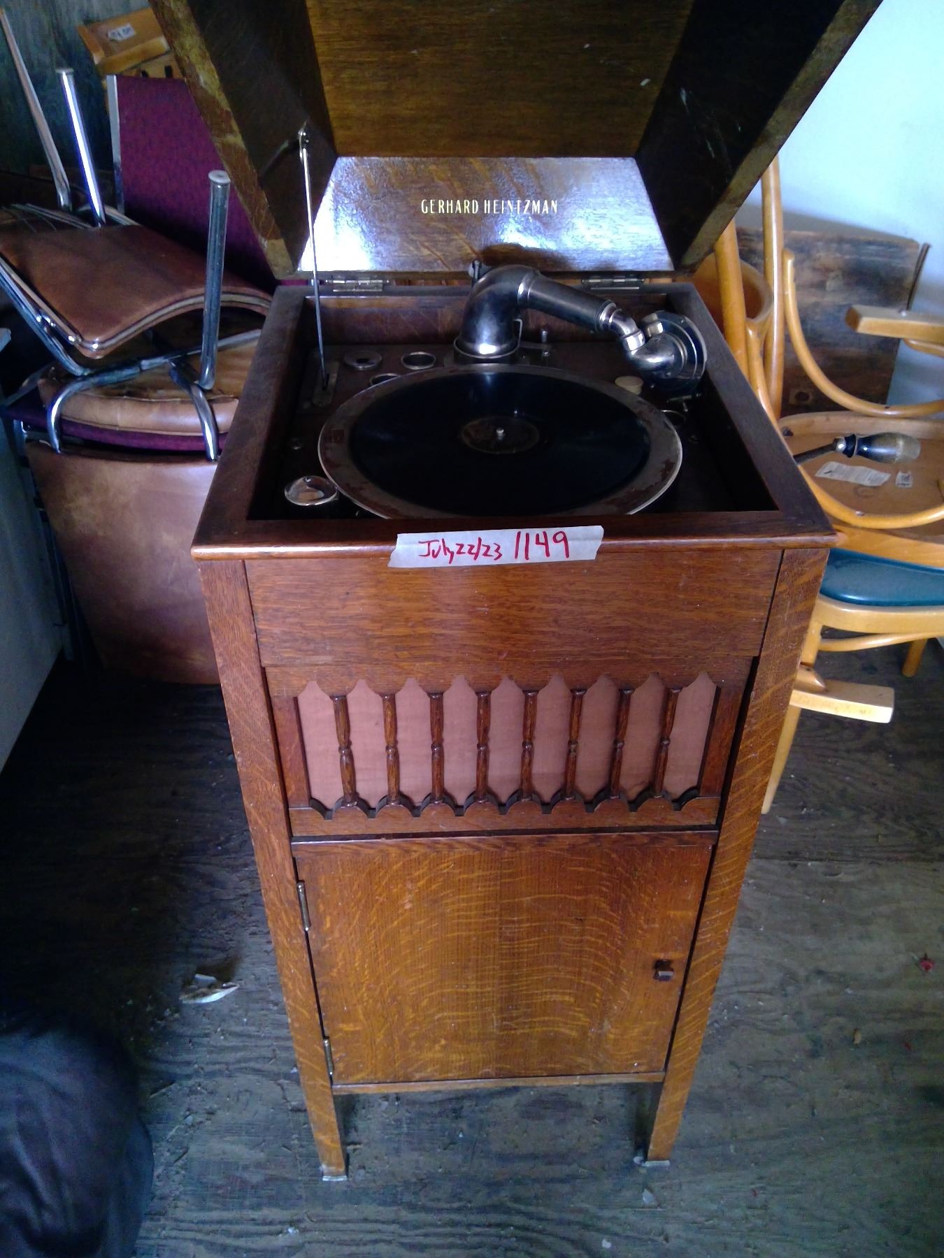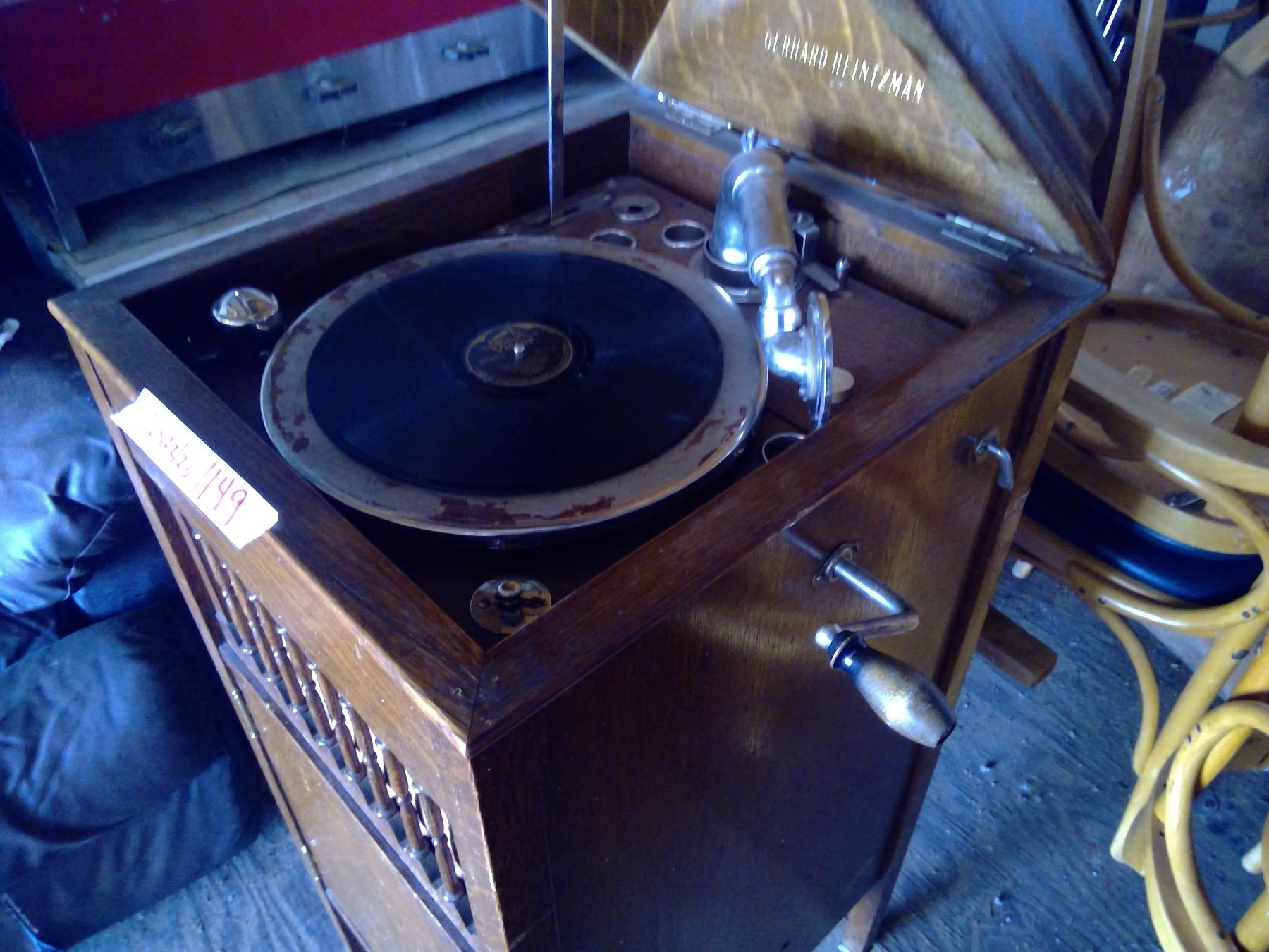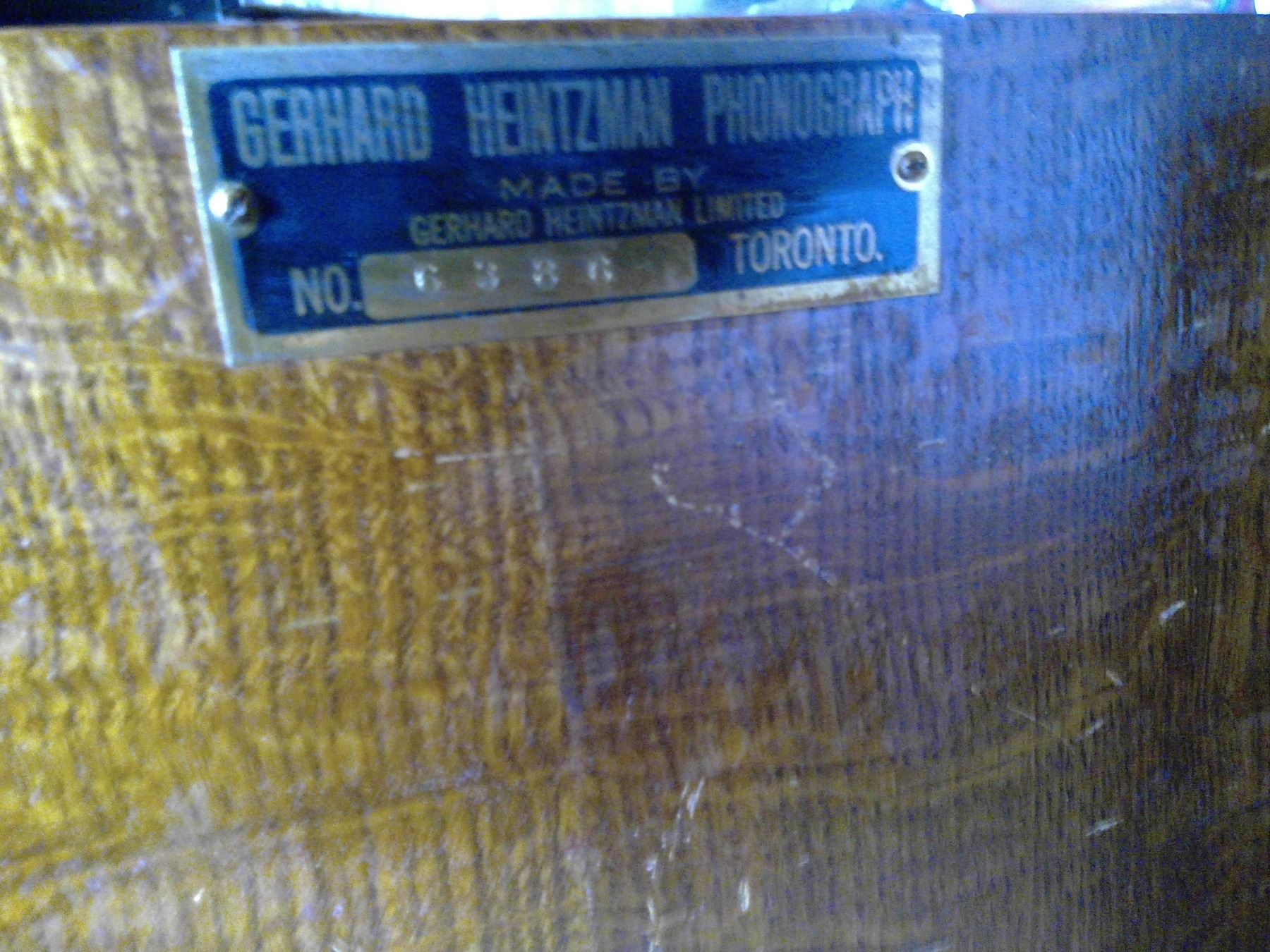Antique Gerhard Heintzman cabinet phograph with records and crank 17X 19 X 42"H
