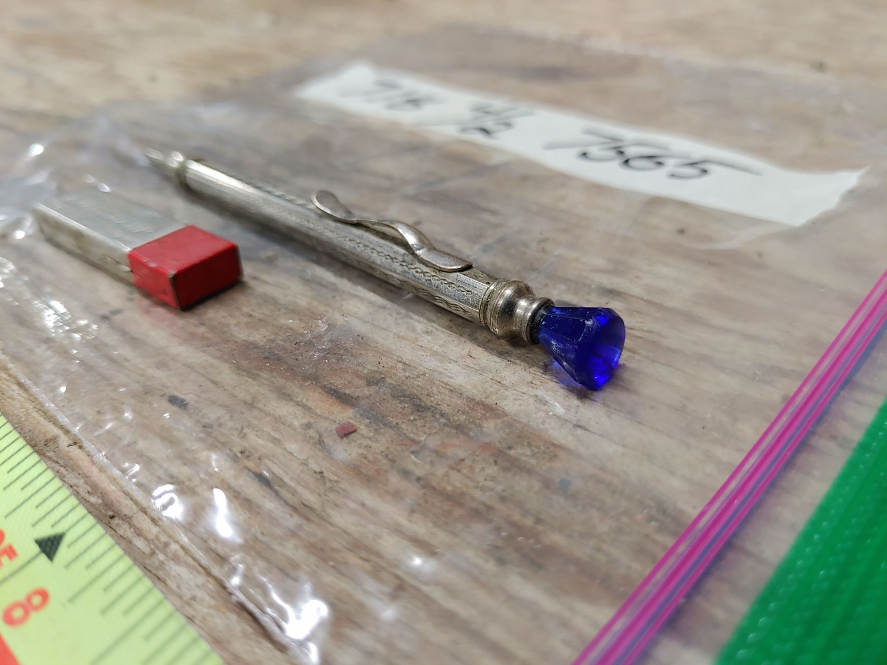 Antique Lead Pencil W/ Blue Glass and Extra Lead