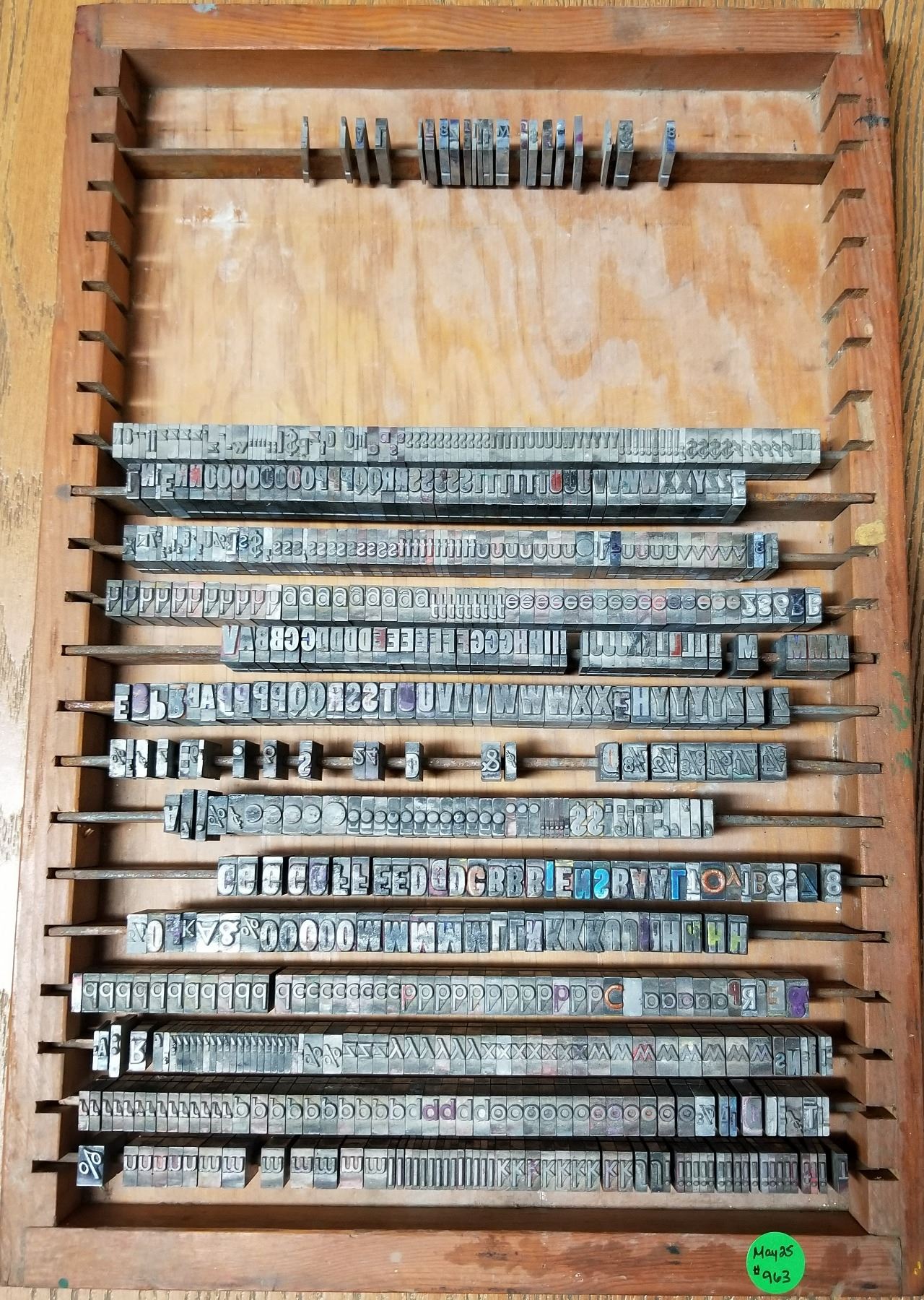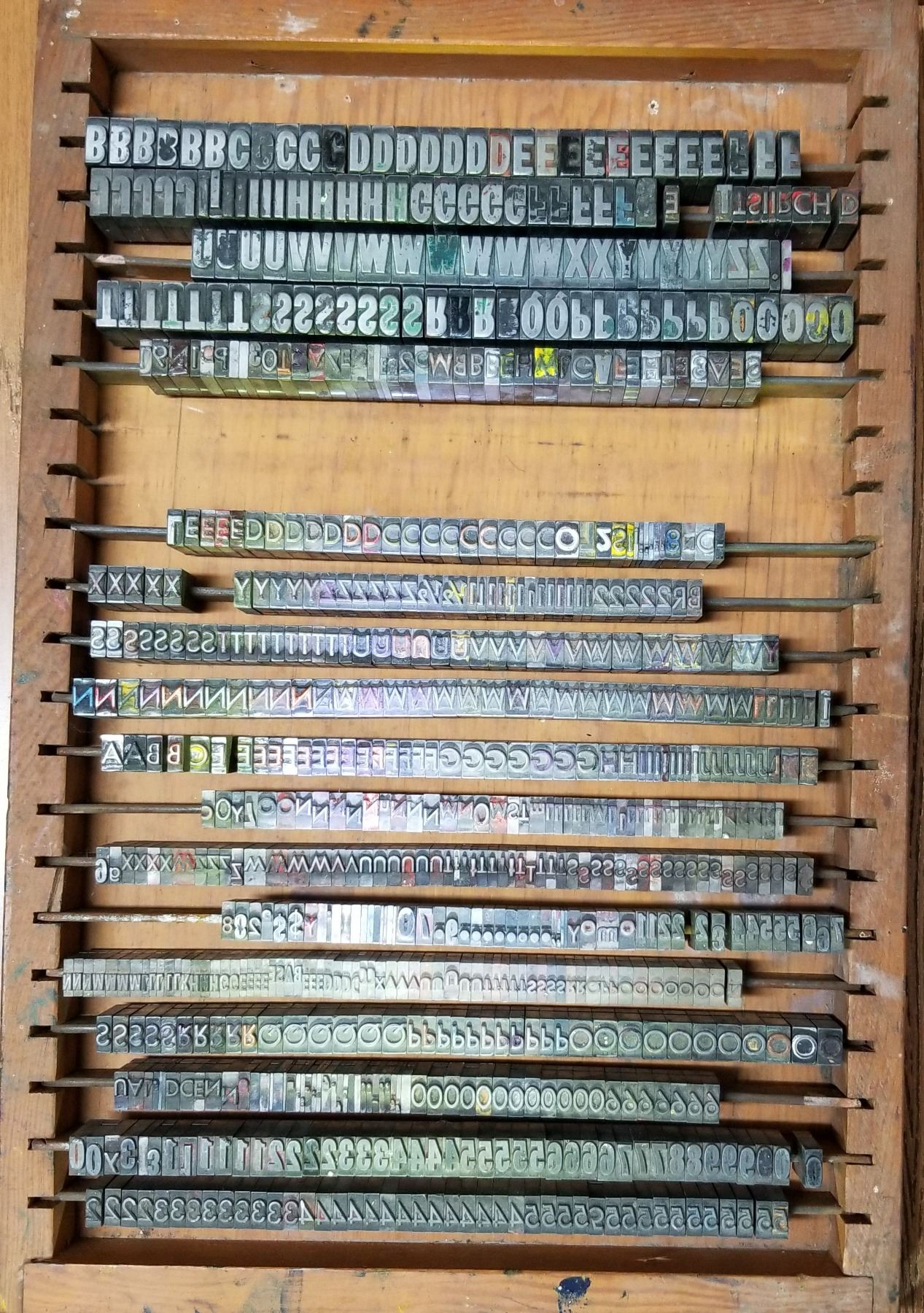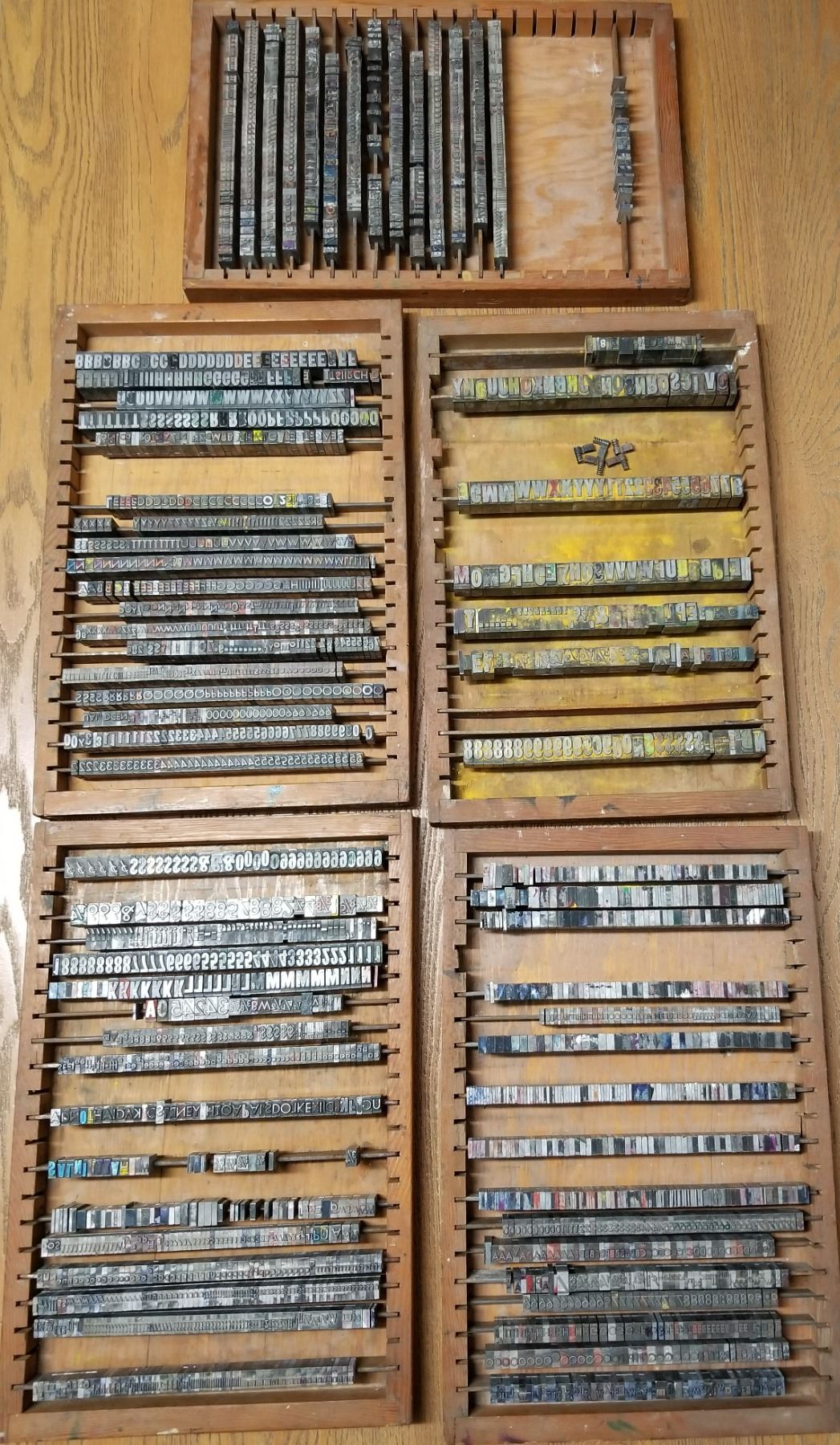 Antique LinoType Letters & Numbers in wooden trays