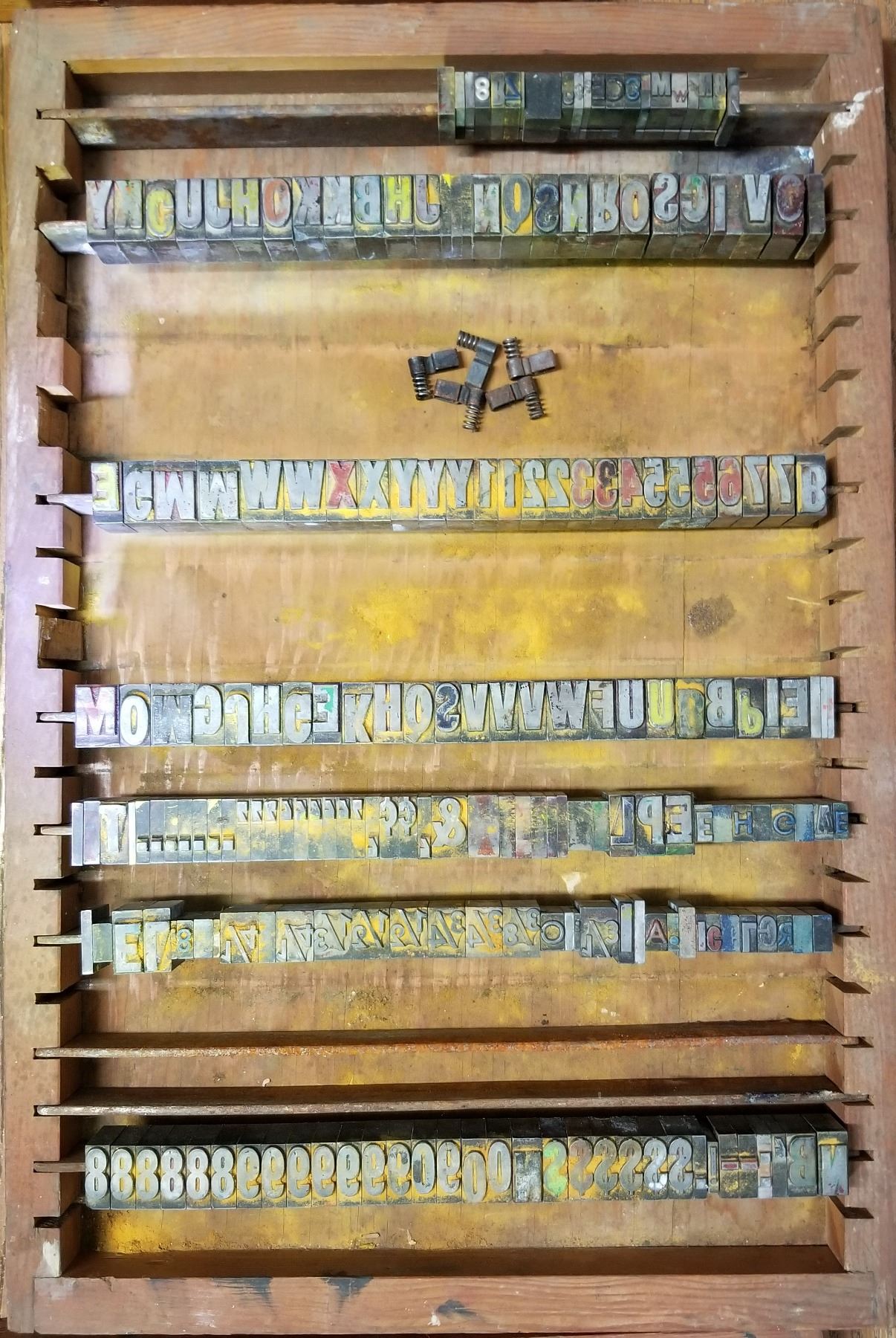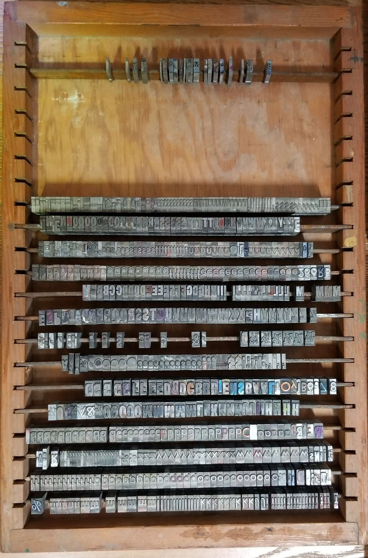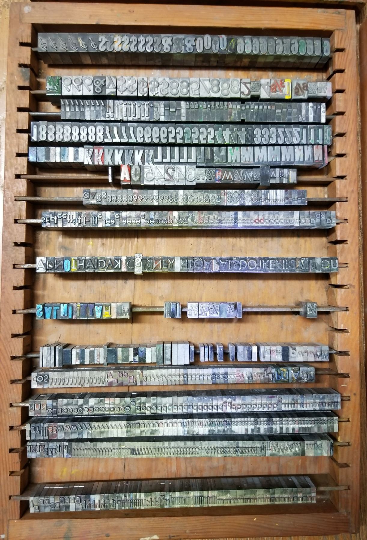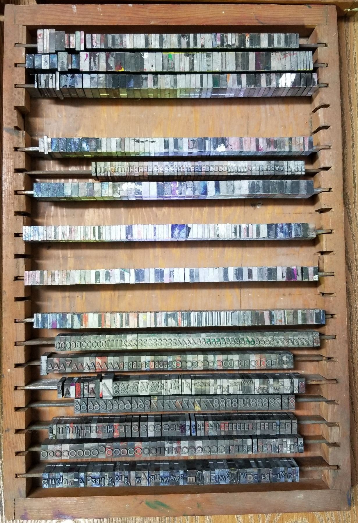 Antique LinoType Letters & Numbers in wooden trays