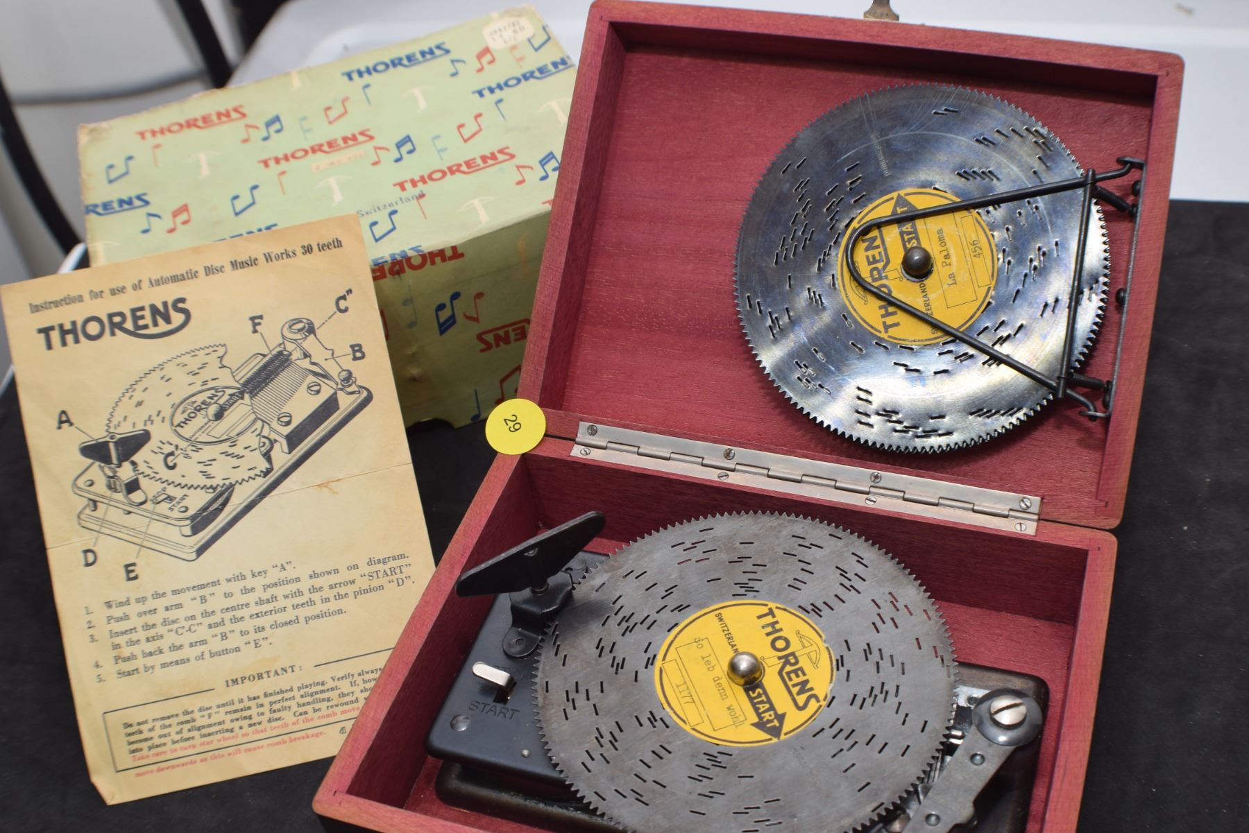 Antique Musical Disc Player c/w 6 different Discs, working/original box