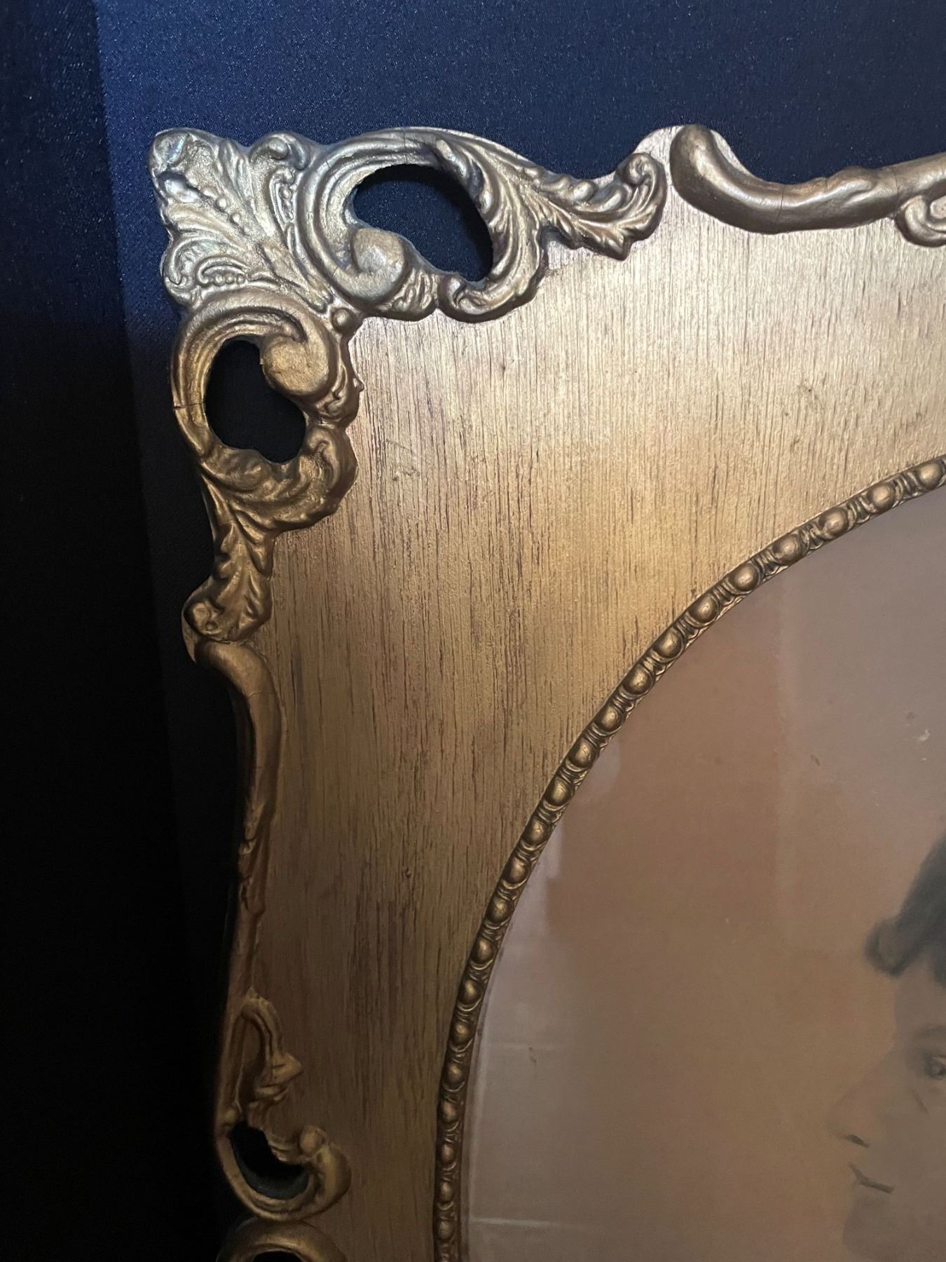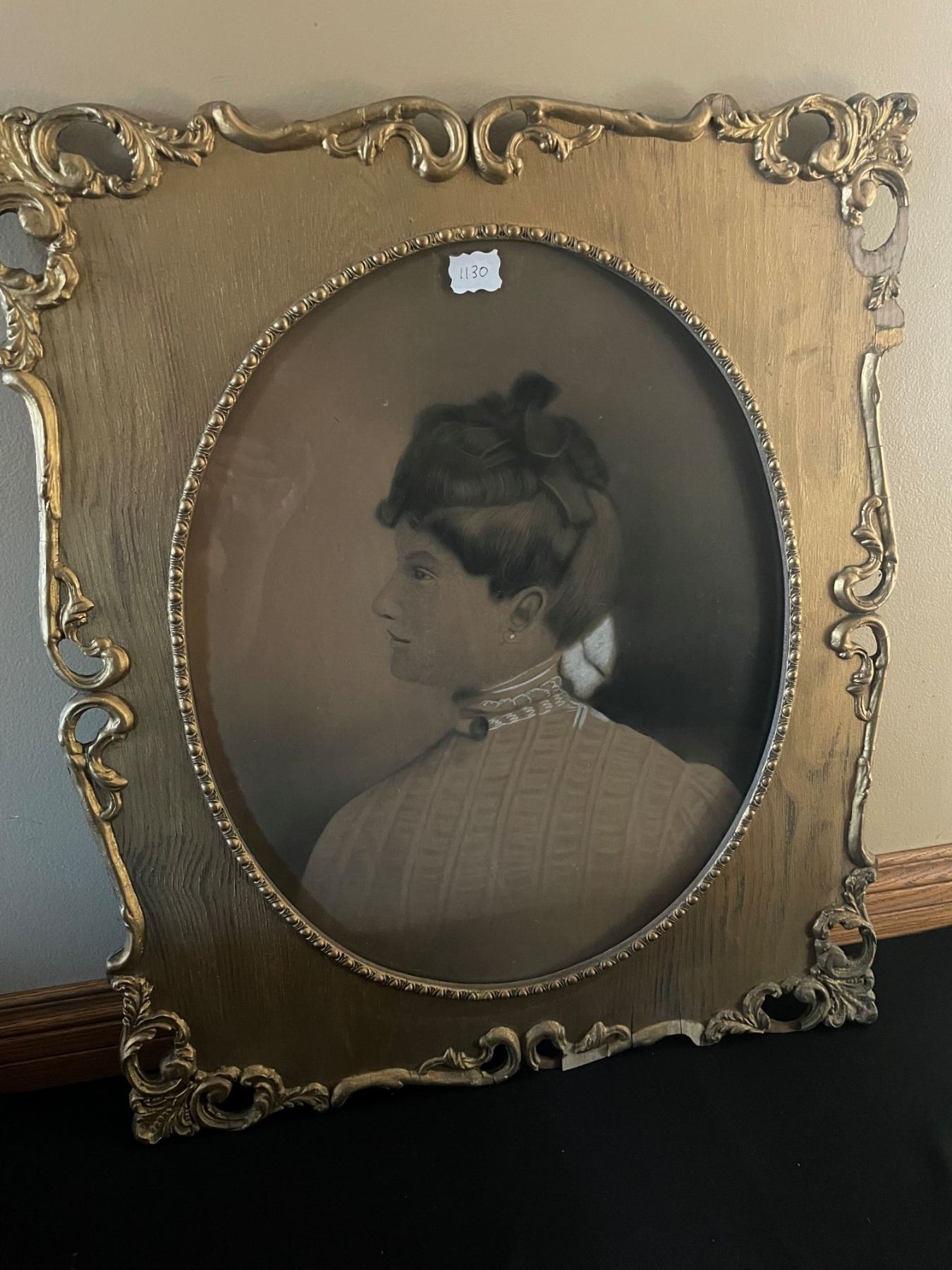 Antique Picture Frame w Photo. 25 1/4" high x 21 1/2" wide.