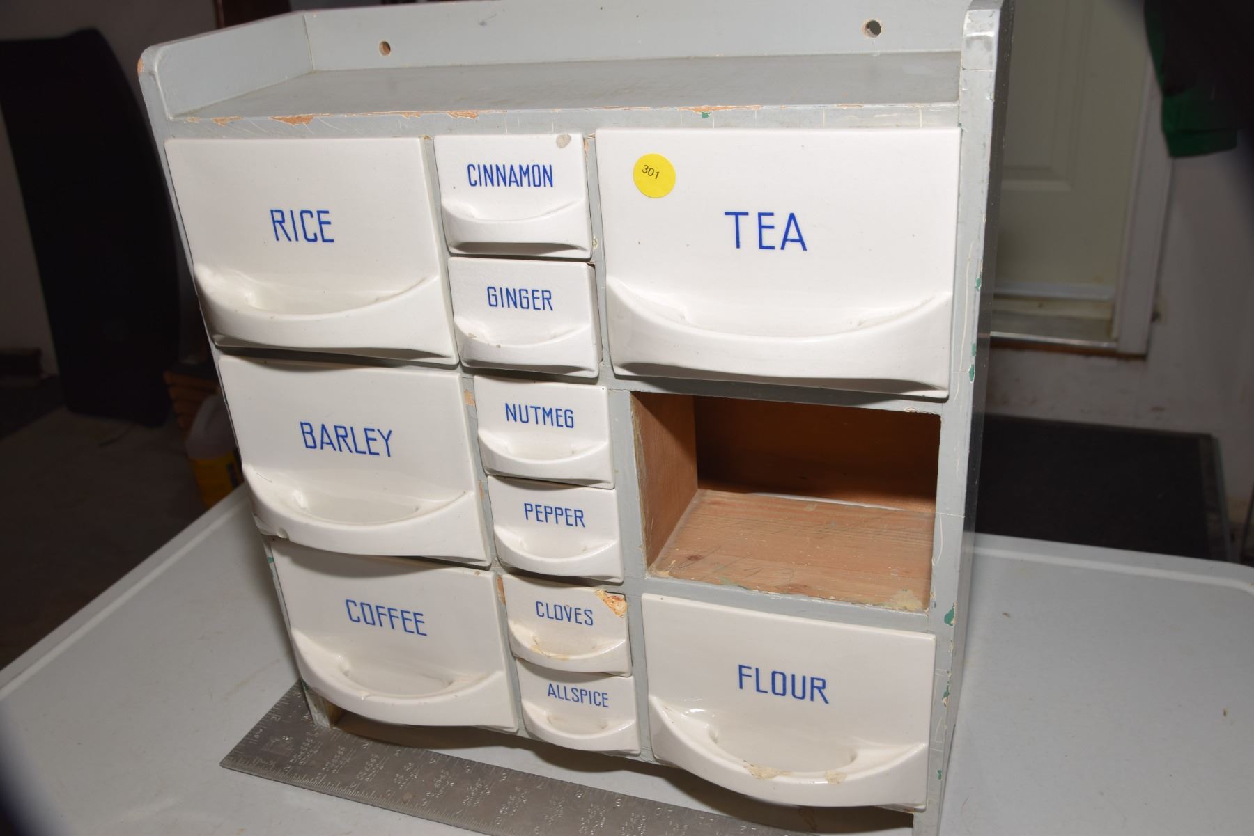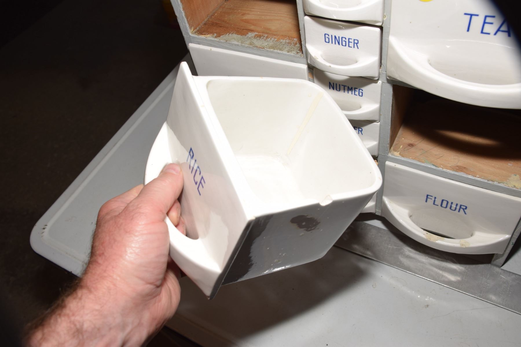 Antique Pottery & Wooden Mini Pantry - Missing Sugar