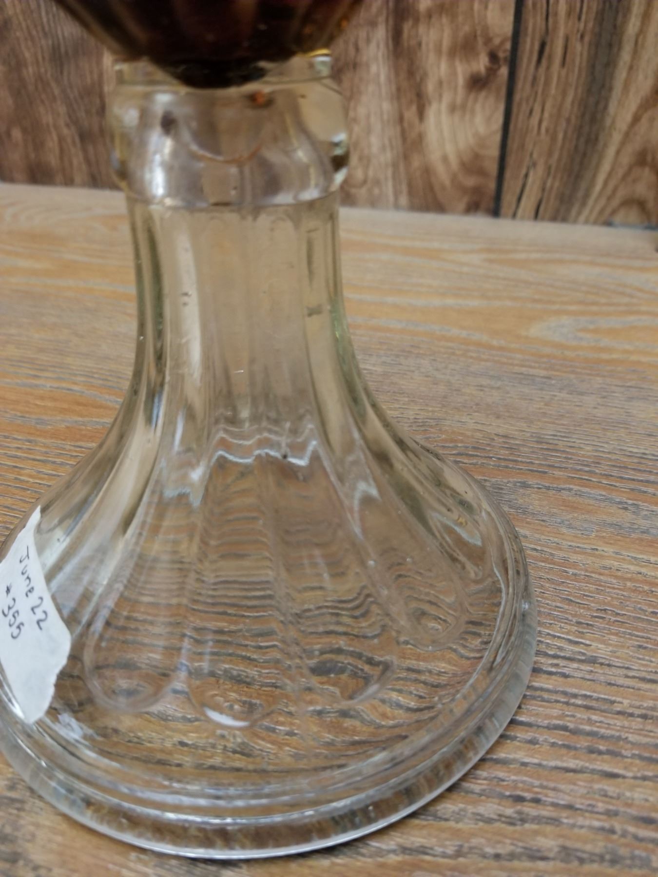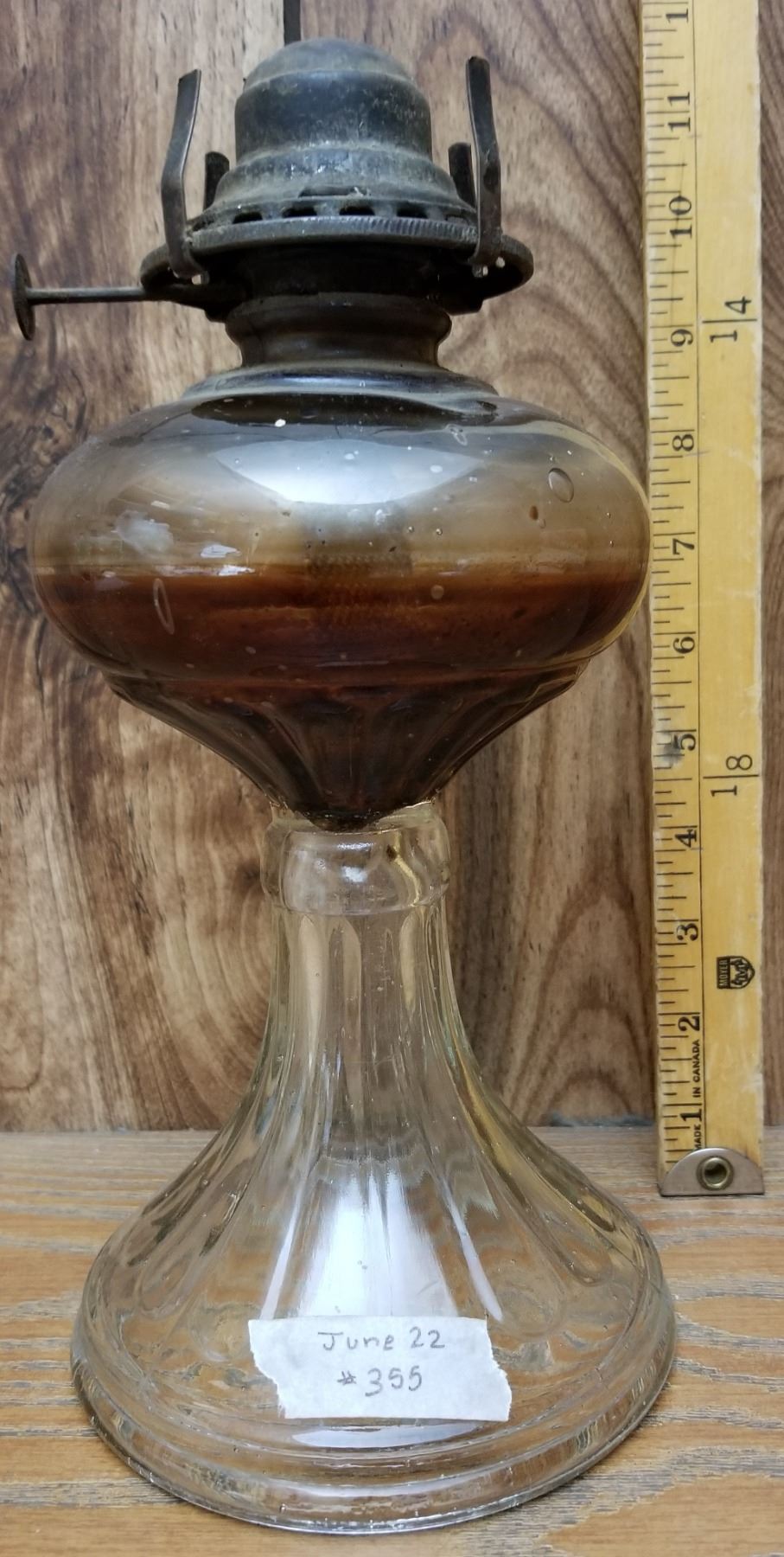 Antique Ribbed Pattern Glass Kerosene oil lamp - Queen Mary burner