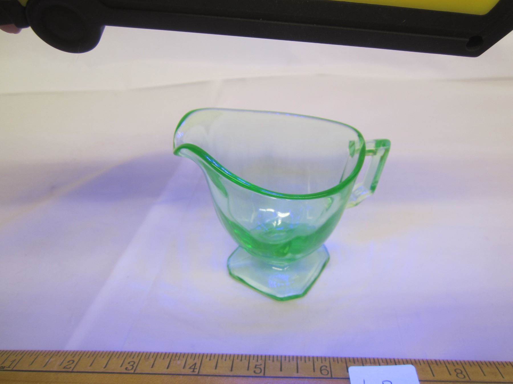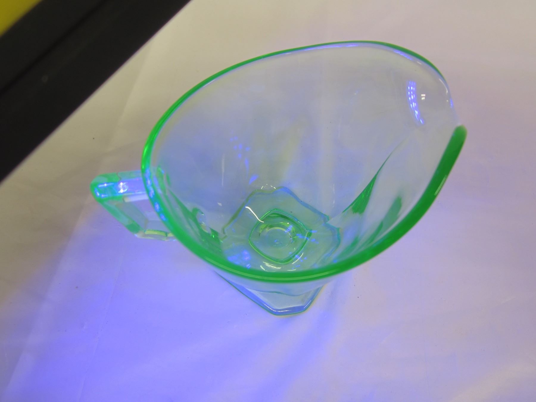 Antique Uranium Glass Mini Pitcher Glows Green