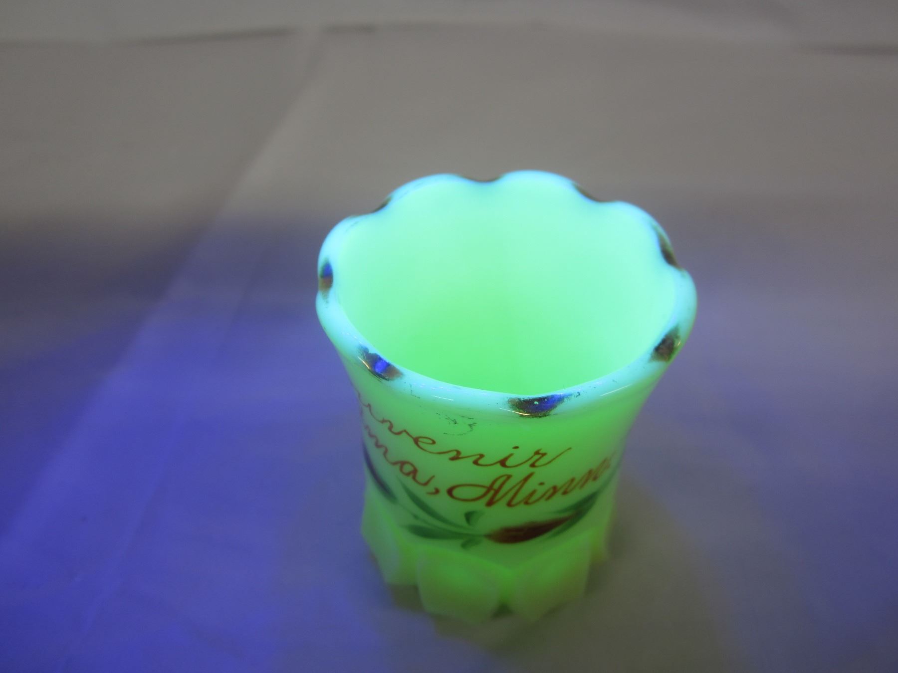 Antique Uranium Glass Toothpick Holder Souvenir Item