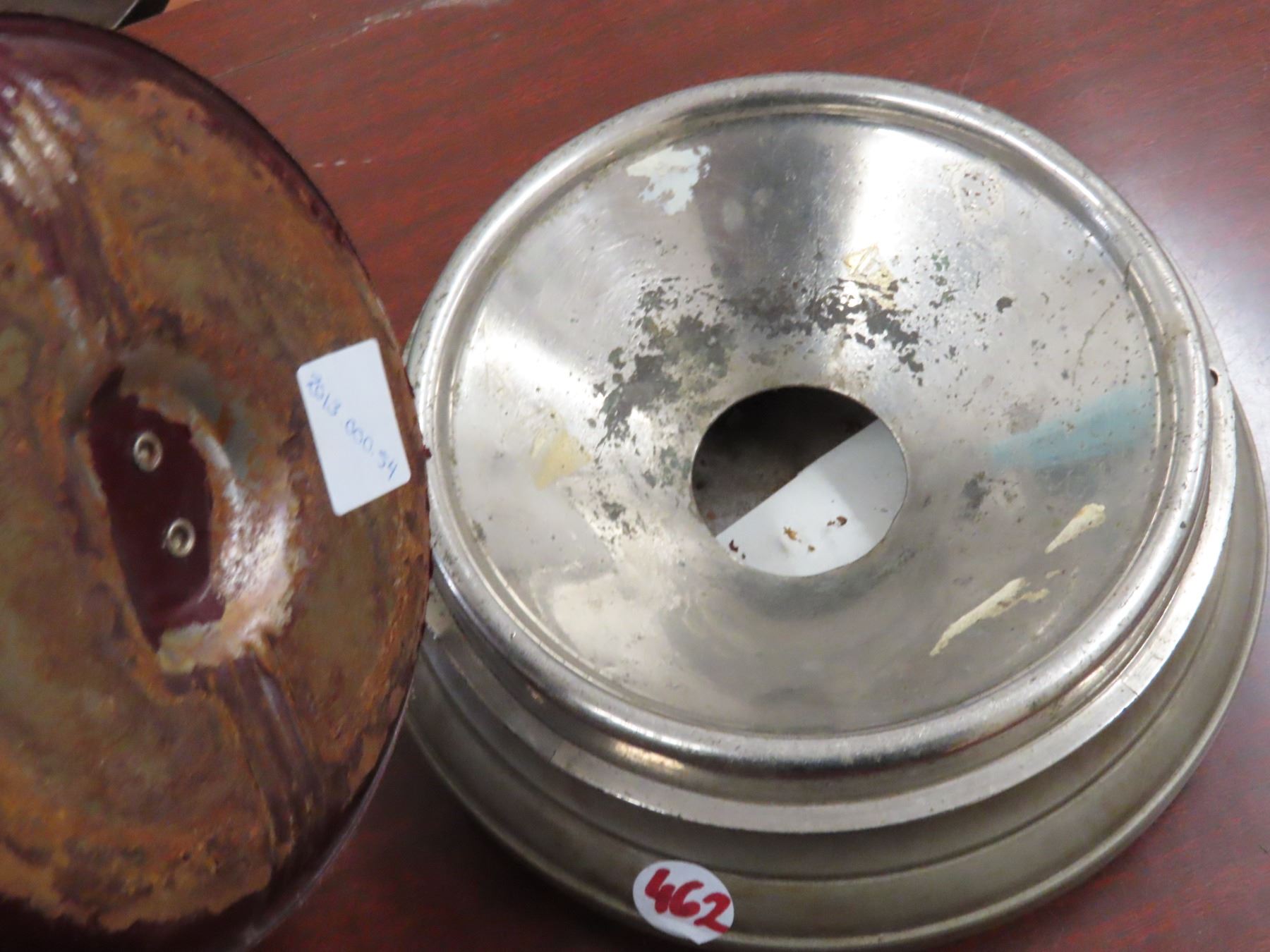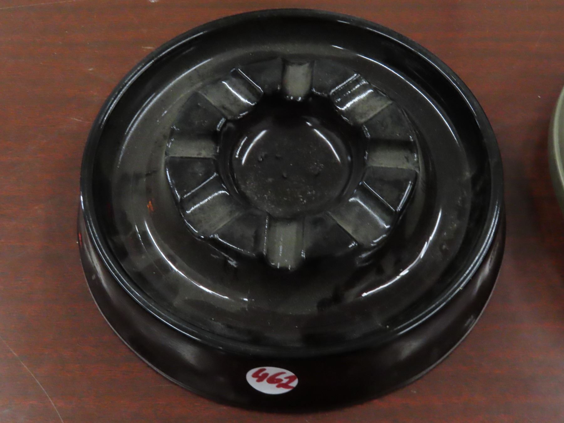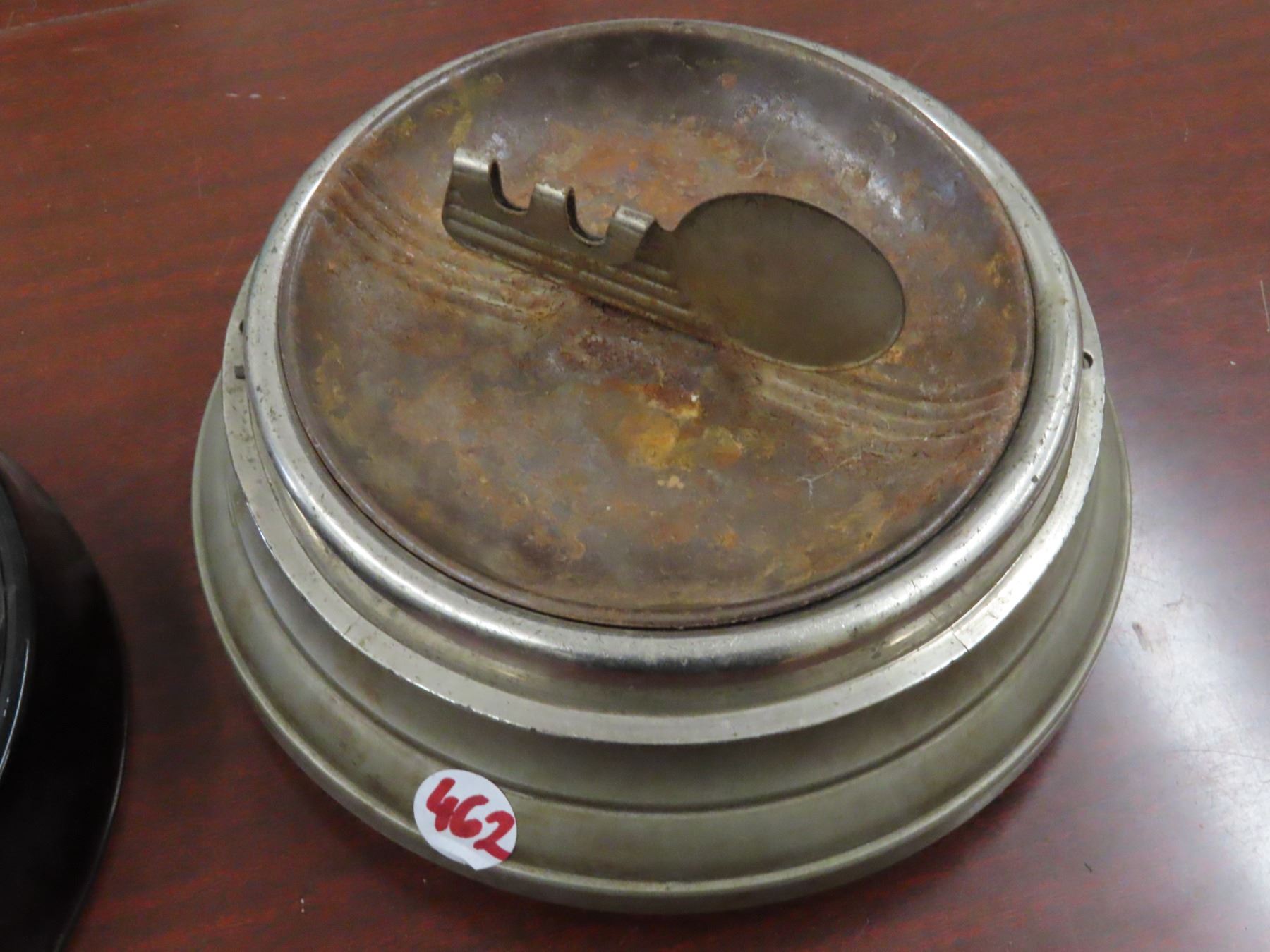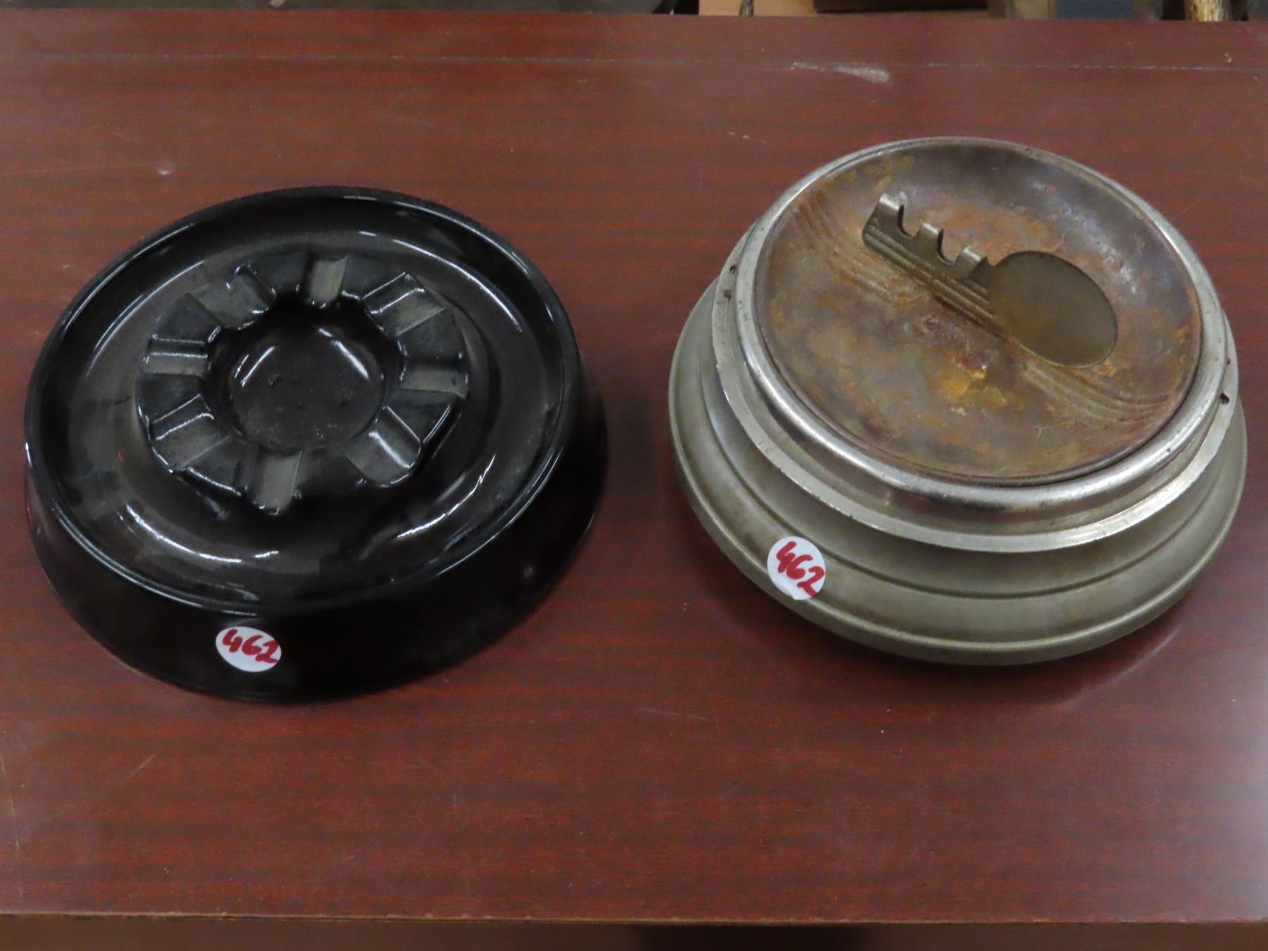 Antique ash trays with Shellbrook advertising (1 glass, 1 metal)