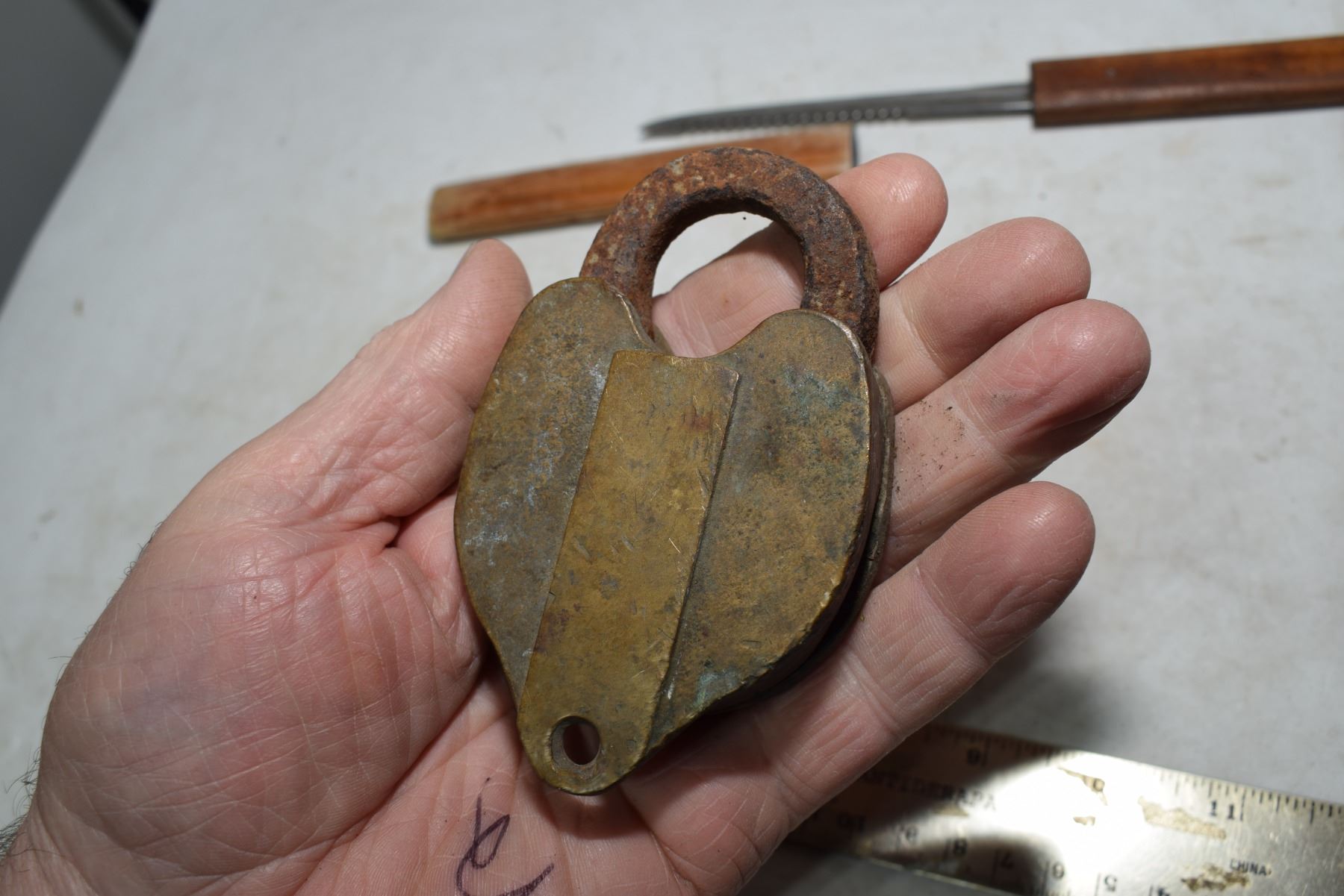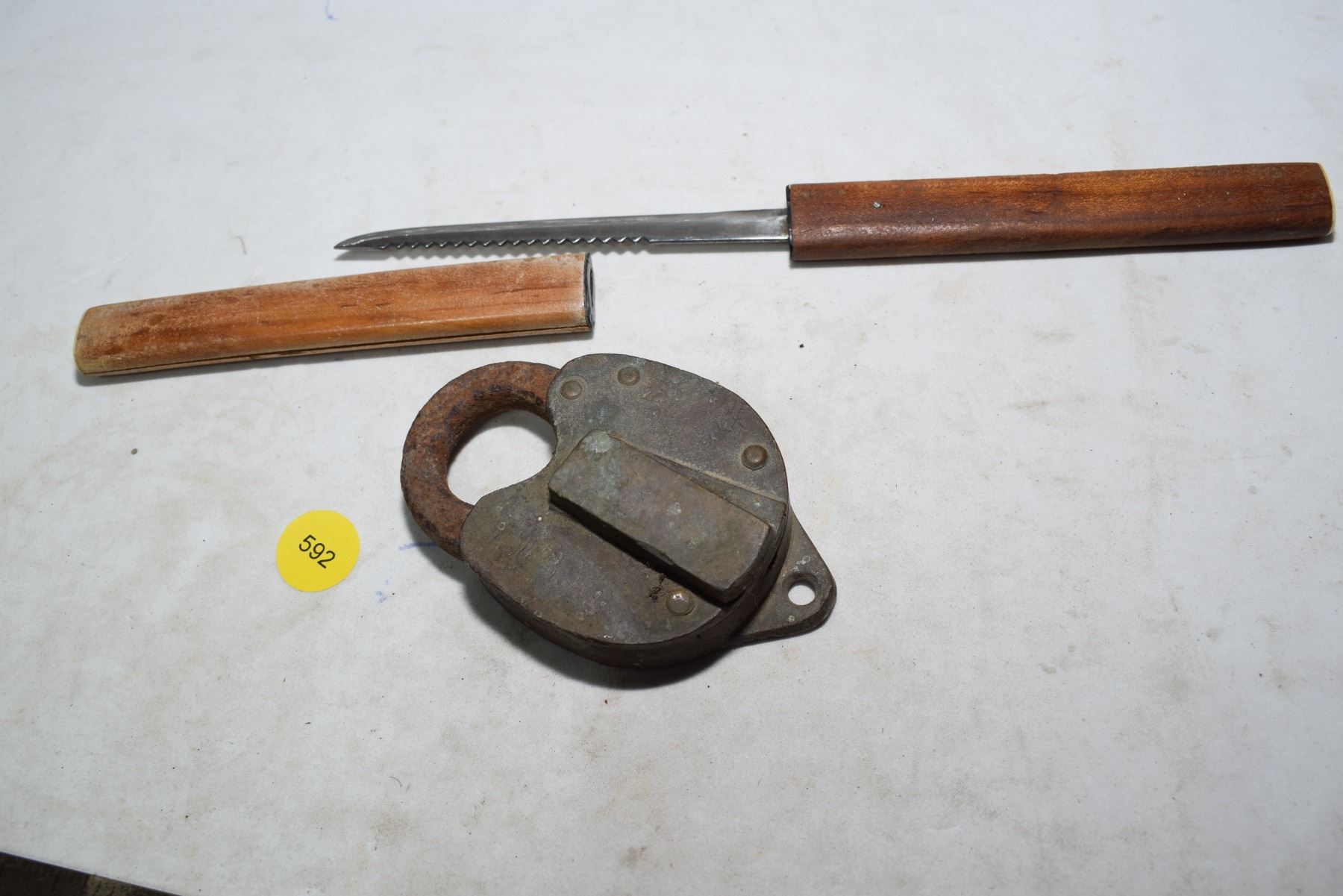 Antique brass lock & knife