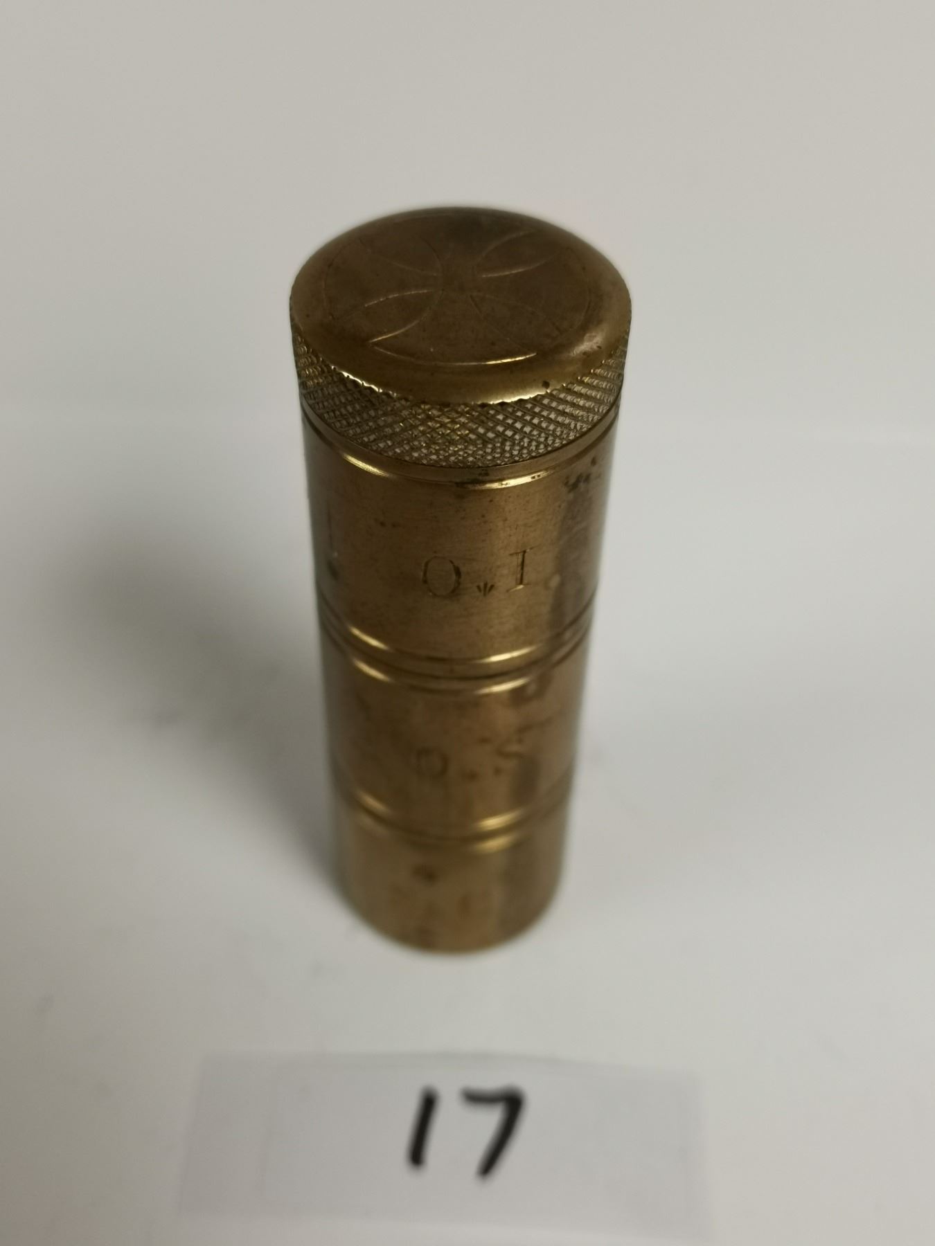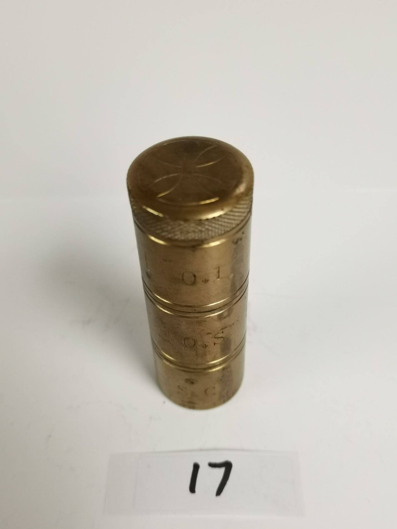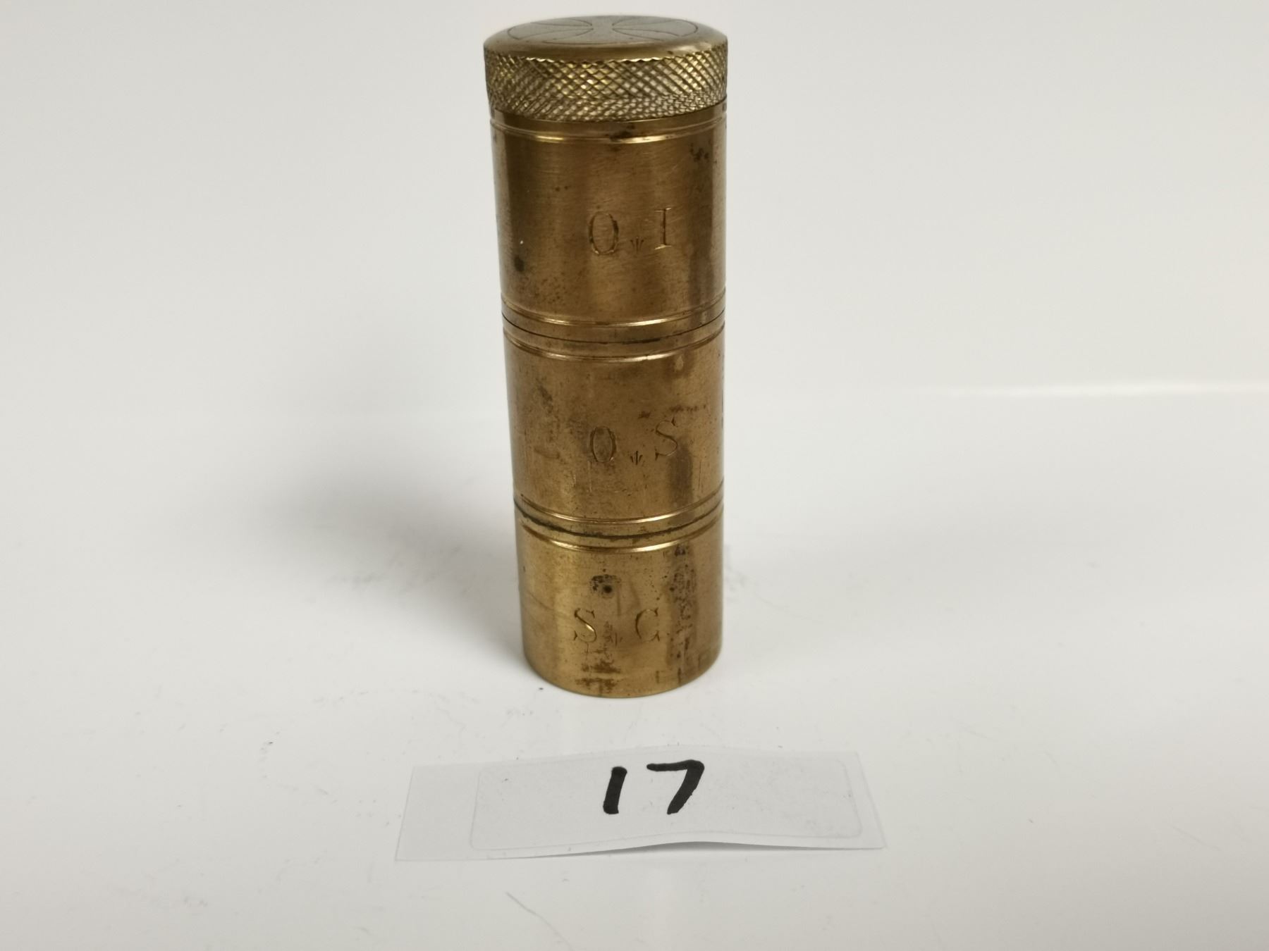 Antique brass religion triple oil stock last rights container